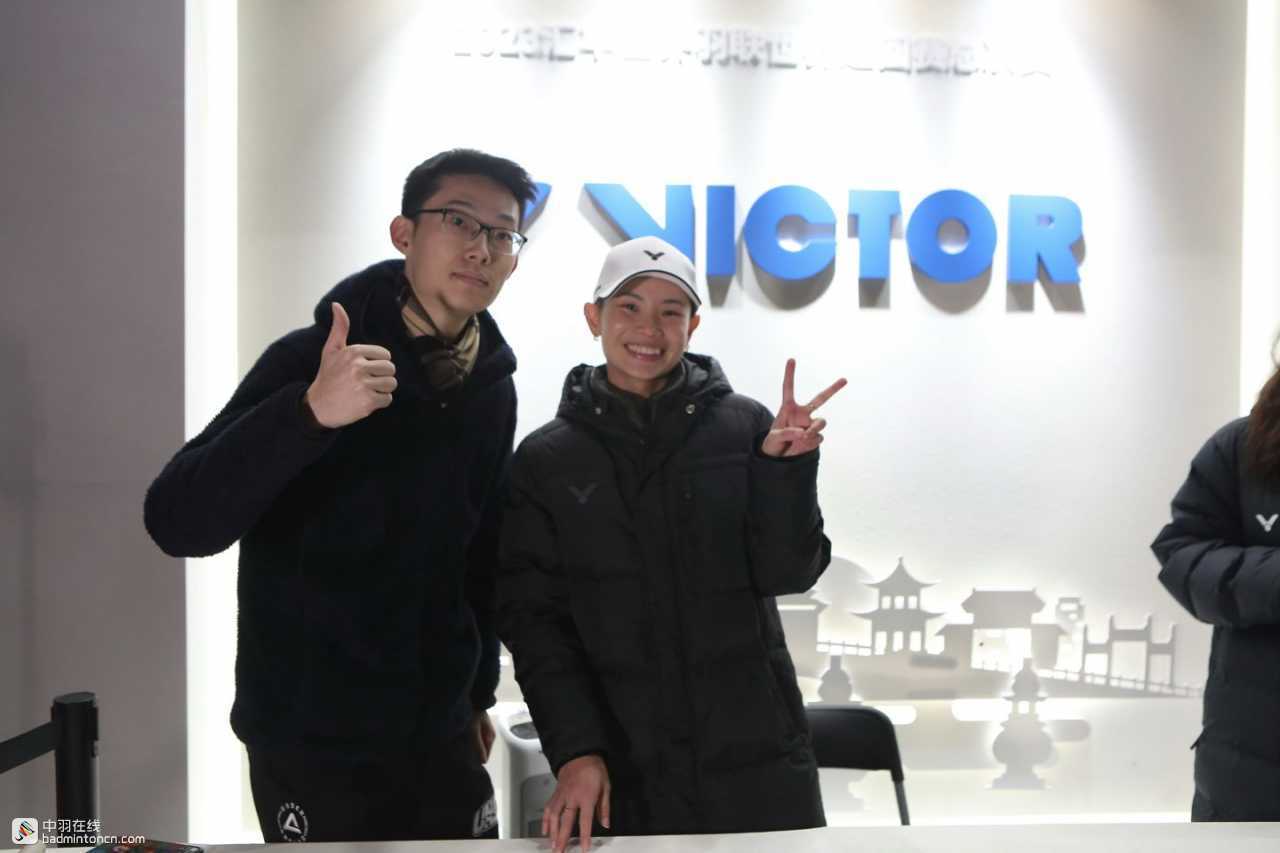 决赛结束后,稍事休息的戴资颖就出席了威克多在现场举办的球迷见面会。带着夺冠的喜悦,见到一路以来支持自己的球迷们,戴资颖非常高兴,尽管刚刚结束高强度的比赛,她的脸上却没有一丝疲惫,笑着和大家互动。