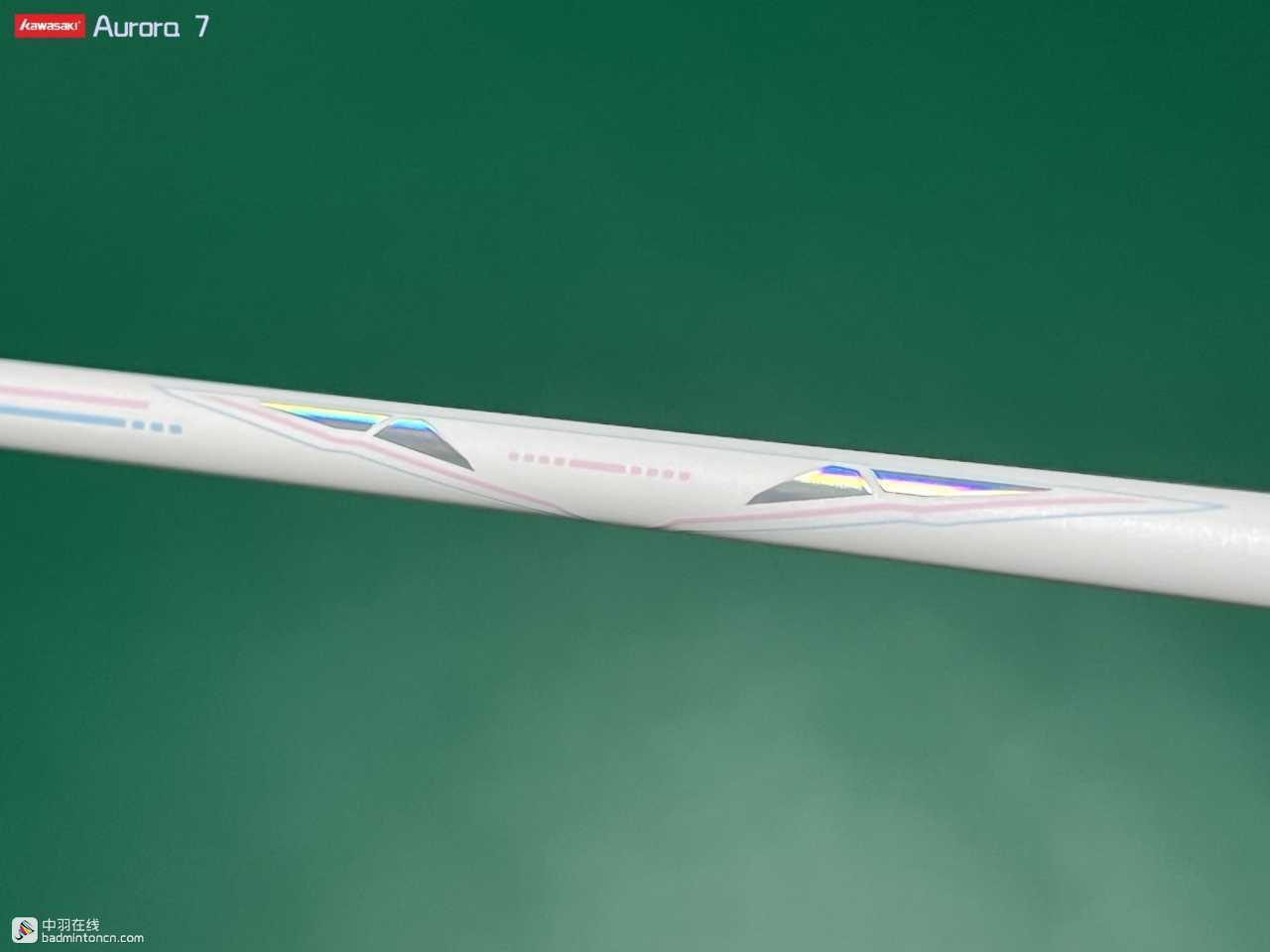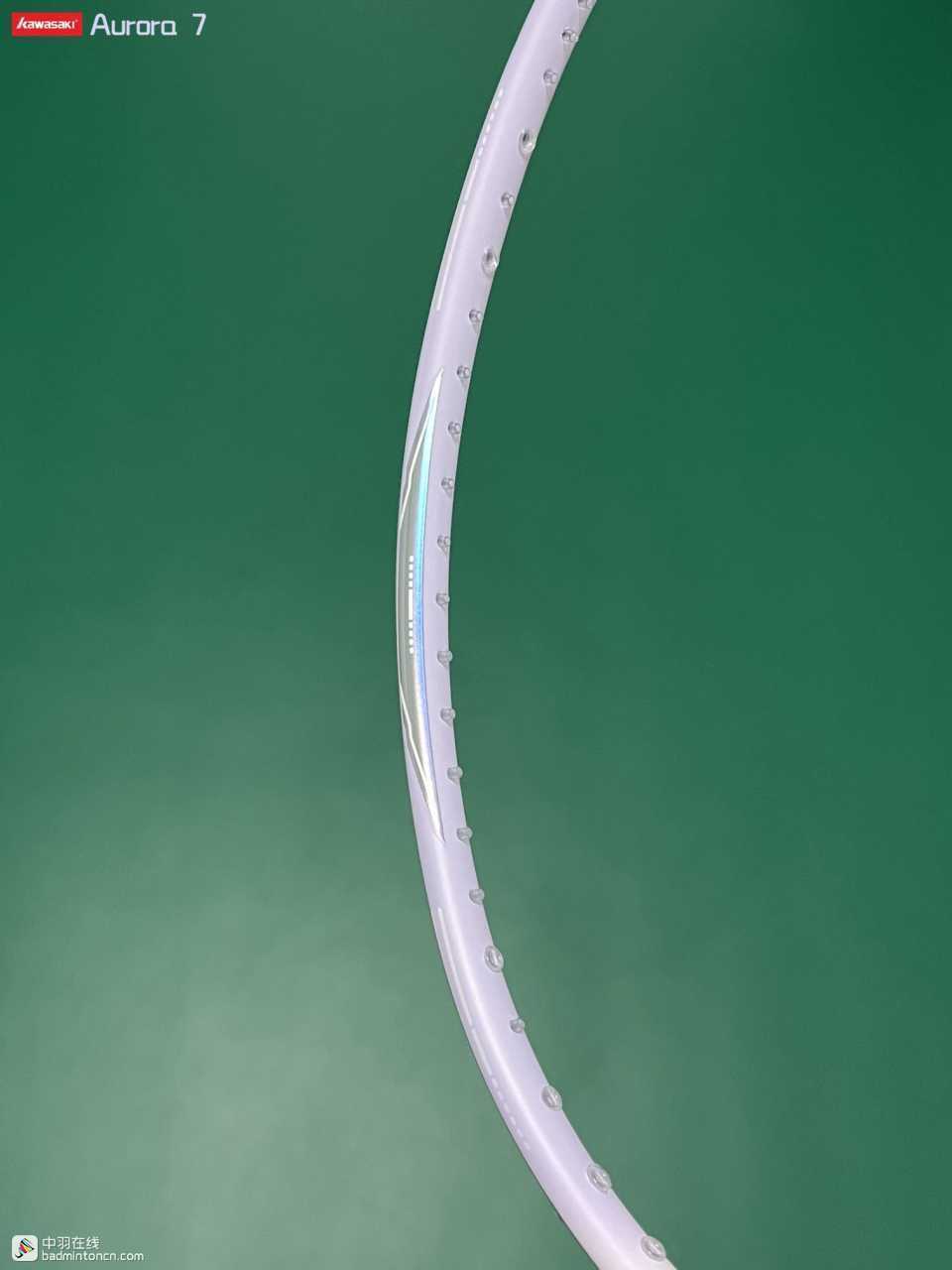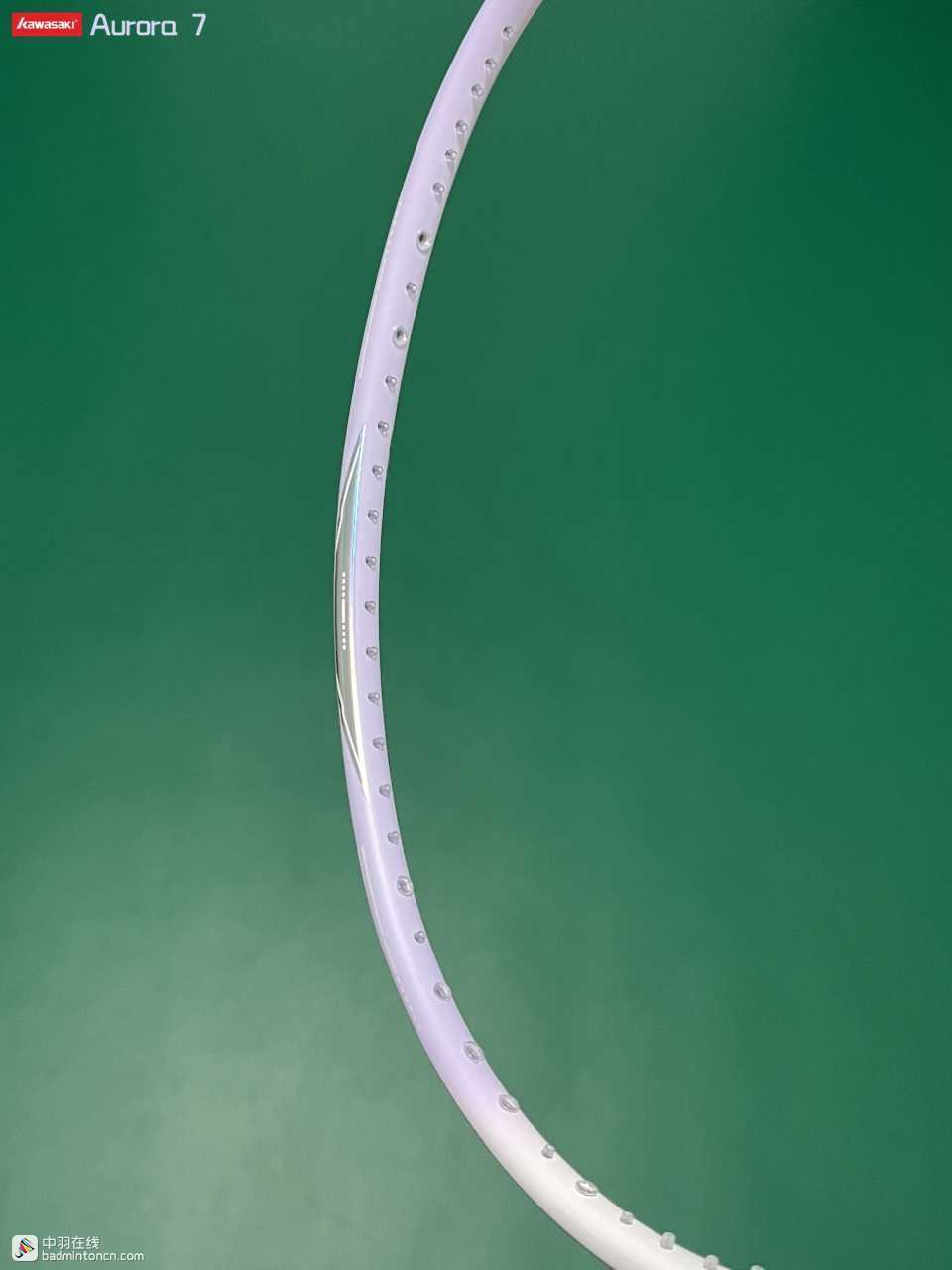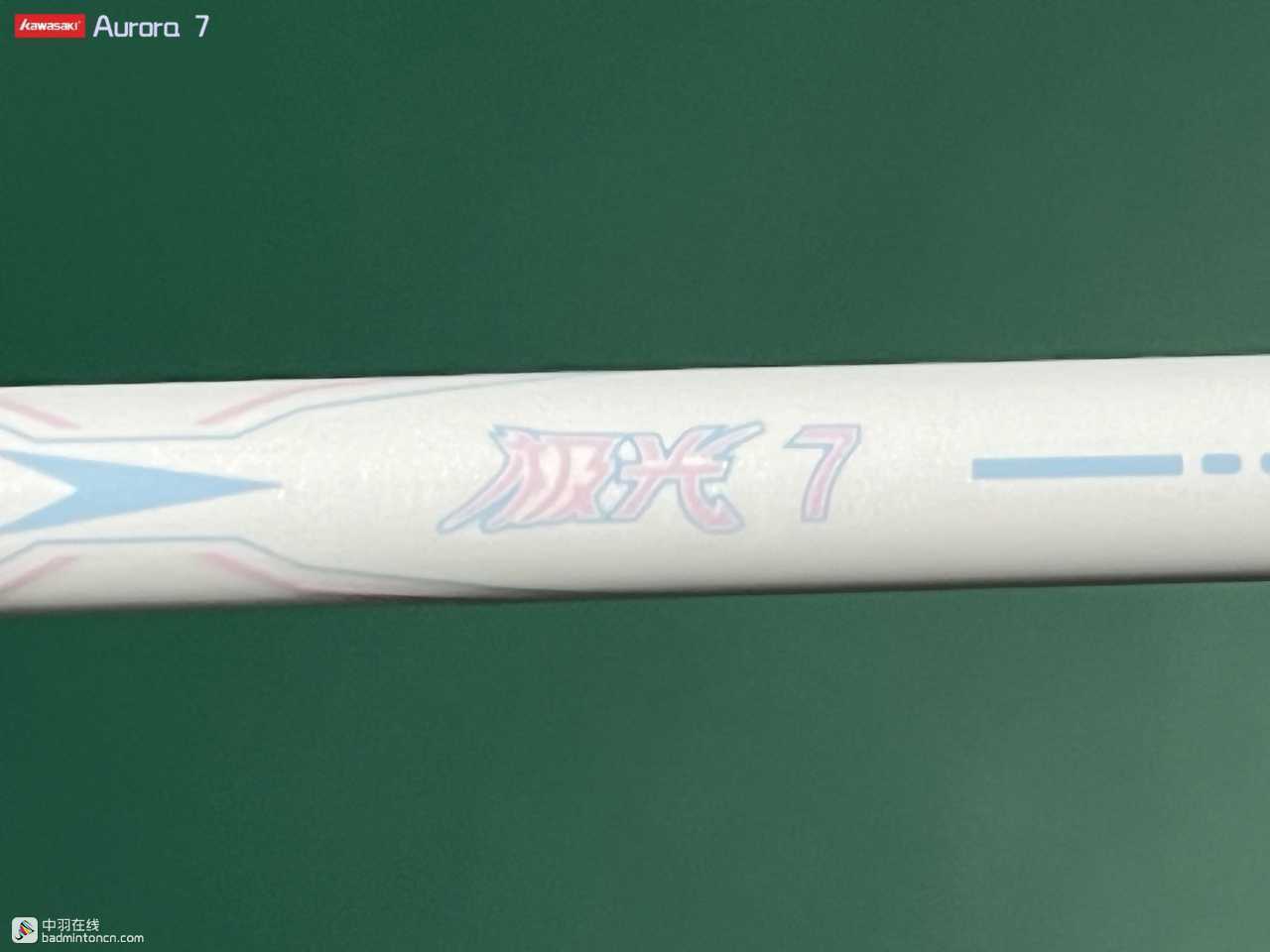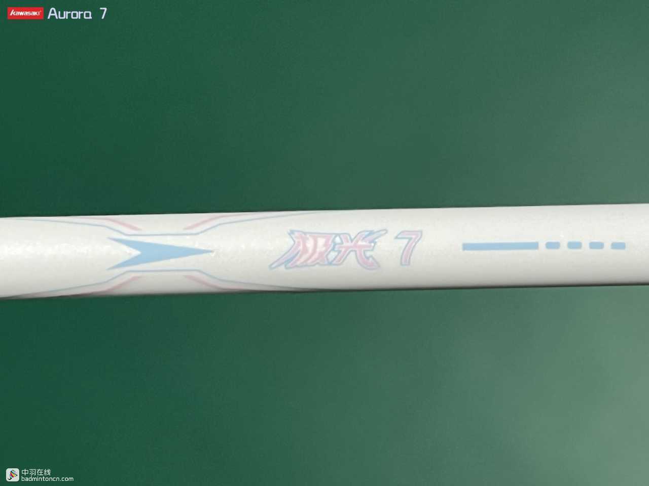 一支适合初学者的入门球拍应该是什么样的,对此,当前各大品牌都进行了探索并给出了各自的答案,近年也推出了多种多样的面向入门和初级球友的球拍。在这样的潮流中,川崎极光7(Aurora 7)也应运而生。 极光7是以5U超轻进攻拍为定位推出的,主要面向入门以及力量较小的球友,川崎官方首次以手绘的形式将球拍外观和各项参数呈现出来,非常新颖。以绚丽的自然现象“极光”命名,这款外观清新粉嫩的球拍,仅一个照面可能就会俘获不少球友的心。 那么极光7在性能与打感方面究竟有何特点,是否和这颇具吸引力的外观相称呢?本文就来一一和大家讨论。 外观初赏 川崎共为极光7设计了粉蓝、粉白、极光青和极光紫四款配色,笔者手中的这支是极光紫。以白色和淡紫色为主色调,这支极光紫配色的极光7以其淡雅清新的外观风格,在初次见面时就给人留下深刻的印象。 极光7的拍框由下部的白色逐渐向上部的淡紫色过渡,渐变的位置大约在5点和7点位置。 拍框两侧的图案采用的是非左右对称的设计,不过大体呈现着上下对称的布局,图案以银白色和粉色的线段以及极光镭射水标为主,风格低调,光照下镭射水标表面闪动着的彩色光泽是拍框上最为亮眼的点缀。 在拍框一侧,镭射水标位于中央9点位置附近,其上搭配有白色的线条予以装饰,上下两侧银白色和粉色的线段对称分布。 而另一侧的镭射水标则分布在1点和5点位置附近,其中间分别有淡蓝色的条纹修饰,而银白色和粉色的线段则位于拍框中部。 拍框顶部12点位置也有淡蓝色和粉色的线段作为点缀。拍框整体涂装非常简约,如同霞光下透着微微紫色光芒的云朵,给人一种静谧舒适的观感。 此外,极光7除了三通处两侧的4个二连钉是半透明的白色以外,其他所有的线孔处均配备了透明护线管。 极光7的中杆通体以白色为主,同样点缀以淡蓝色和粉色的线条以及极光镭射水标。 中杆正反两面图案对称,在靠近三通处均标有“Aurora 7”的型号名称,“Aurora”采用粉色,而数字“7”为淡蓝色,并非特别醒目,但很好地延续了球拍整体淡色系的设计风格。 在中杆尾部接近锥盖的位置,还有中文“极光7”字样的标识,同样是蓝粉结合,字体设计犹如在空气中浮动延展的光芒,颇具艺术感。 随极光7附赠的极光镭射拍套也是足够亮眼,就如同球拍之名“极光”一样,镭射的表面光彩熠熠,在光线的映照下,随着视角的变化,光彩变幻,给人一种绚丽而梦幻的感觉。 参数浅析 极光7仅有5U/G6一种规格。此外根据锥盖上的标注,“BALANCE”即平衡点参数标在了头偏重的一档,符合官方所给的超轻进攻拍的定位。 经过实际测量,笔者手中的这支极光7在空拍带底胶的状态下重约74.86g,平衡点约为305mm。 空拍去底胶后重约68.31g,平衡点达到了约327mm。 上线(李宁L67线,26磅),上手胶(缓震膜+李宁GP1000手胶)后,总重量约80.13g,平衡点约312mm。 极光7球拍总长实测约674mm,其中,拍框长度约254mm,中杆(锥盖顶部至T头两侧最下方线孔处)长度约215mm,手柄(底盖至锥盖顶部)则约为205mm,属于典型的大拍框设计,中杆和手柄均为标准长度。 极光7的拍框采用76孔穿线模式,拍框和甜区面积很大,充分提升击球的容错率。在框型方面,极光7采用流线型拍框,除T头附近位置以外,全拍均为偏圆润的流体盒式框,兼顾稳定性与挥速,并引入30T碳纱加强,运用真空气压成型。 经过实测,极光7的拍框底部(靠近T头处)宽度约为10.37mm,厚度约为7.64mm。 拍框两侧(3点、9点钟方向)宽度则约为10.26mm,厚度约为6.62mm。 拍框顶部宽度约为10.00mm,厚度约为6.28mm。 极光7的拍框外侧采用半线槽设计,线槽位于3点、9点位置以上。 极光7的中杆同样采用30T碳素纤维,实测外径约为7.27mm(测量点位于中杆中点处)。 根据锥盖上的标注,极光7的中杆硬度偏软,而在官方的介绍中则给出了更具体数值,软硬度为8.8,处于较软的水平,易于驱动。 总的来说,极光7主打超轻的重量,结合拍头重、中杆柔韧的特点,打造出迎合初学者的较低上手门槛。中杆上“HEAD HEAVY BALANCE FLEXIBLE SHAFT(头重柔韧中杆)”和“SUPER LIGHT WEIGHT(超轻重量)”的标识就展现了这一设计思路与定位。 极光7的建议穿线磅数为18至30磅。 打感体验 怎样的球拍适合初学者呢?首先,它一定是易于上手的。初学羽毛球时,我们一般会从动作的框架入手,再不断在发力方面寻求进阶。初学者对于爆发力的概念尚没有非常清晰和深入的认识,更重要的是在不同的位置都能够将球回到位。以后场球为例,初学者最初接触的技术都是高远球,入门阶段的球友发力水平有限,要想把高远球打到位,除了掌握正确的击球动作以外,球拍的借力也是一个不可忽视的因素。拍头有一定分量,有利于上手挥拍时借助惯性产生更大的力量,此外偏软的中杆让球拍更容易发生形变,形成鞭甩的效果,把力量送出去,有了这两点,就有助于让初学者比较容易地打出到位的高远球。而极光7正是满足这两个特点,同时自身重量比较轻,适合作为初学者不错的入门伙伴。 此外,极光7较大的拍面和甜区设计,也很好地保证了击球的容错率,流体盒式框型既保证了击球的稳定性,挥速也不慢,从各方面来说,极光7都拥有适合初学球友使用的特质,有着很低的上手门槛。
