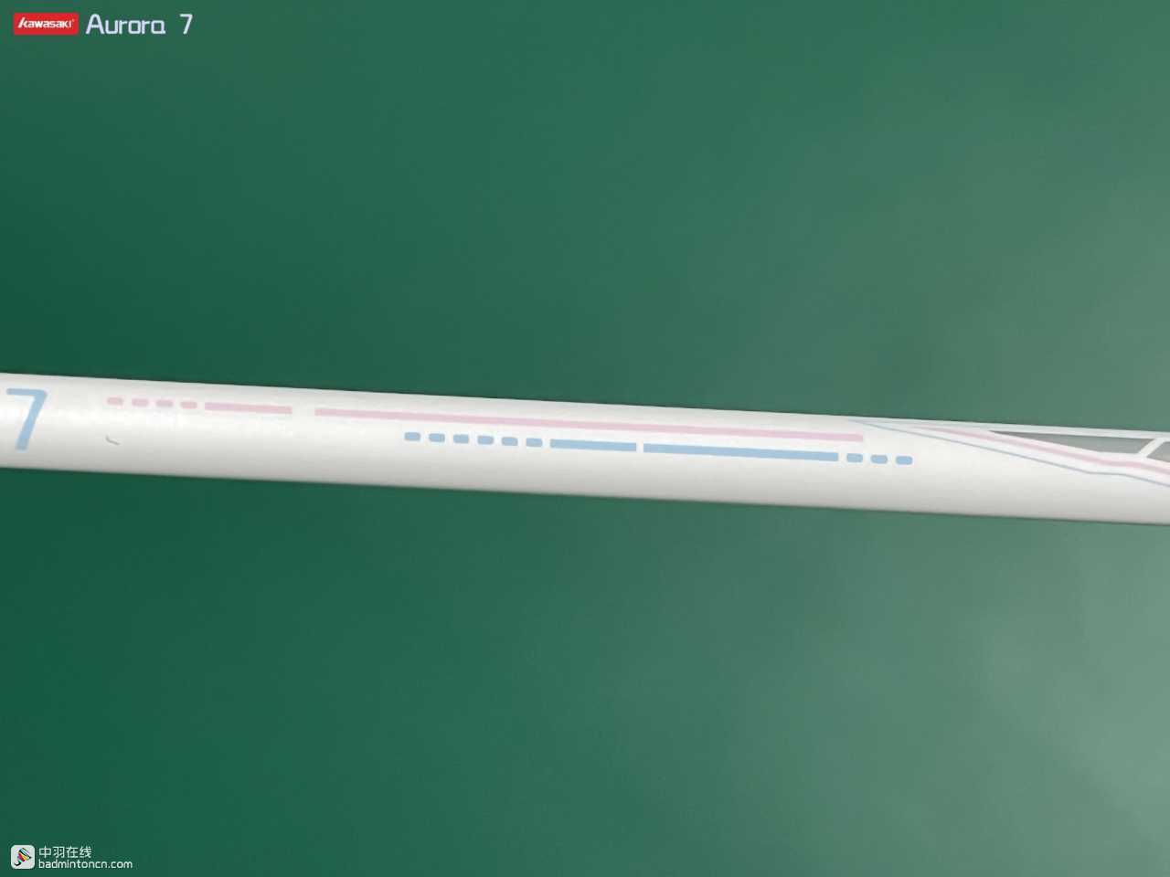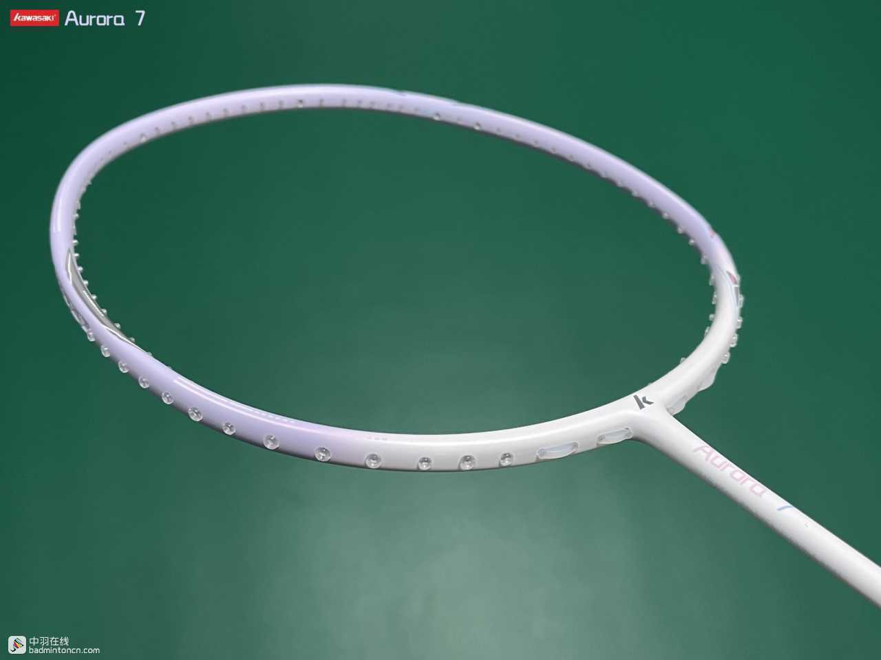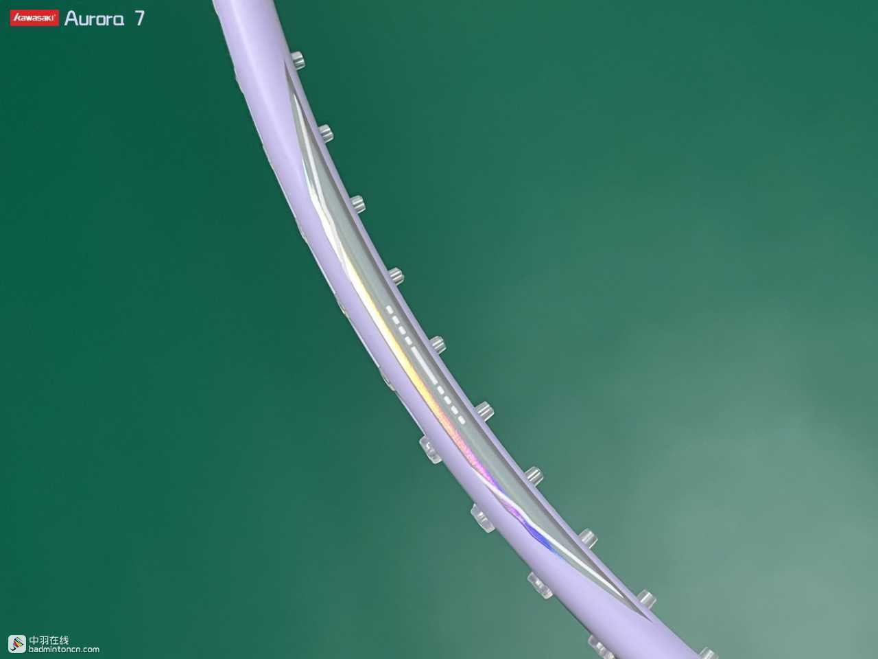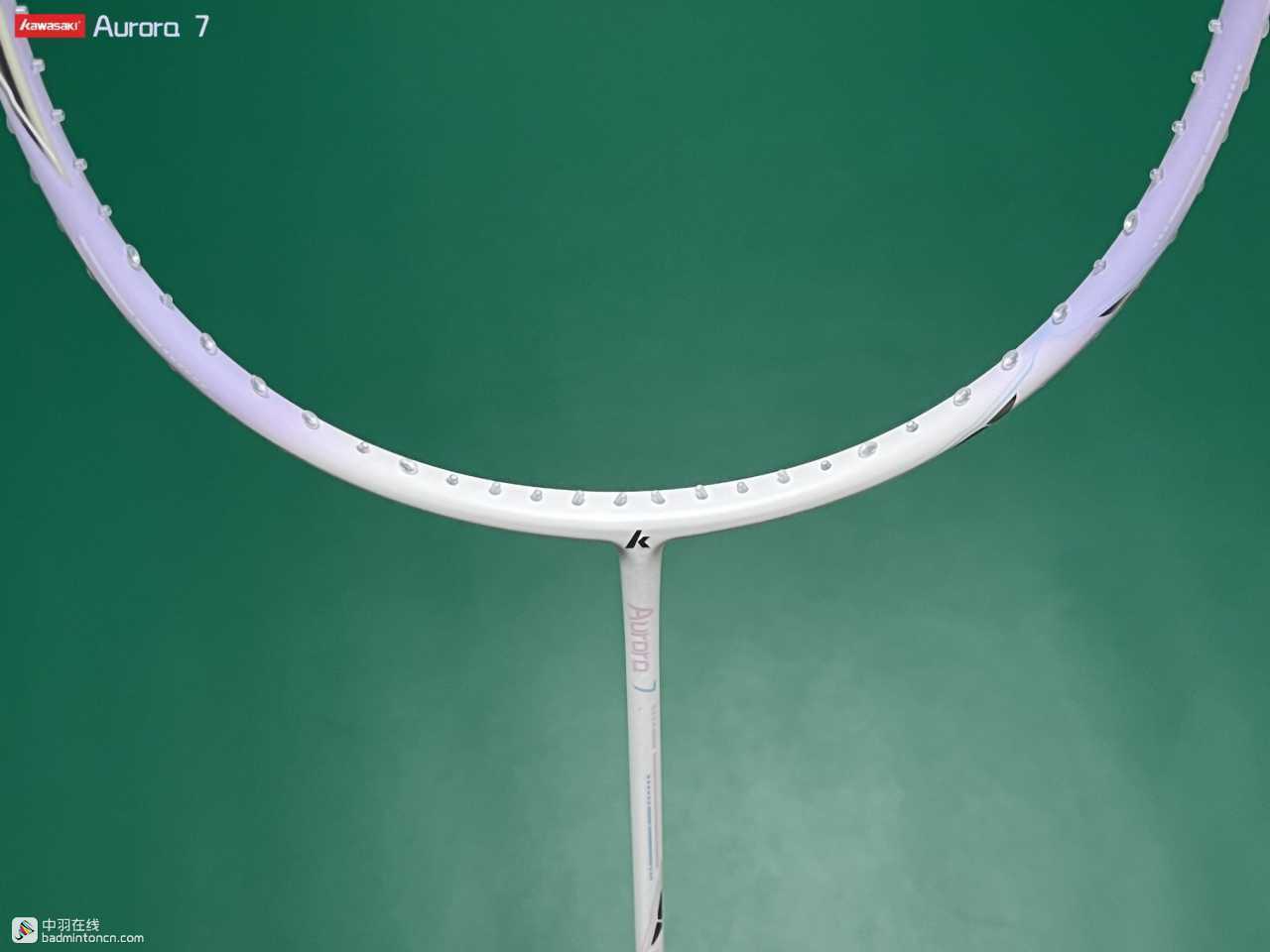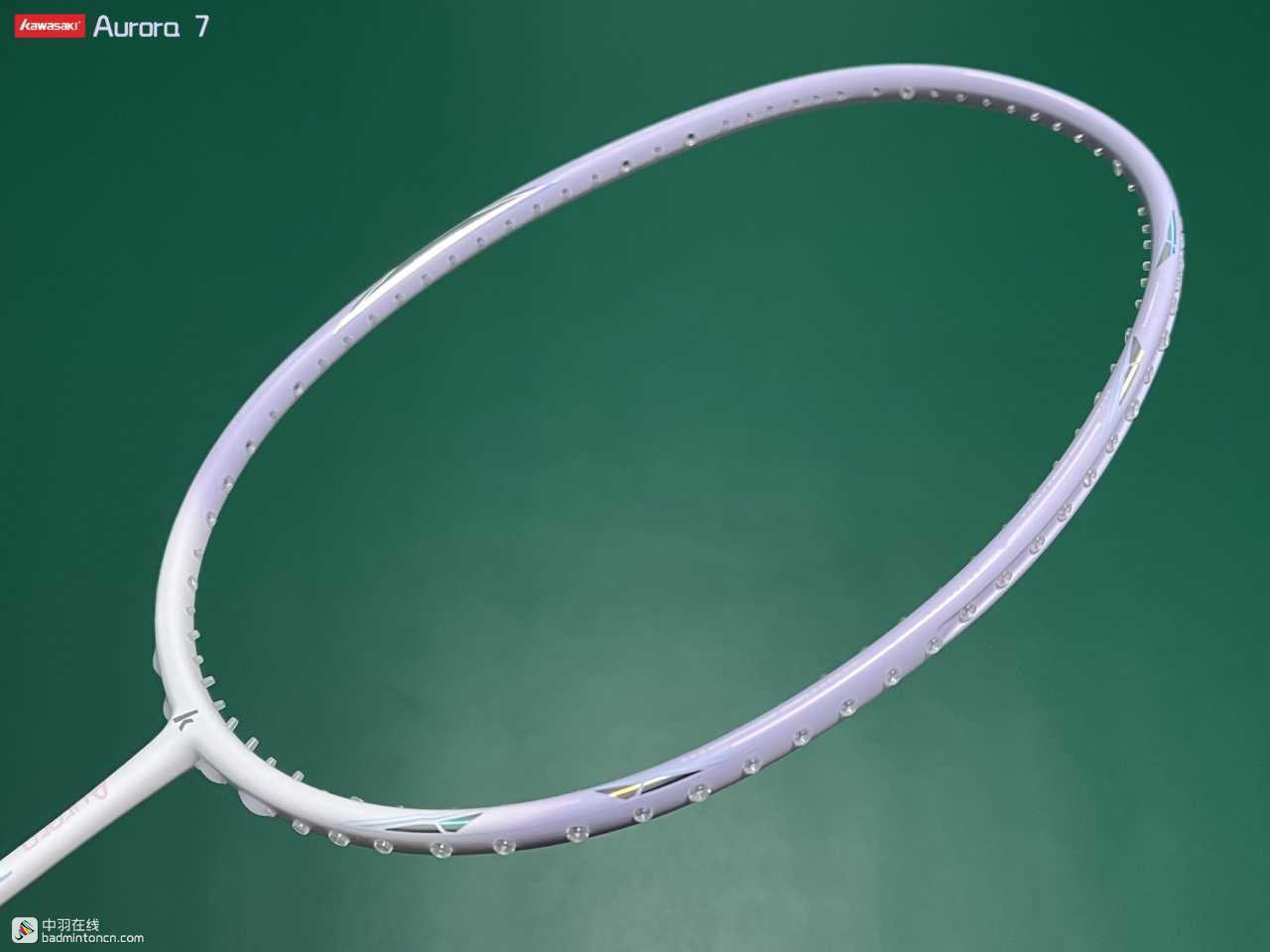 一支适合初学者的入门球拍应该是什么样的,对此,当前各大品牌都进行了探索并给出了各自的答案,近年也推出了多种多样的面向入门和初级球友的球拍。在这样的潮流中,川崎极光7(Aurora 7)也应运而生。 极光7是以5U超轻进攻拍为定位推出的,主要面向入门以及力量较小的球友,川崎官方首次以手绘的形式将球拍外观和各项参数呈现出来,非常新颖。以绚丽的自然现象“极光”命名,这款外观清新粉嫩的球拍,仅一个照面可能就会俘获不少球友的心。 那么极光7在性能与打感方面究竟有何特点,是否和这颇具吸引力的外观相称呢?本文就来一一和大家讨论。 外观初赏 川崎共为极光7设计了粉蓝、粉白、极光青和极光紫四款配色,笔者手中的这支是极光紫。以白色和淡紫色为主色调,这支极光紫配色的极光7以其淡雅清新的外观风格,在初次见面时就给人留下深刻的印象。 极光7的拍框由下部的白色逐渐向上部的淡紫色过渡,渐变的位置大约在5点和7点位置。 拍框两侧的图案采用的是非左右对称的设计,不过大体呈现着上下对称的布局,图案以银白色和粉色的线段以及极光镭射水标为主,风格低调,光照下镭射水标表面闪动着的彩色光泽是拍框上最为亮眼的点缀。 在拍框一侧,镭射水标位于中央9点位置附近,其上搭配有白色的线条予以装饰,上下两侧银白色和粉色的线段对称分布。 而另一侧的镭射水标则分布在1点和5点位置附近,其中间分别有淡蓝色的条纹修饰,而银白色和粉色的线段则位于拍框中部。 拍框顶部12点位置也有淡蓝色和粉色的线段作为点缀。拍框整体涂装非常简约,如同霞光下透着微微紫色光芒的云朵,给人一种静谧舒适的观感。 此外,极光7除了三通处两侧的4个二连钉是半透明的白色以外,其他所有的线孔处均配备了透明护线管。 极光7的中杆通体以白色为主,同样点缀以淡蓝色和粉色的线条以及极光镭射水标。 中杆正反两面图案对称,在靠近三通处均标有“Aurora 7”的型号名称,“Aurora”采用粉色,而数字“7”为淡蓝色,并非特别醒目,但很好地延续了球拍整体淡色系的设计风格。 在中杆尾部接近锥盖的位置,还有中文“极光7”字样的标识,同样是蓝粉结合,字体设计犹如在空气中浮动延展的光芒,颇具艺术感。 随极光7附赠的极光镭射拍套也是足够亮眼,就如同球拍之名“极光”一样,镭射的表面光彩熠熠,在光线的映照下,随着视角的变化,光彩变幻,给人一种绚丽而梦幻的感觉。 参数浅析 极光7仅有5U/G6一种规格。此外根据锥盖上的标注,“BALANCE”即平衡点参数标在了头偏重的一档,符合官方所给的超轻进攻拍的定位。 经过实际测量,笔者手中的这支极光7在空拍带底胶的状态下重约74.86g,平衡点约为305mm。 空拍去底胶后重约68.31g,平衡点达到了约327mm。 上线(李宁L67线,26磅),上手胶(缓震膜+李宁GP1000手胶)后,总重量约80.13g,平衡点约312mm。 极光7球拍总长实测约674mm,其中,拍框长度约254mm,中杆(锥盖顶部至T头两侧最下方线孔处)长度约215mm,手柄(底盖至锥盖顶部)则约为205mm,属于典型的大拍框设计,中杆和手柄均为标准长度。 极光7的拍框采用76孔穿线模式,拍框和甜区面积很大,充分提升击球的容错率。在框型方面,极光7采用流线型拍框,除T头附近位置以外,全拍均为偏圆润的流体盒式框,兼顾稳定性与挥速,并引入30T碳纱加强,运用真空气压成型。 经过实测,极光7的拍框底部(靠近T头处)宽度约为10.37mm,厚度约为7.64mm。 拍框两侧(3点、9点钟方向)宽度则约为10.26mm,厚度约为6.62mm。 拍框顶部宽度约为10.00mm,厚度约为6.28mm。 极光7的拍框外侧采用半线槽设计,线槽位于3点、9点位置以上。 极光7的中杆同样采用30T碳素纤维,实测外径约为7.27mm(测量点位于中杆中点处)。 根据锥盖上的标注,极光7的中杆硬度偏软,而在官方的介绍中则给出了更具体数值,软硬度为8.8,处于较软的水平,易于驱动。 总的来说,极光7主打超轻的重量,结合拍头重、中杆柔韧的特点,打造出迎合初学者的较低上手门槛。中杆上“HEAD HEAVY BALANCE FLEXIBLE SHAFT(头重柔韧中杆)”和“SUPER LIGHT WEIGHT(超轻重量)”的标识就展现了这一设计思路与定位。 极光7的建议穿线磅数为18至30磅。 打感体验 怎样的球拍适合初学者呢?首先,它一定是易于上手的。初学羽毛球时,我们一般会从动作的框架入手,再不断在发力方面寻求进阶。初学者对于爆发力的概念尚没有非常清晰和深入的认识,更重要的是在不同的位置都能够将球回到位。以后场球为例,初学者最初接触的技术都是高远球,入门阶段的球友发力水平有限,要想把高远球打到位,除了掌握正确的击球动作以外,球拍的借力也是一个不可忽视的因素。拍头有一定分量,有利于上手挥拍时借助惯性产生更大的力量,此外偏软的中杆让球拍更容易发生形变,形成鞭甩的效果,把力量送出去,有了这两点,就有助于让初学者比较容易地打出到位的高远球。而极光7正是满足这两个特点,同时自身重量比较轻,适合作为初学者不错的入门伙伴。 此外,极光7较大的拍面和甜区设计,也很好地保证了击球的容错率,流体盒式框型既保证了击球的稳定性,挥速也不慢,从各方面来说,极光7都拥有适合初学球友使用的特质,有着很低的上手门槛。