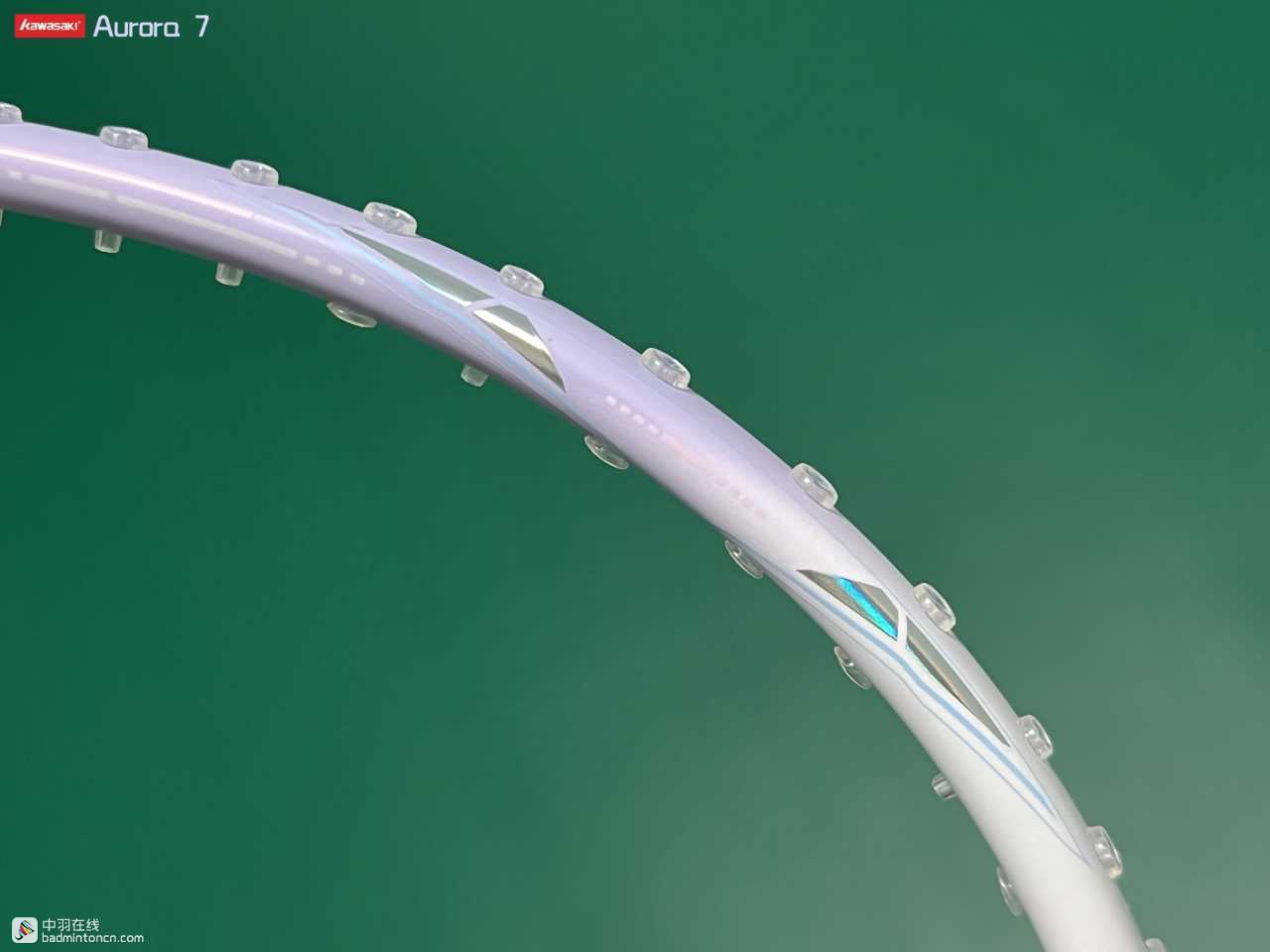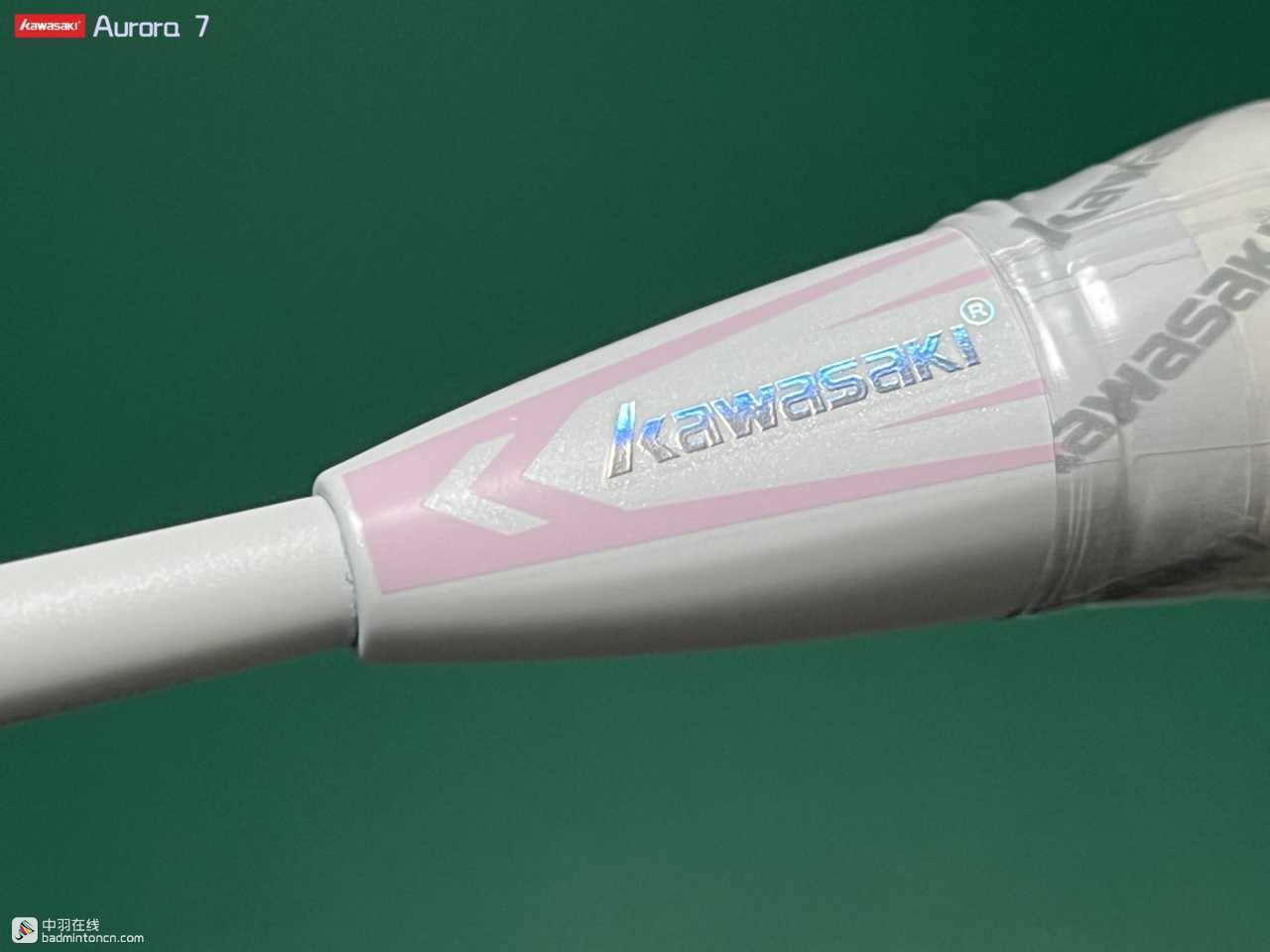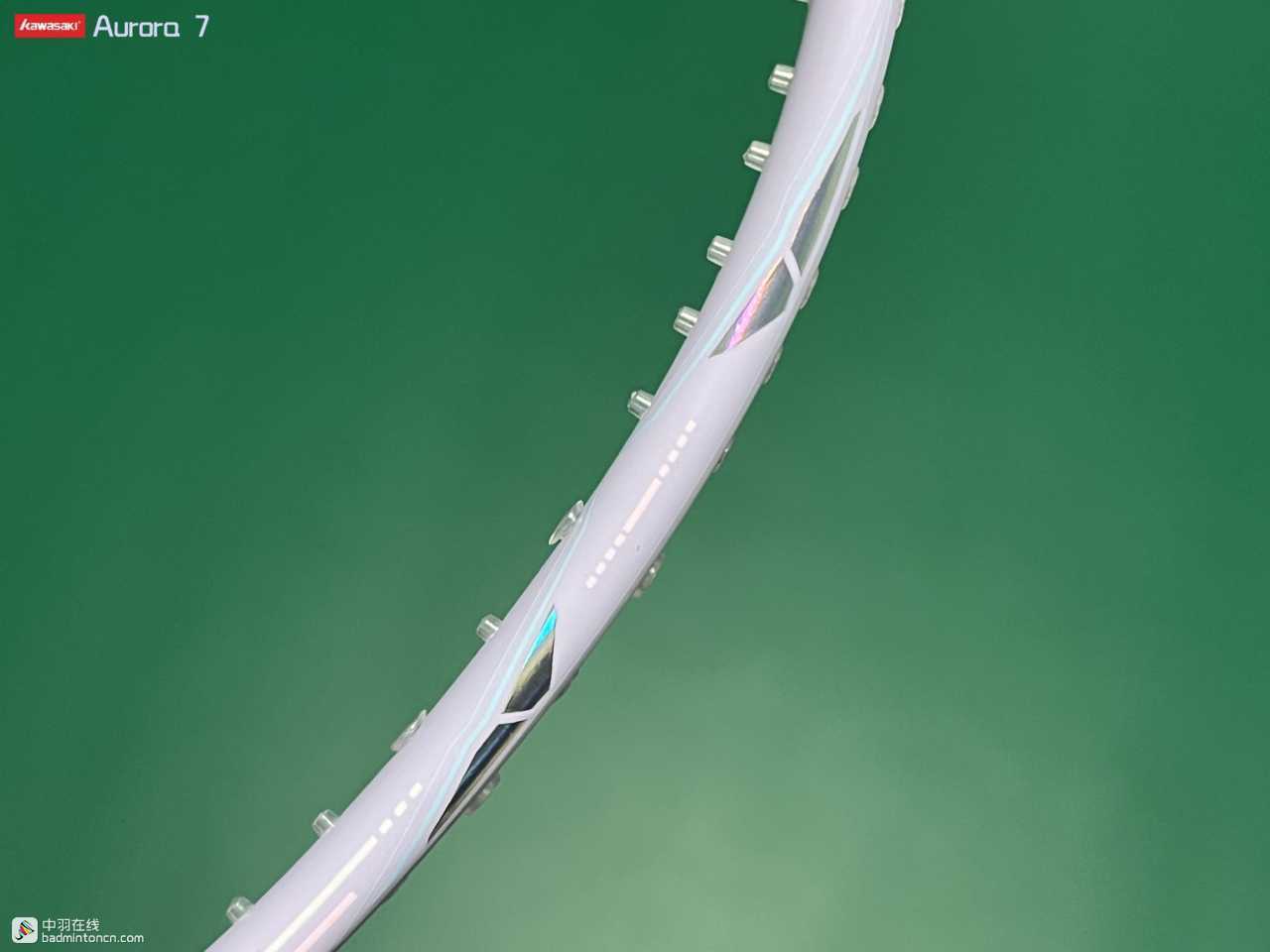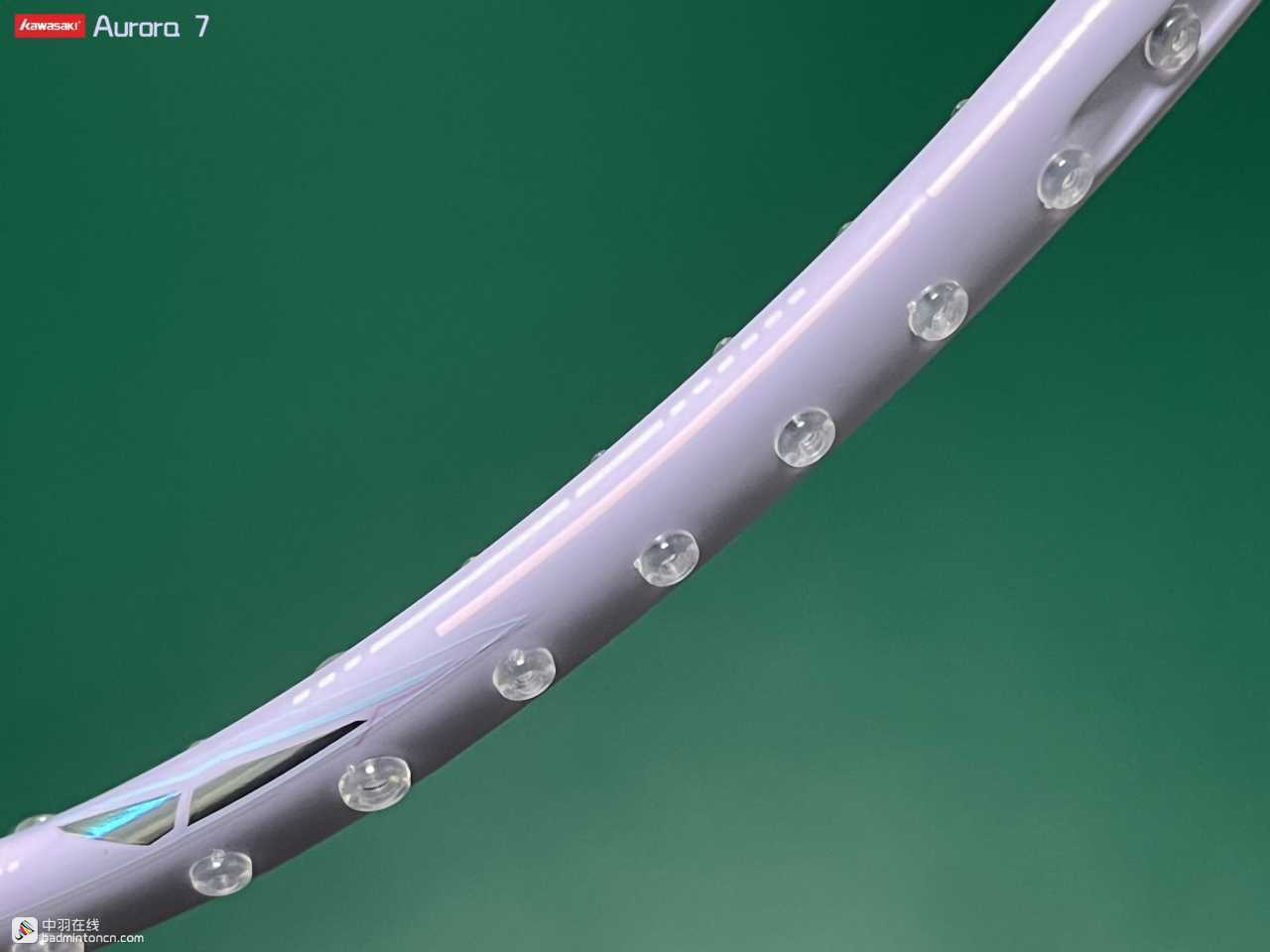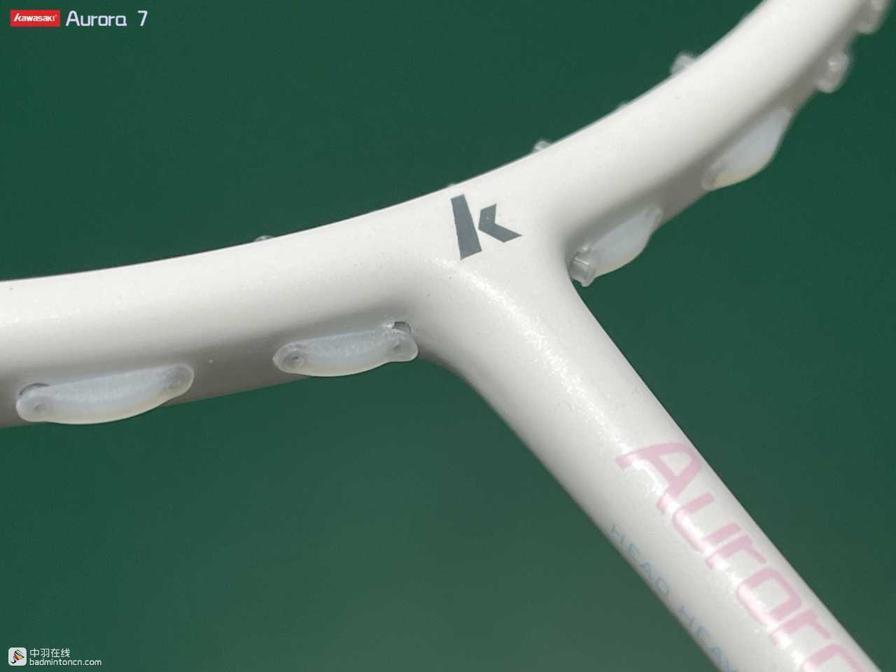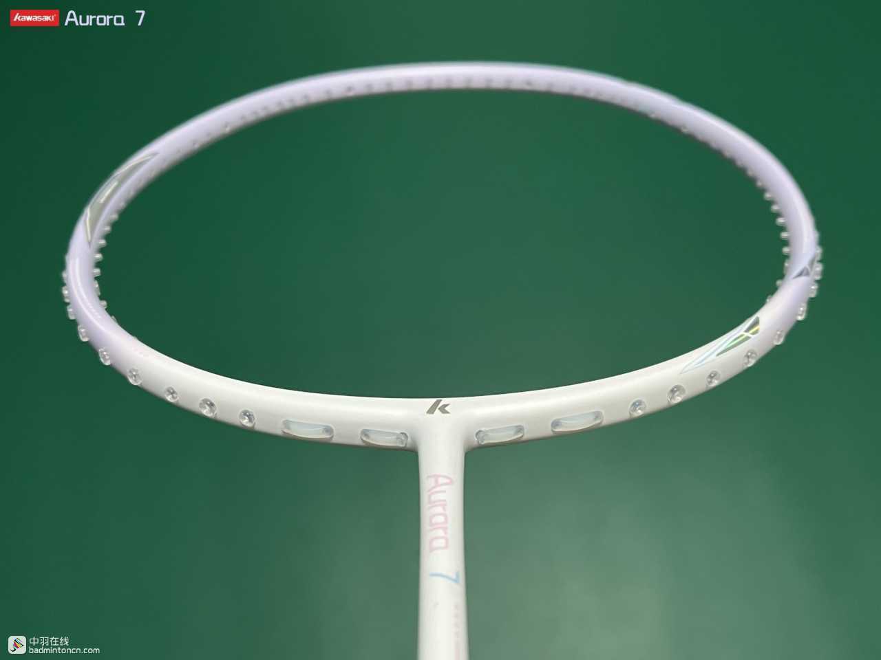 一支适合初学者的入门球拍应该是什么样的,对此,当前各大品牌都进行了探索并给出了各自的答案,近年也推出了多种多样的面向入门和初级球友的球拍。在这样的潮流中,川崎极光7(Aurora 7)也应运而生。 极光7是以5U超轻进攻拍为定位推出的,主要面向入门以及力量较小的球友,川崎官方首次以手绘的形式将球拍外观和各项参数呈现出来,非常新颖。以绚丽的自然现象“极光”命名,这款外观清新粉嫩的球拍,仅一个照面可能就会俘获不少球友的心。 那么极光7在性能与打感方面究竟有何特点,是否和这颇具吸引力的外观相称呢?本文就来一一和大家讨论。 外观初赏 川崎共为极光7设计了粉蓝、粉白、极光青和极光紫四款配色,笔者手中的这支是极光紫。以白色和淡紫色为主色调,这支极光紫配色的极光7以其淡雅清新的外观风格,在初次见面时就给人留下深刻的印象。 极光7的拍框由下部的白色逐渐向上部的淡紫色过渡,渐变的位置大约在5点和7点位置。 拍框两侧的图案采用的是非左右对称的设计,不过大体呈现着上下对称的布局,图案以银白色和粉色的线段以及极光镭射水标为主,风格低调,光照下镭射水标表面闪动着的彩色光泽是拍框上最为亮眼的点缀。 在拍框一侧,镭射水标位于中央9点位置附近,其上搭配有白色的线条予以装饰,上下两侧银白色和粉色的线段对称分布。 而另一侧的镭射水标则分布在1点和5点位置附近,其中间分别有淡蓝色的条纹修饰,而银白色和粉色的线段则位于拍框中部。 拍框顶部12点位置也有淡蓝色和粉色的线段作为点缀。拍框整体涂装非常简约,如同霞光下透着微微紫色光芒的云朵,给人一种静谧舒适的观感。 此外,极光7除了三通处两侧的4个二连钉是半透明的白色以外,其他所有的线孔处均配备了透明护线管。 极光7的中杆通体以白色为主,同样点缀以淡蓝色和粉色的线条以及极光镭射水标。 中杆正反两面图案对称,在靠近三通处均标有“Aurora 7”的型号名称,“Aurora”采用粉色,而数字“7”为淡蓝色,并非特别醒目,但很好地延续了球拍整体淡色系的设计风格。 在中杆尾部接近锥盖的位置,还有中文“极光7”字样的标识,同样是蓝粉结合,字体设计犹如在空气中浮动延展的光芒,颇具艺术感。 随极光7附赠的极光镭射拍套也是足够亮眼,就如同球拍之名“极光”一样,镭射的表面光彩熠熠,在光线的映照下,随着视角的变化,光彩变幻,给人一种绚丽而梦幻的感觉。 参数浅析 极光7仅有5U/G6一种规格。此外根据锥盖上的标注,“BALANCE”即平衡点参数标在了头偏重的一档,符合官方所给的超轻进攻拍的定位。 经过实际测量,笔者手中的这支极光7在空拍带底胶的状态下重约74.86g,平衡点约为305mm。 空拍去底胶后重约68.31g,平衡点达到了约327mm。 上线(李宁L67线,26磅),上手胶(缓震膜+李宁GP1000手胶)后,总重量约80.13g,平衡点约312mm。 极光7球拍总长实测约674mm,其中,拍框长度约254mm,中杆(锥盖顶部至T头两侧最下方线孔处)长度约215mm,手柄(底盖至锥盖顶部)则约为205mm,属于典型的大拍框设计,中杆和手柄均为标准长度。 极光7的拍框采用76孔穿线模式,拍框和甜区面积很大,充分提升击球的容错率。在框型方面,极光7采用流线型拍框,除T头附近位置以外,全拍均为偏圆润的流体盒式框,兼顾稳定性与挥速,并引入30T碳纱加强,运用真空气压成型。 经过实测,极光7的拍框底部(靠近T头处)宽度约为10.37mm,厚度约为7.64mm。 拍框两侧(3点、9点钟方向)宽度则约为10.26mm,厚度约为6.62mm。 拍框顶部宽度约为10.00mm,厚度约为6.28mm。 极光7的拍框外侧采用半线槽设计,线槽位于3点、9点位置以上。 极光7的中杆同样采用30T碳素纤维,实测外径约为7.27mm(测量点位于中杆中点处)。 根据锥盖上的标注,极光7的中杆硬度偏软,而在官方的介绍中则给出了更具体数值,软硬度为8.8,处于较软的水平,易于驱动。 总的来说,极光7主打超轻的重量,结合拍头重、中杆柔韧的特点,打造出迎合初学者的较低上手门槛。中杆上“HEAD HEAVY BALANCE FLEXIBLE SHAFT(头重柔韧中杆)”和“SUPER LIGHT WEIGHT(超轻重量)”的标识就展现了这一设计思路与定位。 极光7的建议穿线磅数为18至30磅。 打感体验 怎样的球拍适合初学者呢?首先,它一定是易于上手的。初学羽毛球时,我们一般会从动作的框架入手,再不断在发力方面寻求进阶。初学者对于爆发力的概念尚没有非常清晰和深入的认识,更重要的是在不同的位置都能够将球回到位。以后场球为例,初学者最初接触的技术都是高远球,入门阶段的球友发力水平有限,要想把高远球打到位,除了掌握正确的击球动作以外,球拍的借力也是一个不可忽视的因素。拍头有一定分量,有利于上手挥拍时借助惯性产生更大的力量,此外偏软的中杆让球拍更容易发生形变,形成鞭甩的效果,把力量送出去,有了这两点,就有助于让初学者比较容易地打出到位的高远球。而极光7正是满足这两个特点,同时自身重量比较轻,适合作为初学者不错的入门伙伴。 此外,极光7较大的拍面和甜区设计,也很好地保证了击球的容错率,流体盒式框型既保证了击球的稳定性,挥速也不慢,从各方面来说,极光7都拥有适合初学球友使用的特质,有着很低的上手门槛。