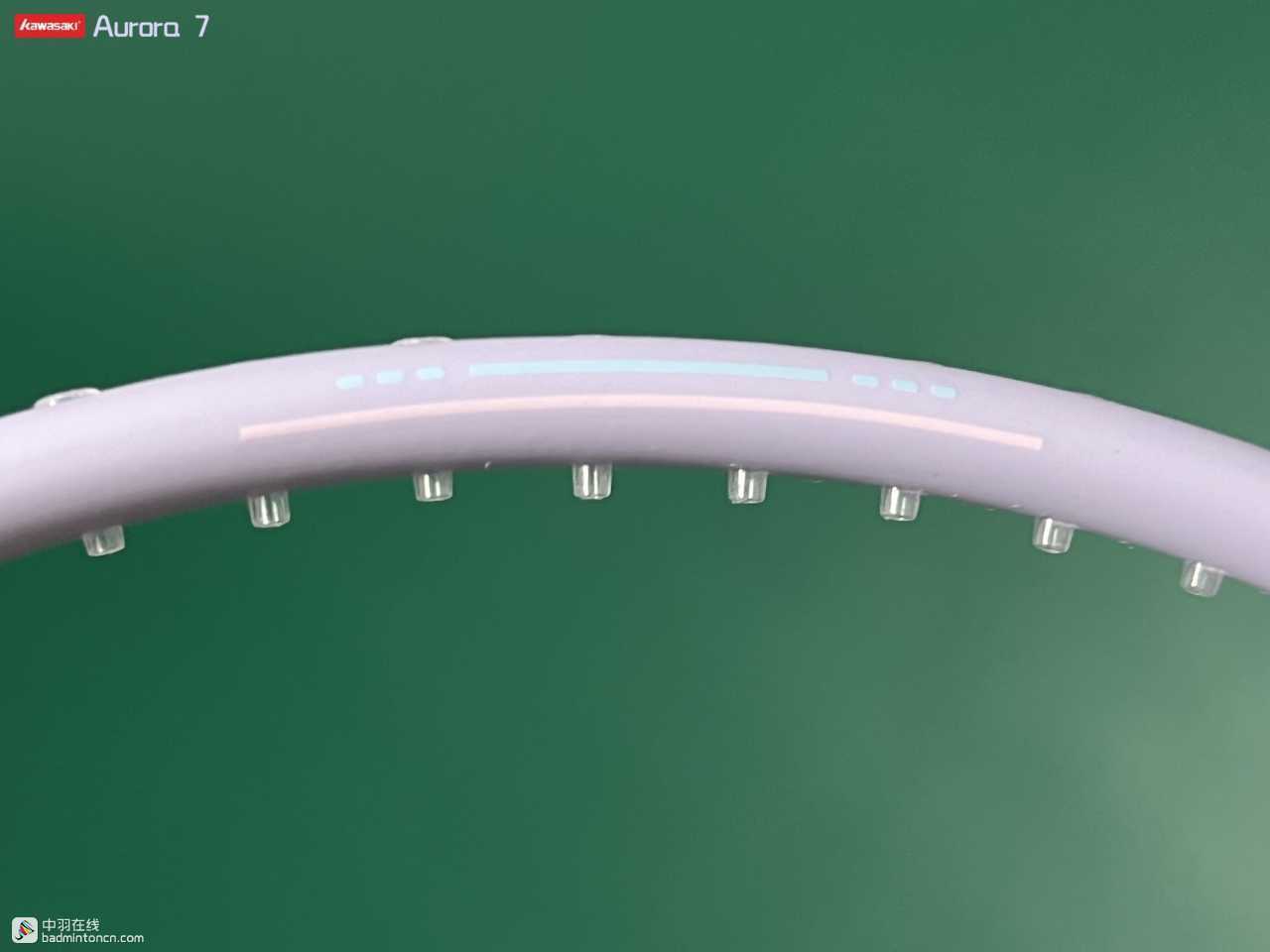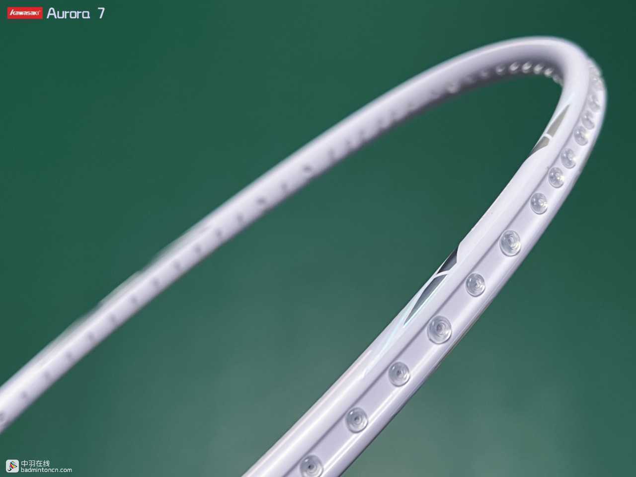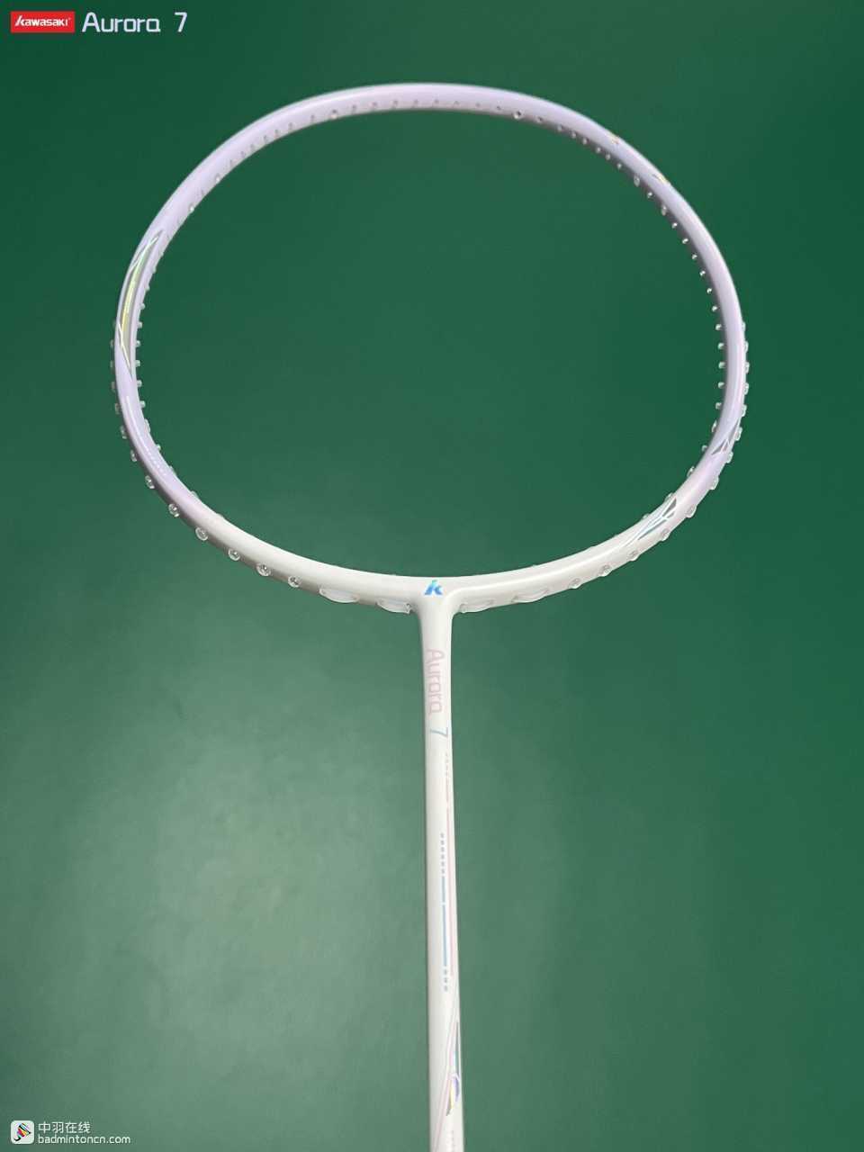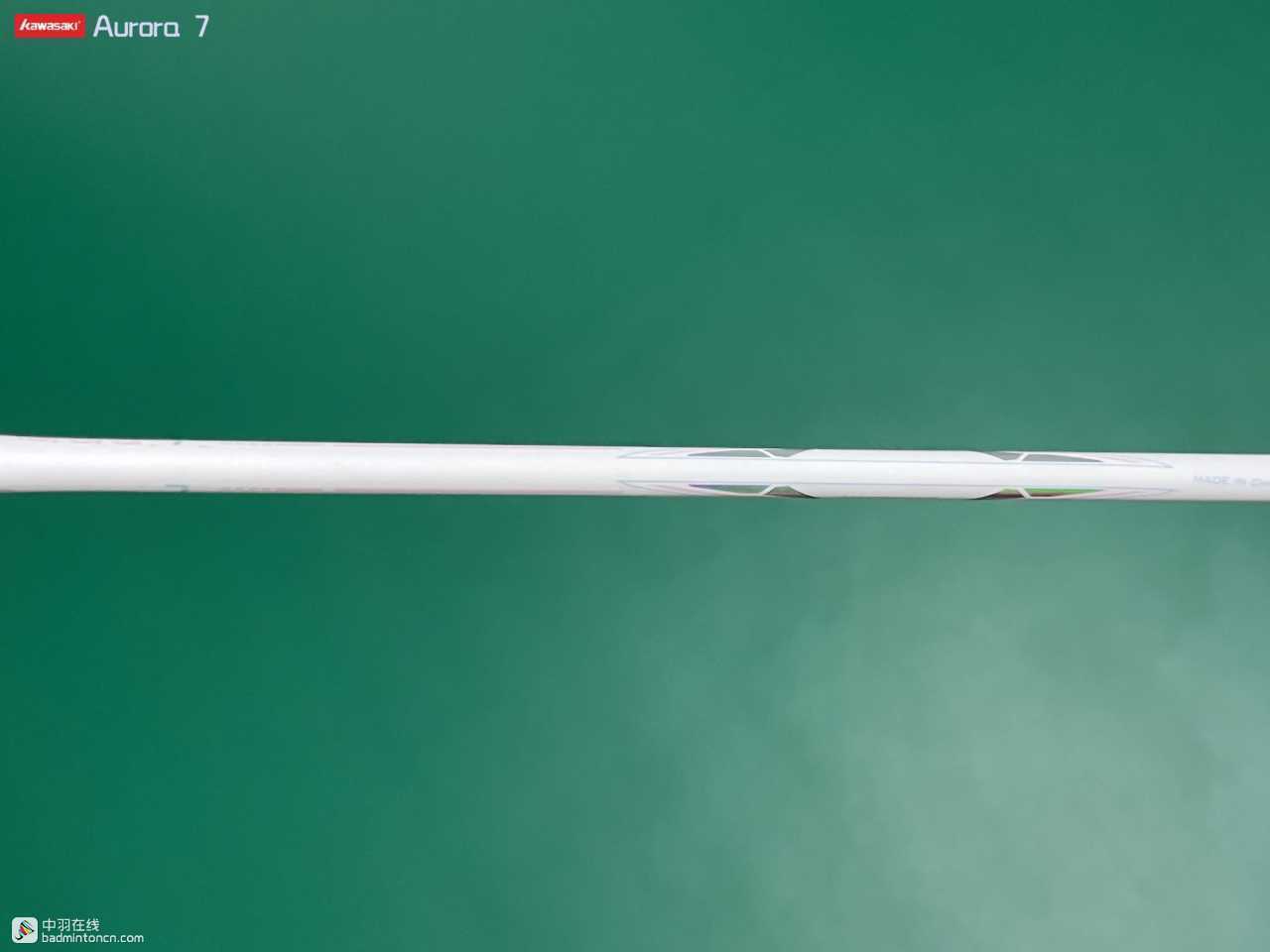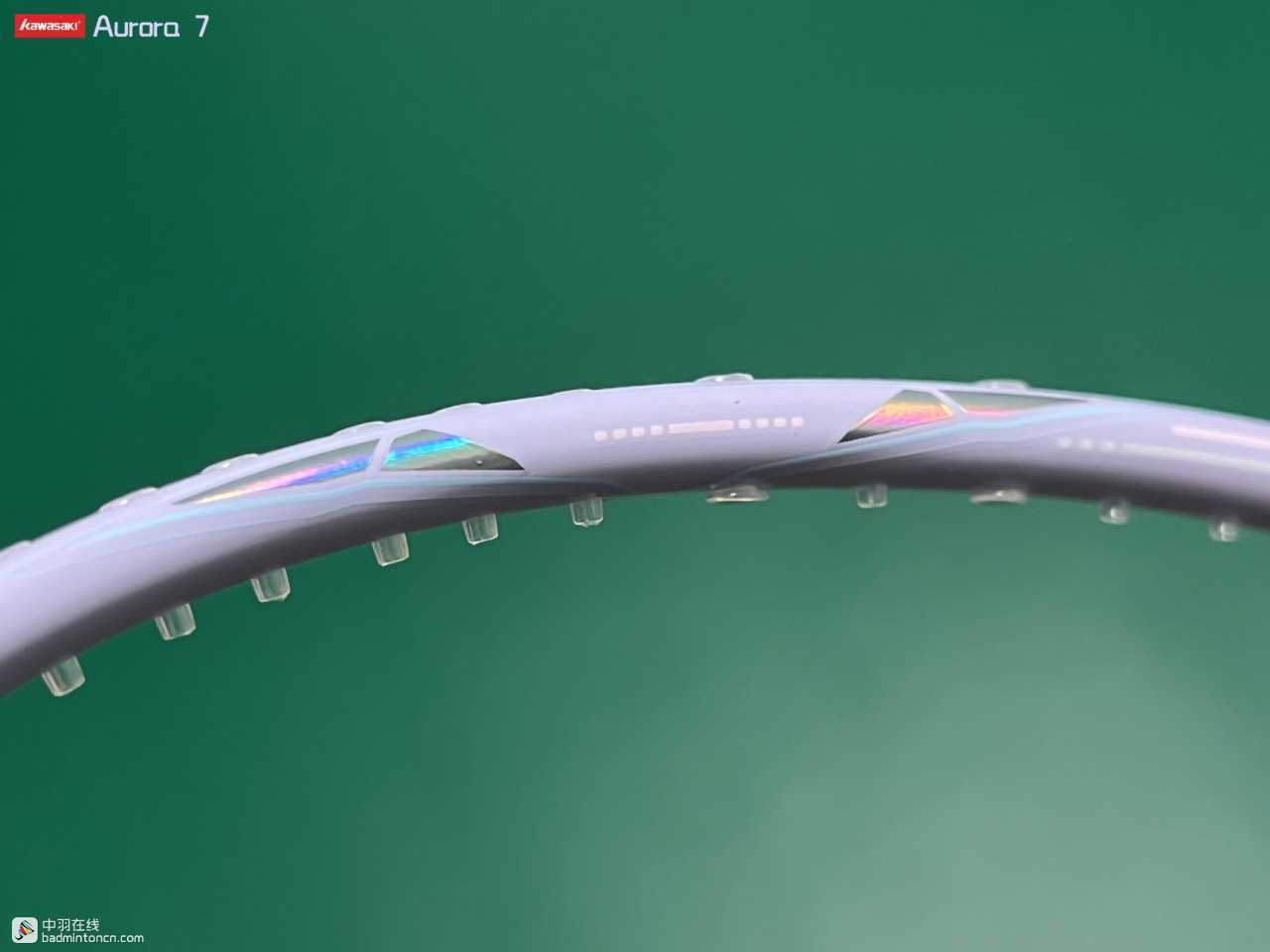 一支适合初学者的入门球拍应该是什么样的,对此,当前各大品牌都进行了探索并给出了各自的答案,近年也推出了多种多样的面向入门和初级球友的球拍。在这样的潮流中,川崎极光7(Aurora 7)也应运而生。 极光7是以5U超轻进攻拍为定位推出的,主要面向入门以及力量较小的球友,川崎官方首次以手绘的形式将球拍外观和各项参数呈现出来,非常新颖。以绚丽的自然现象“极光”命名,这款外观清新粉嫩的球拍,仅一个照面可能就会俘获不少球友的心。 那么极光7在性能与打感方面究竟有何特点,是否和这颇具吸引力的外观相称呢?本文就来一一和大家讨论。 外观初赏 川崎共为极光7设计了粉蓝、粉白、极光青和极光紫四款配色,笔者手中的这支是极光紫。以白色和淡紫色为主色调,这支极光紫配色的极光7以其淡雅清新的外观风格,在初次见面时就给人留下深刻的印象。 极光7的拍框由下部的白色逐渐向上部的淡紫色过渡,渐变的位置大约在5点和7点位置。 拍框两侧的图案采用的是非左右对称的设计,不过大体呈现着上下对称的布局,图案以银白色和粉色的线段以及极光镭射水标为主,风格低调,光照下镭射水标表面闪动着的彩色光泽是拍框上最为亮眼的点缀。 在拍框一侧,镭射水标位于中央9点位置附近,其上搭配有白色的线条予以装饰,上下两侧银白色和粉色的线段对称分布。 而另一侧的镭射水标则分布在1点和5点位置附近,其中间分别有淡蓝色的条纹修饰,而银白色和粉色的线段则位于拍框中部。 拍框顶部12点位置也有淡蓝色和粉色的线段作为点缀。拍框整体涂装非常简约,如同霞光下透着微微紫色光芒的云朵,给人一种静谧舒适的观感。 此外,极光7除了三通处两侧的4个二连钉是半透明的白色以外,其他所有的线孔处均配备了透明护线管。 极光7的中杆通体以白色为主,同样点缀以淡蓝色和粉色的线条以及极光镭射水标。 中杆正反两面图案对称,在靠近三通处均标有“Aurora 7”的型号名称,“Aurora”采用粉色,而数字“7”为淡蓝色,并非特别醒目,但很好地延续了球拍整体淡色系的设计风格。 在中杆尾部接近锥盖的位置,还有中文“极光7”字样的标识,同样是蓝粉结合,字体设计犹如在空气中浮动延展的光芒,颇具艺术感。 随极光7附赠的极光镭射拍套也是足够亮眼,就如同球拍之名“极光”一样,镭射的表面光彩熠熠,在光线的映照下,随着视角的变化,光彩变幻,给人一种绚丽而梦幻的感觉。 参数浅析 极光7仅有5U/G6一种规格。此外根据锥盖上的标注,“BALANCE”即平衡点参数标在了头偏重的一档,符合官方所给的超轻进攻拍的定位。 经过实际测量,笔者手中的这支极光7在空拍带底胶的状态下重约74.86g,平衡点约为305mm。 空拍去底胶后重约68.31g,平衡点达到了约327mm。 上线(李宁L67线,26磅),上手胶(缓震膜+李宁GP1000手胶)后,总重量约80.13g,平衡点约312mm。 极光7球拍总长实测约674mm,其中,拍框长度约254mm,中杆(锥盖顶部至T头两侧最下方线孔处)长度约215mm,手柄(底盖至锥盖顶部)则约为205mm,属于典型的大拍框设计,中杆和手柄均为标准长度。 极光7的拍框采用76孔穿线模式,拍框和甜区面积很大,充分提升击球的容错率。在框型方面,极光7采用流线型拍框,除T头附近位置以外,全拍均为偏圆润的流体盒式框,兼顾稳定性与挥速,并引入30T碳纱加强,运用真空气压成型。 经过实测,极光7的拍框底部(靠近T头处)宽度约为10.37mm,厚度约为7.64mm。 拍框两侧(3点、9点钟方向)宽度则约为10.26mm,厚度约为6.62mm。 拍框顶部宽度约为10.00mm,厚度约为6.28mm。 极光7的拍框外侧采用半线槽设计,线槽位于3点、9点位置以上。 极光7的中杆同样采用30T碳素纤维,实测外径约为7.27mm(测量点位于中杆中点处)。 根据锥盖上的标注,极光7的中杆硬度偏软,而在官方的介绍中则给出了更具体数值,软硬度为8.8,处于较软的水平,易于驱动。 总的来说,极光7主打超轻的重量,结合拍头重、中杆柔韧的特点,打造出迎合初学者的较低上手门槛。中杆上“HEAD HEAVY BALANCE FLEXIBLE SHAFT(头重柔韧中杆)”和“SUPER LIGHT WEIGHT(超轻重量)”的标识就展现了这一设计思路与定位。 极光7的建议穿线磅数为18至30磅。 打感体验 怎样的球拍适合初学者呢?首先,它一定是易于上手的。初学羽毛球时,我们一般会从动作的框架入手,再不断在发力方面寻求进阶。初学者对于爆发力的概念尚没有非常清晰和深入的认识,更重要的是在不同的位置都能够将球回到位。以后场球为例,初学者最初接触的技术都是高远球,入门阶段的球友发力水平有限,要想把高远球打到位,除了掌握正确的击球动作以外,球拍的借力也是一个不可忽视的因素。拍头有一定分量,有利于上手挥拍时借助惯性产生更大的力量,此外偏软的中杆让球拍更容易发生形变,形成鞭甩的效果,把力量送出去,有了这两点,就有助于让初学者比较容易地打出到位的高远球。而极光7正是满足这两个特点,同时自身重量比较轻,适合作为初学者不错的入门伙伴。 此外,极光7较大的拍面和甜区设计,也很好地保证了击球的容错率,流体盒式框型既保证了击球的稳定性,挥速也不慢,从各方面来说,极光7都拥有适合初学球友使用的特质,有着很低的上手门槛。