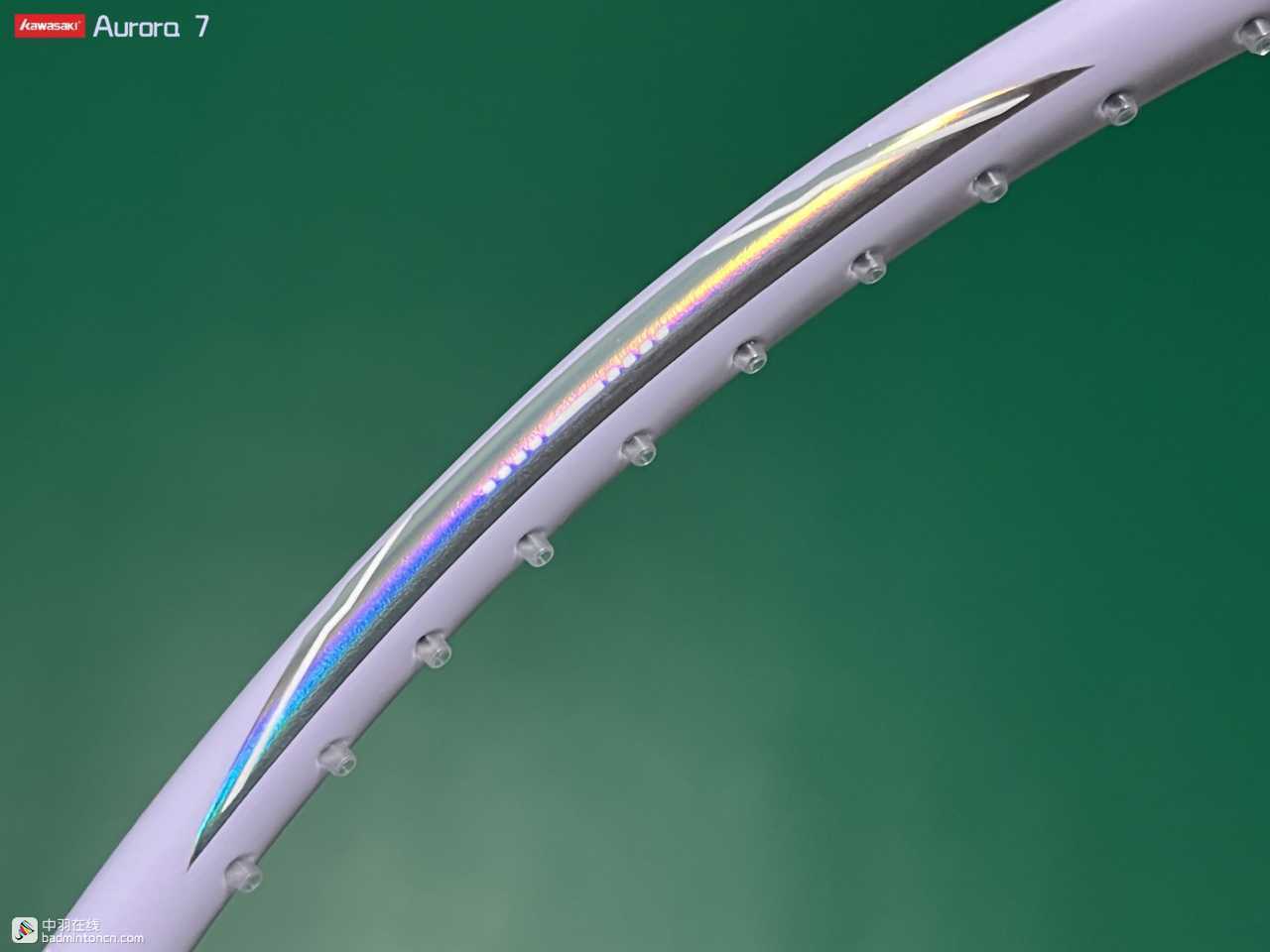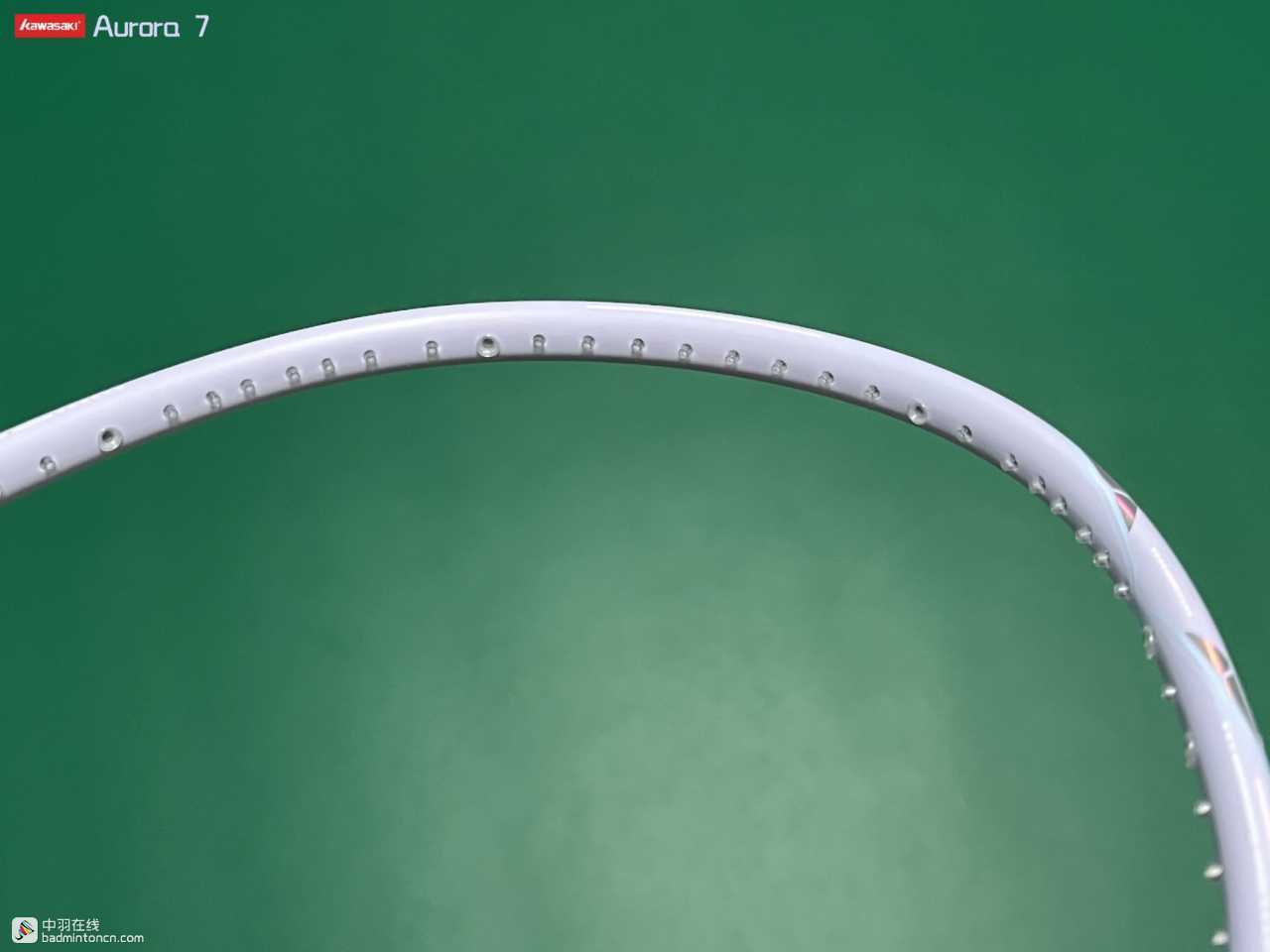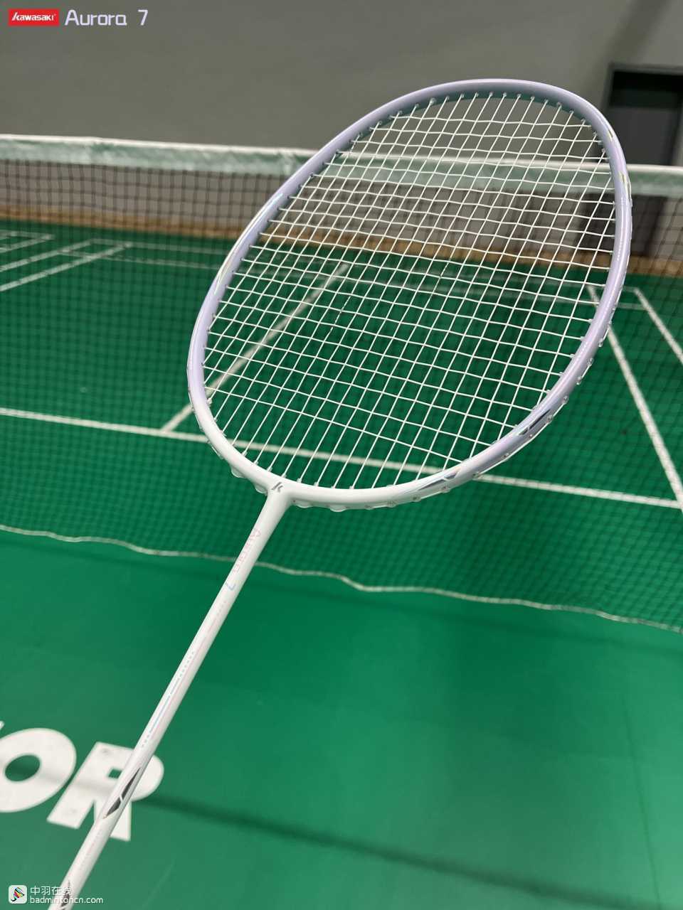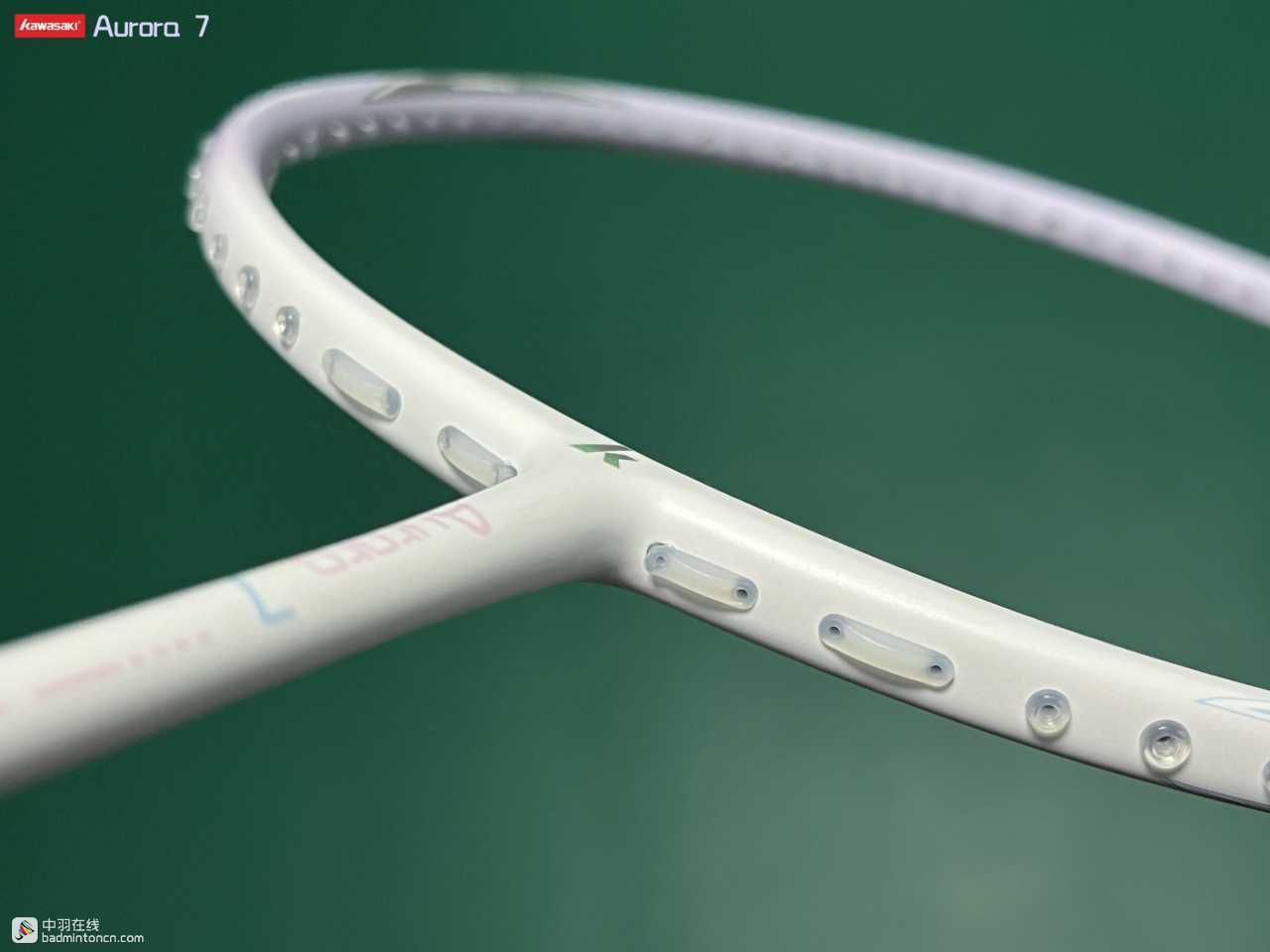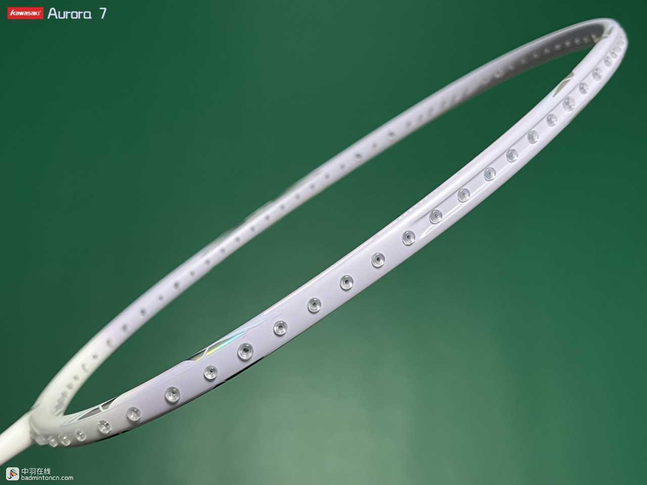 一支适合初学者的入门球拍应该是什么样的,对此,当前各大品牌都进行了探索并给出了各自的答案,近年也推出了多种多样的面向入门和初级球友的球拍。在这样的潮流中,川崎极光7(Aurora 7)也应运而生。 极光7是以5U超轻进攻拍为定位推出的,主要面向入门以及力量较小的球友,川崎官方首次以手绘的形式将球拍外观和各项参数呈现出来,非常新颖。以绚丽的自然现象“极光”命名,这款外观清新粉嫩的球拍,仅一个照面可能就会俘获不少球友的心。 那么极光7在性能与打感方面究竟有何特点,是否和这颇具吸引力的外观相称呢?本文就来一一和大家讨论。 外观初赏 川崎共为极光7设计了粉蓝、粉白、极光青和极光紫四款配色,笔者手中的这支是极光紫。以白色和淡紫色为主色调,这支极光紫配色的极光7以其淡雅清新的外观风格,在初次见面时就给人留下深刻的印象。 极光7的拍框由下部的白色逐渐向上部的淡紫色过渡,渐变的位置大约在5点和7点位置。 拍框两侧的图案采用的是非左右对称的设计,不过大体呈现着上下对称的布局,图案以银白色和粉色的线段以及极光镭射水标为主,风格低调,光照下镭射水标表面闪动着的彩色光泽是拍框上最为亮眼的点缀。 在拍框一侧,镭射水标位于中央9点位置附近,其上搭配有白色的线条予以装饰,上下两侧银白色和粉色的线段对称分布。 而另一侧的镭射水标则分布在1点和5点位置附近,其中间分别有淡蓝色的条纹修饰,而银白色和粉色的线段则位于拍框中部。 拍框顶部12点位置也有淡蓝色和粉色的线段作为点缀。拍框整体涂装非常简约,如同霞光下透着微微紫色光芒的云朵,给人一种静谧舒适的观感。 此外,极光7除了三通处两侧的4个二连钉是半透明的白色以外,其他所有的线孔处均配备了透明护线管。 极光7的中杆通体以白色为主,同样点缀以淡蓝色和粉色的线条以及极光镭射水标。 中杆正反两面图案对称,在靠近三通处均标有“Aurora 7”的型号名称,“Aurora”采用粉色,而数字“7”为淡蓝色,并非特别醒目,但很好地延续了球拍整体淡色系的设计风格。 在中杆尾部接近锥盖的位置,还有中文“极光7”字样的标识,同样是蓝粉结合,字体设计犹如在空气中浮动延展的光芒,颇具艺术感。 随极光7附赠的极光镭射拍套也是足够亮眼,就如同球拍之名“极光”一样,镭射的表面光彩熠熠,在光线的映照下,随着视角的变化,光彩变幻,给人一种绚丽而梦幻的感觉。 参数浅析 极光7仅有5U/G6一种规格。此外根据锥盖上的标注,“BALANCE”即平衡点参数标在了头偏重的一档,符合官方所给的超轻进攻拍的定位。 经过实际测量,笔者手中的这支极光7在空拍带底胶的状态下重约74.86g,平衡点约为305mm。 空拍去底胶后重约68.31g,平衡点达到了约327mm。 上线(李宁L67线,26磅),上手胶(缓震膜+李宁GP1000手胶)后,总重量约80.13g,平衡点约312mm。 极光7球拍总长实测约674mm,其中,拍框长度约254mm,中杆(锥盖顶部至T头两侧最下方线孔处)长度约215mm,手柄(底盖至锥盖顶部)则约为205mm,属于典型的大拍框设计,中杆和手柄均为标准长度。 极光7的拍框采用76孔穿线模式,拍框和甜区面积很大,充分提升击球的容错率。在框型方面,极光7采用流线型拍框,除T头附近位置以外,全拍均为偏圆润的流体盒式框,兼顾稳定性与挥速,并引入30T碳纱加强,运用真空气压成型。 经过实测,极光7的拍框底部(靠近T头处)宽度约为10.37mm,厚度约为7.64mm。 拍框两侧(3点、9点钟方向)宽度则约为10.26mm,厚度约为6.62mm。 拍框顶部宽度约为10.00mm,厚度约为6.28mm。 极光7的拍框外侧采用半线槽设计,线槽位于3点、9点位置以上。 极光7的中杆同样采用30T碳素纤维,实测外径约为7.27mm(测量点位于中杆中点处)。 根据锥盖上的标注,极光7的中杆硬度偏软,而在官方的介绍中则给出了更具体数值,软硬度为8.8,处于较软的水平,易于驱动。 总的来说,极光7主打超轻的重量,结合拍头重、中杆柔韧的特点,打造出迎合初学者的较低上手门槛。中杆上“HEAD HEAVY BALANCE FLEXIBLE SHAFT(头重柔韧中杆)”和“SUPER LIGHT WEIGHT(超轻重量)”的标识就展现了这一设计思路与定位。 极光7的建议穿线磅数为18至30磅。 打感体验 怎样的球拍适合初学者呢?首先,它一定是易于上手的。初学羽毛球时,我们一般会从动作的框架入手,再不断在发力方面寻求进阶。初学者对于爆发力的概念尚没有非常清晰和深入的认识,更重要的是在不同的位置都能够将球回到位。以后场球为例,初学者最初接触的技术都是高远球,入门阶段的球友发力水平有限,要想把高远球打到位,除了掌握正确的击球动作以外,球拍的借力也是一个不可忽视的因素。拍头有一定分量,有利于上手挥拍时借助惯性产生更大的力量,此外偏软的中杆让球拍更容易发生形变,形成鞭甩的效果,把力量送出去,有了这两点,就有助于让初学者比较容易地打出到位的高远球。而极光7正是满足这两个特点,同时自身重量比较轻,适合作为初学者不错的入门伙伴。 此外,极光7较大的拍面和甜区设计,也很好地保证了击球的容错率,流体盒式框型既保证了击球的稳定性,挥速也不慢,从各方面来说,极光7都拥有适合初学球友使用的特质,有着很低的上手门槛。