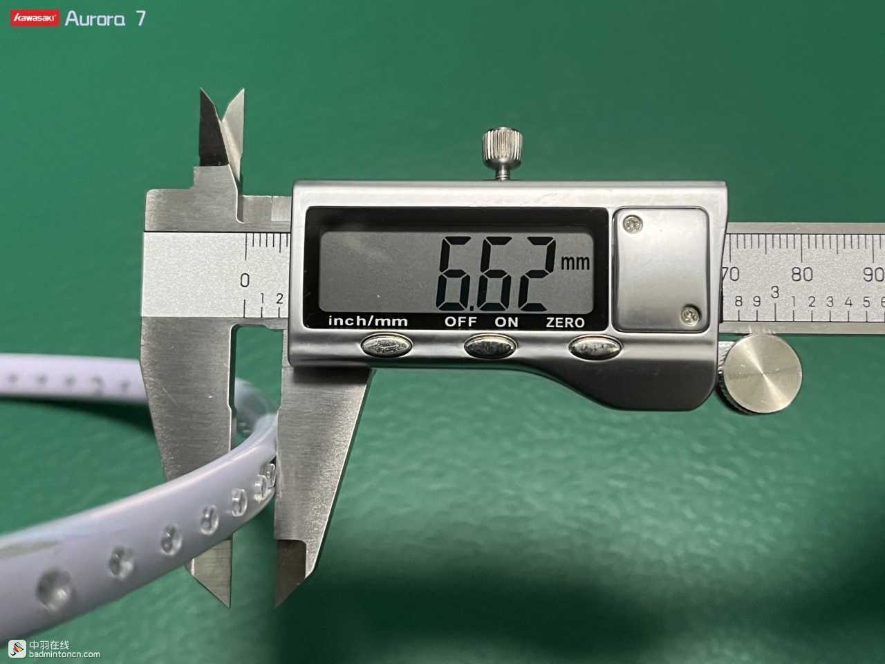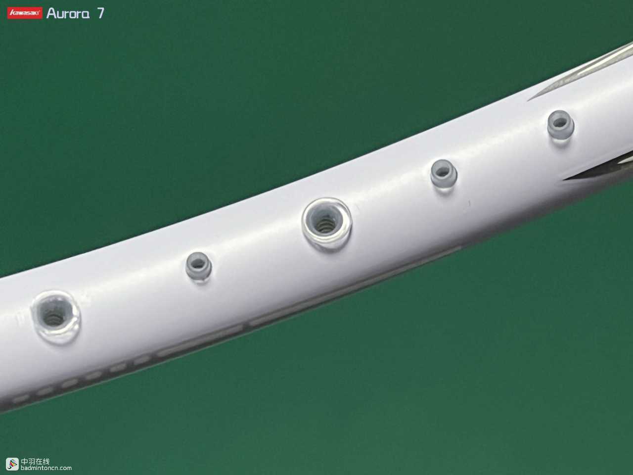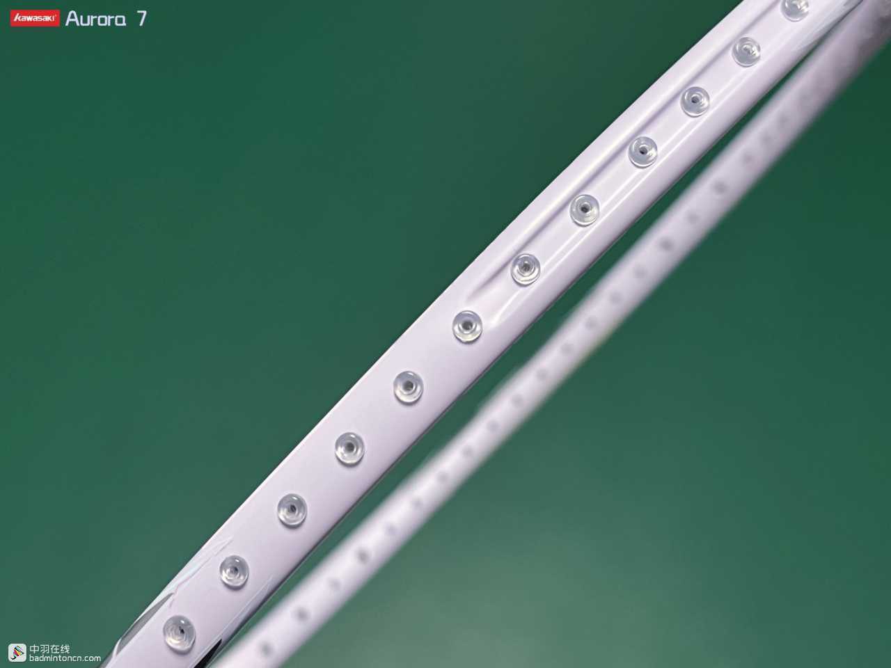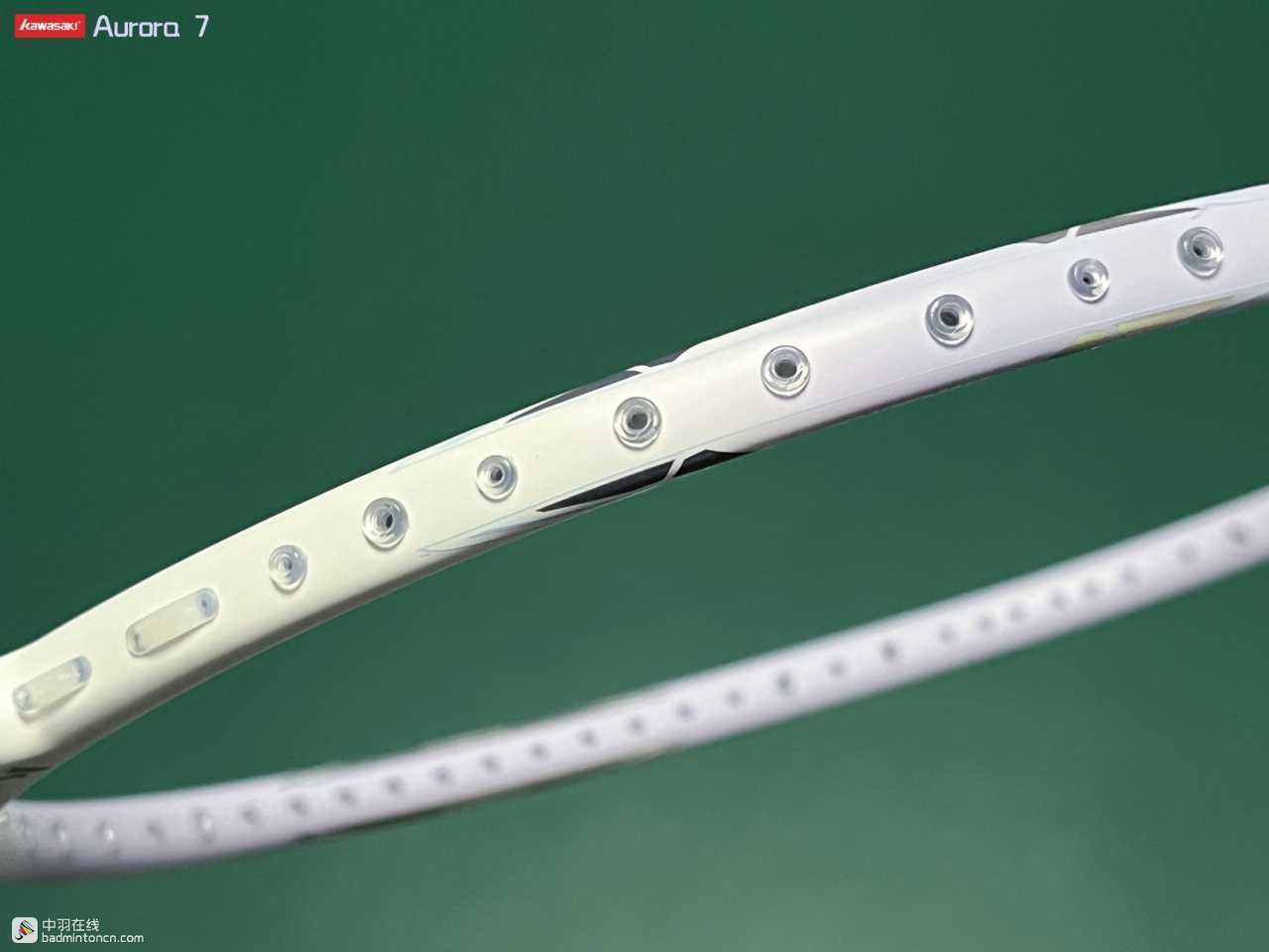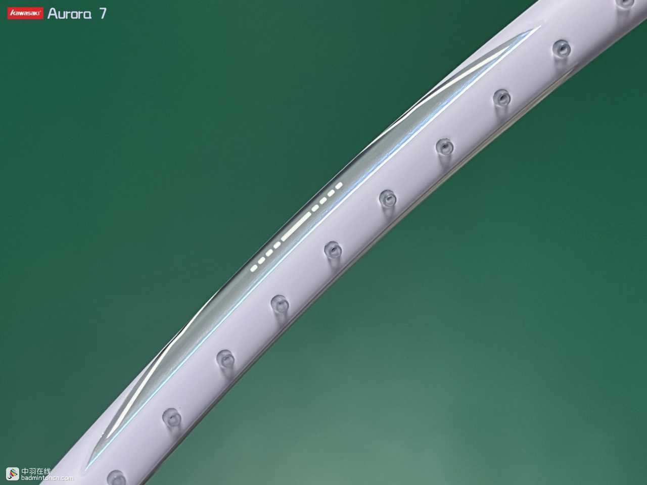 一支适合初学者的入门球拍应该是什么样的,对此,当前各大品牌都进行了探索并给出了各自的答案,近年也推出了多种多样的面向入门和初级球友的球拍。在这样的潮流中,川崎极光7(Aurora 7)也应运而生。 极光7是以5U超轻进攻拍为定位推出的,主要面向入门以及力量较小的球友,川崎官方首次以手绘的形式将球拍外观和各项参数呈现出来,非常新颖。以绚丽的自然现象“极光”命名,这款外观清新粉嫩的球拍,仅一个照面可能就会俘获不少球友的心。 那么极光7在性能与打感方面究竟有何特点,是否和这颇具吸引力的外观相称呢?本文就来一一和大家讨论。 外观初赏 川崎共为极光7设计了粉蓝、粉白、极光青和极光紫四款配色,笔者手中的这支是极光紫。以白色和淡紫色为主色调,这支极光紫配色的极光7以其淡雅清新的外观风格,在初次见面时就给人留下深刻的印象。 极光7的拍框由下部的白色逐渐向上部的淡紫色过渡,渐变的位置大约在5点和7点位置。 拍框两侧的图案采用的是非左右对称的设计,不过大体呈现着上下对称的布局,图案以银白色和粉色的线段以及极光镭射水标为主,风格低调,光照下镭射水标表面闪动着的彩色光泽是拍框上最为亮眼的点缀。 在拍框一侧,镭射水标位于中央9点位置附近,其上搭配有白色的线条予以装饰,上下两侧银白色和粉色的线段对称分布。 而另一侧的镭射水标则分布在1点和5点位置附近,其中间分别有淡蓝色的条纹修饰,而银白色和粉色的线段则位于拍框中部。 拍框顶部12点位置也有淡蓝色和粉色的线段作为点缀。拍框整体涂装非常简约,如同霞光下透着微微紫色光芒的云朵,给人一种静谧舒适的观感。 此外,极光7除了三通处两侧的4个二连钉是半透明的白色以外,其他所有的线孔处均配备了透明护线管。 极光7的中杆通体以白色为主,同样点缀以淡蓝色和粉色的线条以及极光镭射水标。 中杆正反两面图案对称,在靠近三通处均标有“Aurora 7”的型号名称,“Aurora”采用粉色,而数字“7”为淡蓝色,并非特别醒目,但很好地延续了球拍整体淡色系的设计风格。 在中杆尾部接近锥盖的位置,还有中文“极光7”字样的标识,同样是蓝粉结合,字体设计犹如在空气中浮动延展的光芒,颇具艺术感。 随极光7附赠的极光镭射拍套也是足够亮眼,就如同球拍之名“极光”一样,镭射的表面光彩熠熠,在光线的映照下,随着视角的变化,光彩变幻,给人一种绚丽而梦幻的感觉。 参数浅析 极光7仅有5U/G6一种规格。此外根据锥盖上的标注,“BALANCE”即平衡点参数标在了头偏重的一档,符合官方所给的超轻进攻拍的定位。 经过实际测量,笔者手中的这支极光7在空拍带底胶的状态下重约74.86g,平衡点约为305mm。 空拍去底胶后重约68.31g,平衡点达到了约327mm。 上线(李宁L67线,26磅),上手胶(缓震膜+李宁GP1000手胶)后,总重量约80.13g,平衡点约312mm。 极光7球拍总长实测约674mm,其中,拍框长度约254mm,中杆(锥盖顶部至T头两侧最下方线孔处)长度约215mm,手柄(底盖至锥盖顶部)则约为205mm,属于典型的大拍框设计,中杆和手柄均为标准长度。 极光7的拍框采用76孔穿线模式,拍框和甜区面积很大,充分提升击球的容错率。在框型方面,极光7采用流线型拍框,除T头附近位置以外,全拍均为偏圆润的流体盒式框,兼顾稳定性与挥速,并引入30T碳纱加强,运用真空气压成型。 经过实测,极光7的拍框底部(靠近T头处)宽度约为10.37mm,厚度约为7.64mm。 拍框两侧(3点、9点钟方向)宽度则约为10.26mm,厚度约为6.62mm。 拍框顶部宽度约为10.00mm,厚度约为6.28mm。 极光7的拍框外侧采用半线槽设计,线槽位于3点、9点位置以上。 极光7的中杆同样采用30T碳素纤维,实测外径约为7.27mm(测量点位于中杆中点处)。 根据锥盖上的标注,极光7的中杆硬度偏软,而在官方的介绍中则给出了更具体数值,软硬度为8.8,处于较软的水平,易于驱动。 总的来说,极光7主打超轻的重量,结合拍头重、中杆柔韧的特点,打造出迎合初学者的较低上手门槛。中杆上“HEAD HEAVY BALANCE FLEXIBLE SHAFT(头重柔韧中杆)”和“SUPER LIGHT WEIGHT(超轻重量)”的标识就展现了这一设计思路与定位。 极光7的建议穿线磅数为18至30磅。 打感体验 怎样的球拍适合初学者呢?首先,它一定是易于上手的。初学羽毛球时,我们一般会从动作的框架入手,再不断在发力方面寻求进阶。初学者对于爆发力的概念尚没有非常清晰和深入的认识,更重要的是在不同的位置都能够将球回到位。以后场球为例,初学者最初接触的技术都是高远球,入门阶段的球友发力水平有限,要想把高远球打到位,除了掌握正确的击球动作以外,球拍的借力也是一个不可忽视的因素。拍头有一定分量,有利于上手挥拍时借助惯性产生更大的力量,此外偏软的中杆让球拍更容易发生形变,形成鞭甩的效果,把力量送出去,有了这两点,就有助于让初学者比较容易地打出到位的高远球。而极光7正是满足这两个特点,同时自身重量比较轻,适合作为初学者不错的入门伙伴。 此外,极光7较大的拍面和甜区设计,也很好地保证了击球的容错率,流体盒式框型既保证了击球的稳定性,挥速也不慢,从各方面来说,极光7都拥有适合初学球友使用的特质,有着很低的上手门槛。
