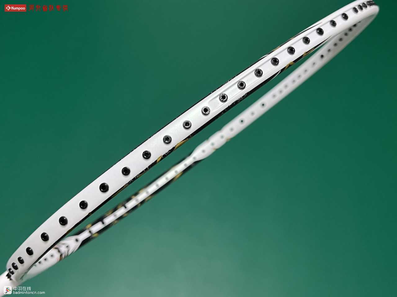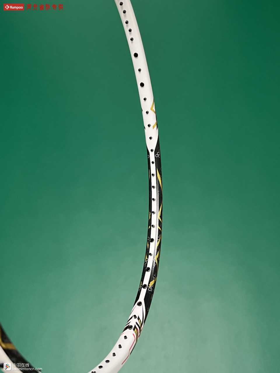 河北省队专供的拍框采用对称式的设计,以白色为底色,泛有淡淡珠光的白色漆水显得颇为精致。