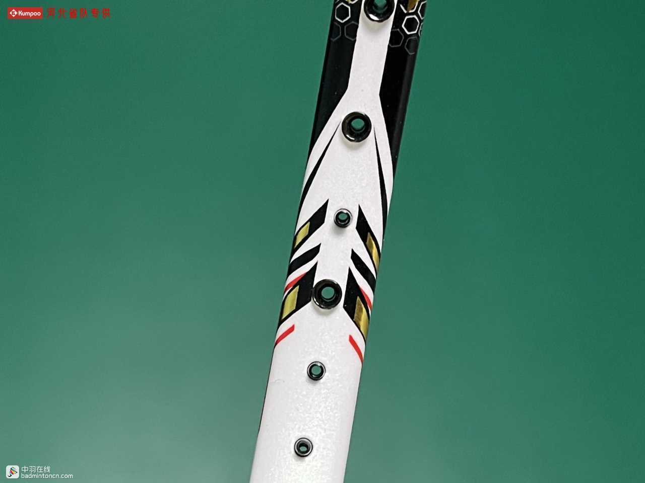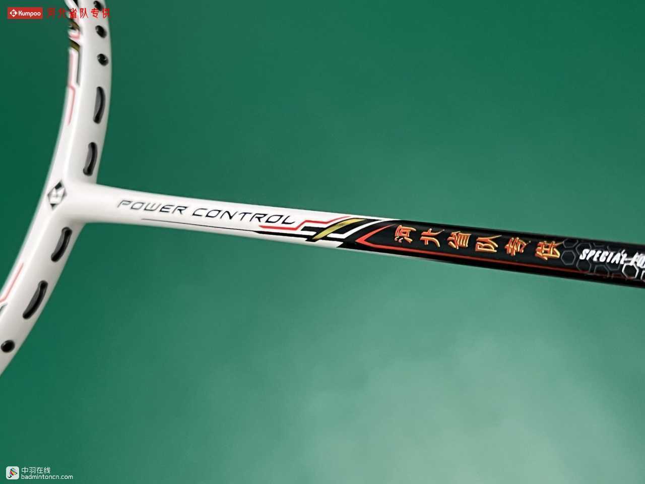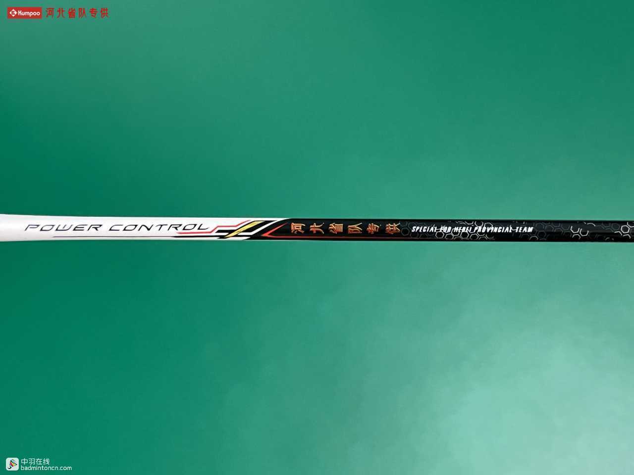 河北省队专供的中杆采用正反两面对称设计,上半部分为白色,黑色的“POWER CONTROL”标出了球拍的所属系列。