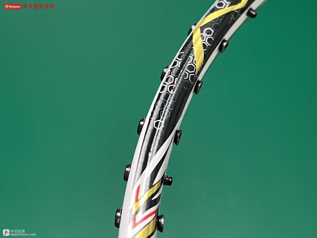 河北省队专供的拍框采用76孔穿线模式,大拍面的设计带来较大的甜区面积,增大击球时的容错率。