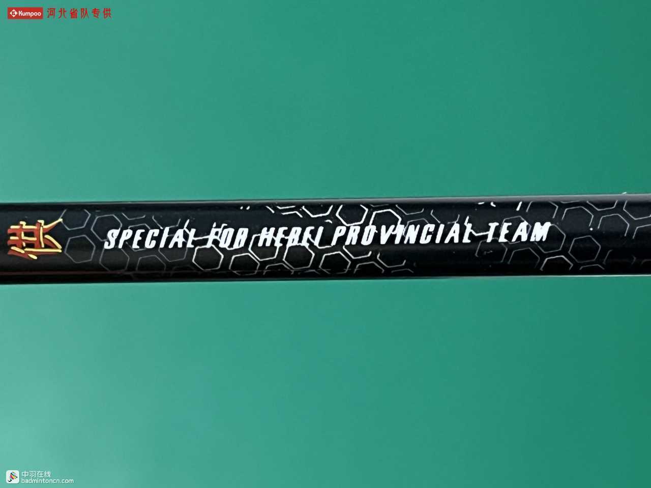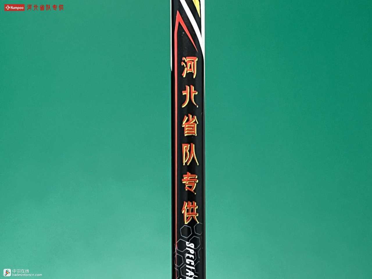 而下半部分直至锥盖为黑色,“河北省队专供”几个汉字纵向排列,书于中杆正中,以红色搭配金色阴影的效果呈现,颇为醒目。