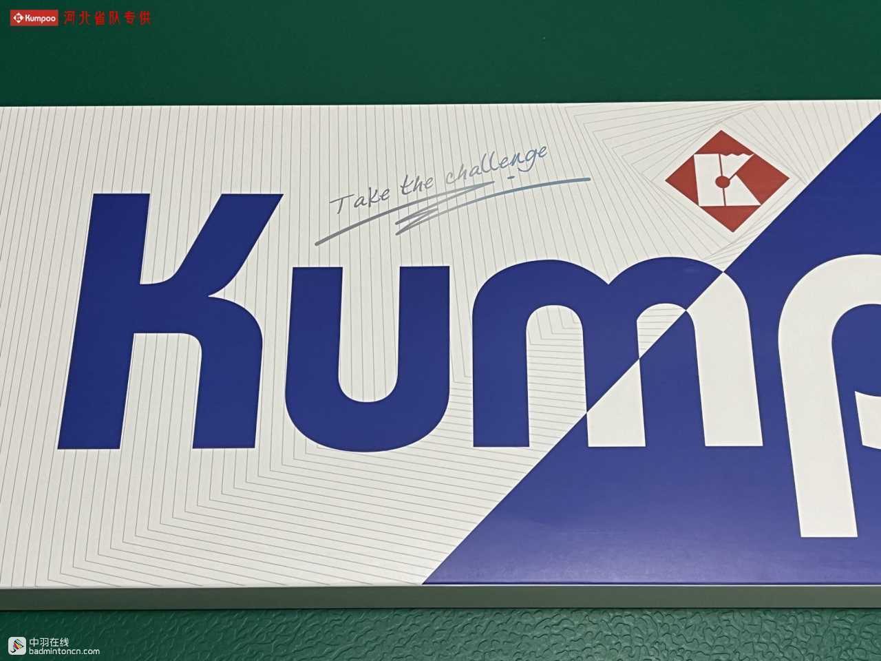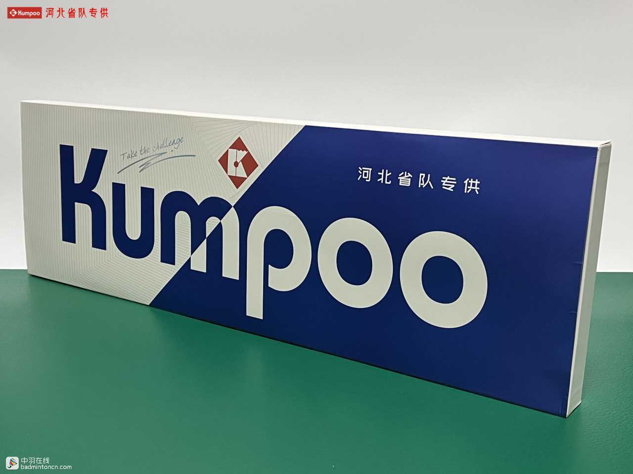 市售版河北省队专供以礼盒的形式面世,礼盒包装采用抽拉式设计,蓝白的底色以及品牌名称“Kumpoo”的交错互补设计在简约中带来对比强烈的视觉效果,正中央印有红色的薰风LOGO,左侧为“Take the challenge”的标语,右侧则有“河北省队专供”的字样。