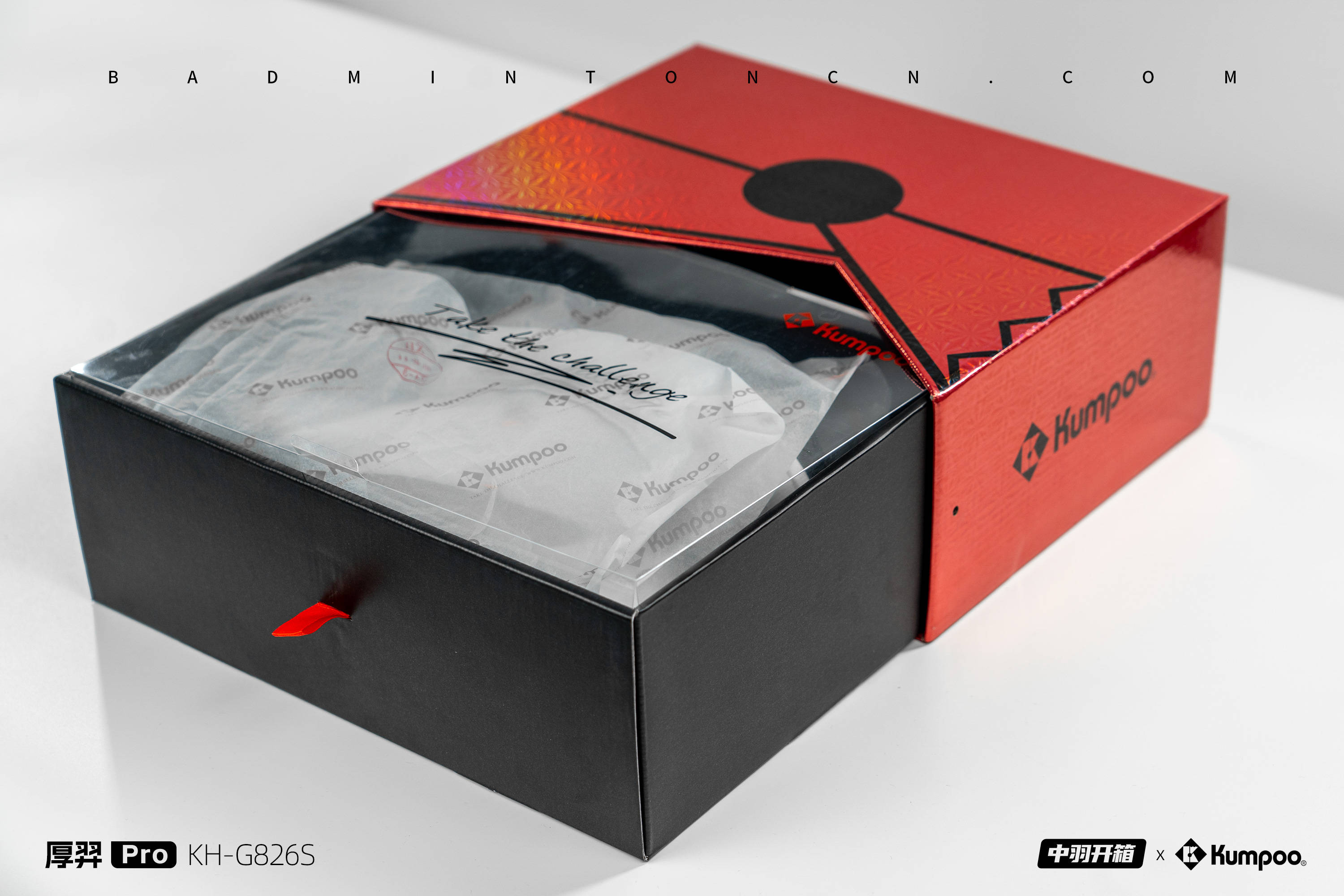 抽屉式鞋盒,再用一根红丝带拉手,拉出鞋盒后,薰风的口号“Take The Challenge”便浮现眼前,而球鞋主体静静躺在透明鞋盒当中,设计感与仪式拉满。