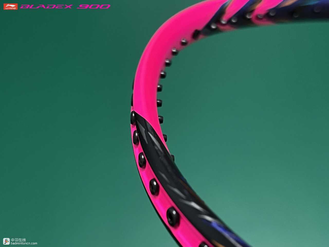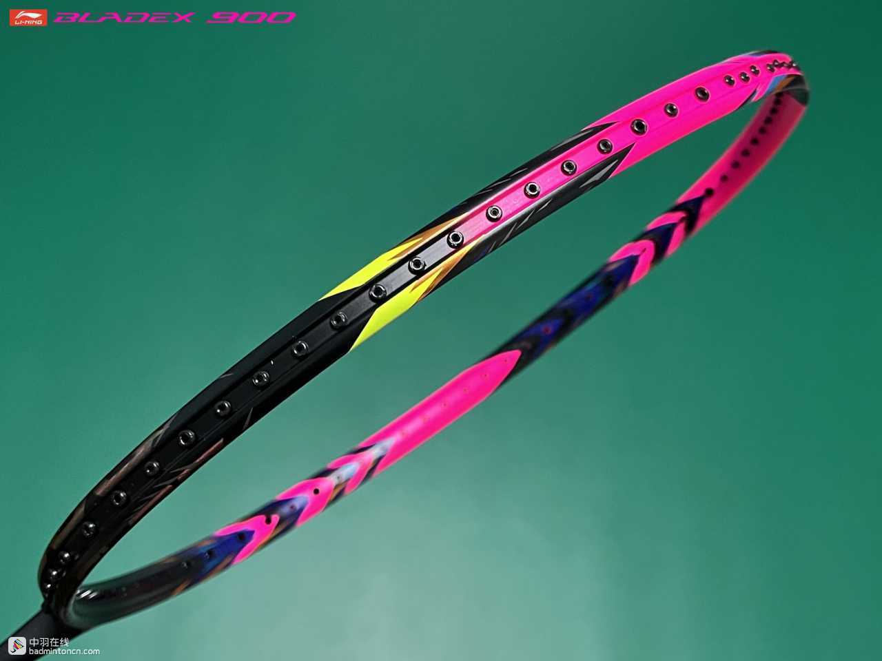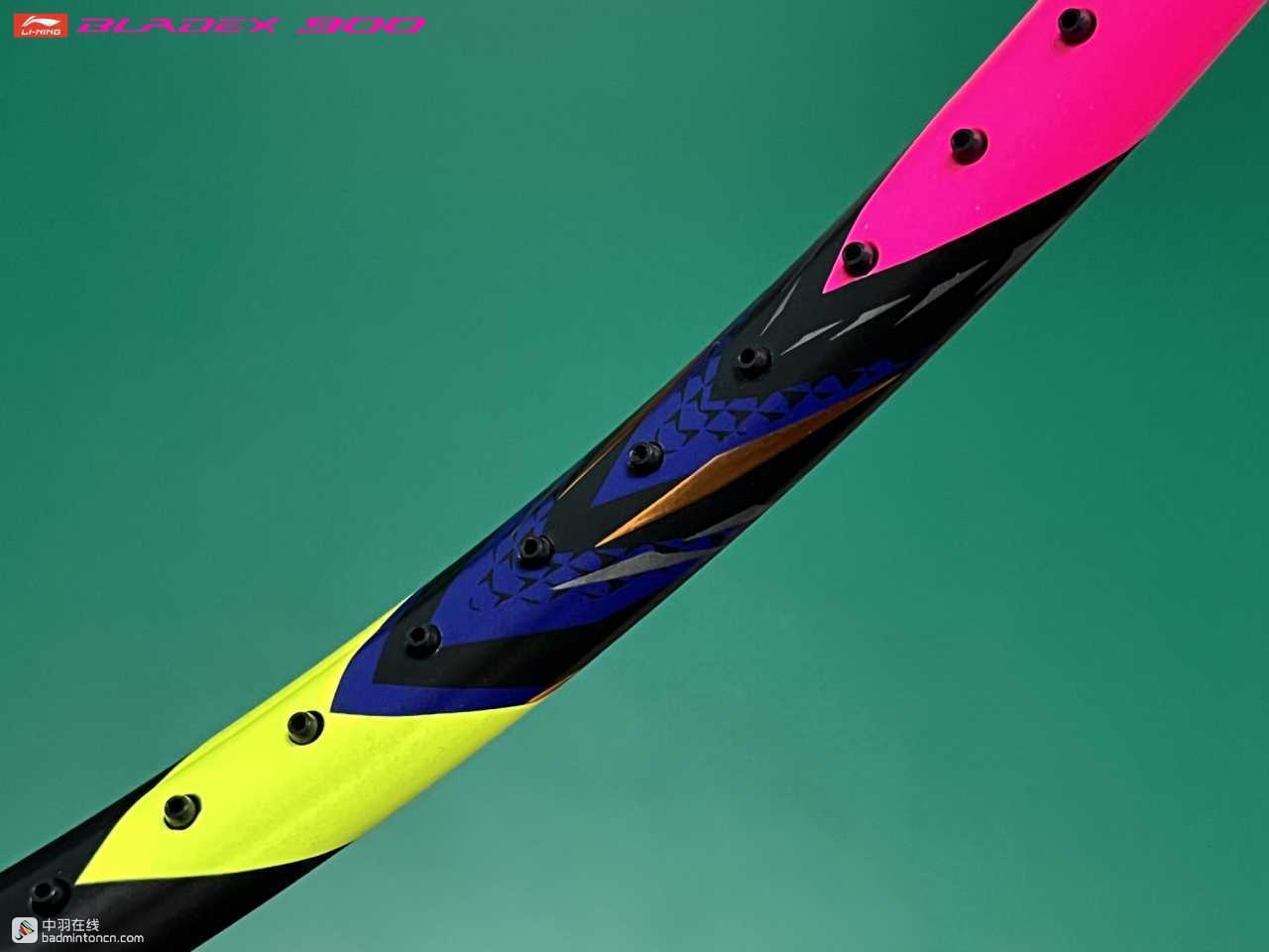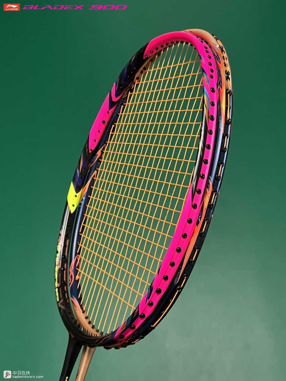 锋影900 NEW是锋影系列中首款外观大面积采用荧光莓红这样高饱和度明亮色系的球拍,这使得球拍整体颇具辨识度,第一眼就能抓人眼球。