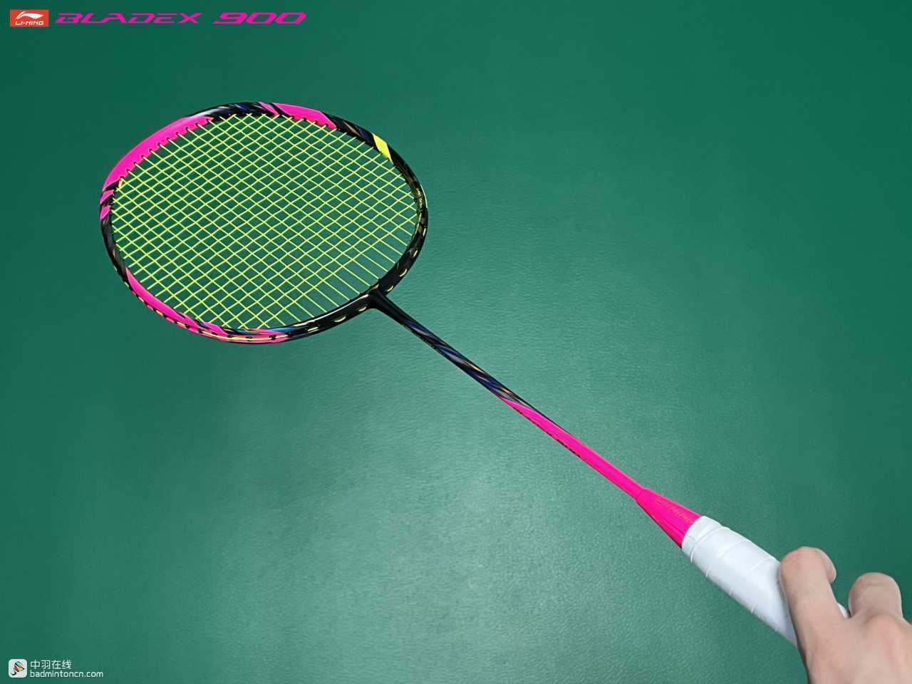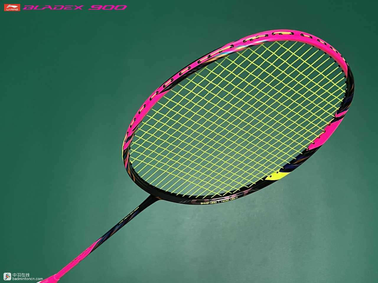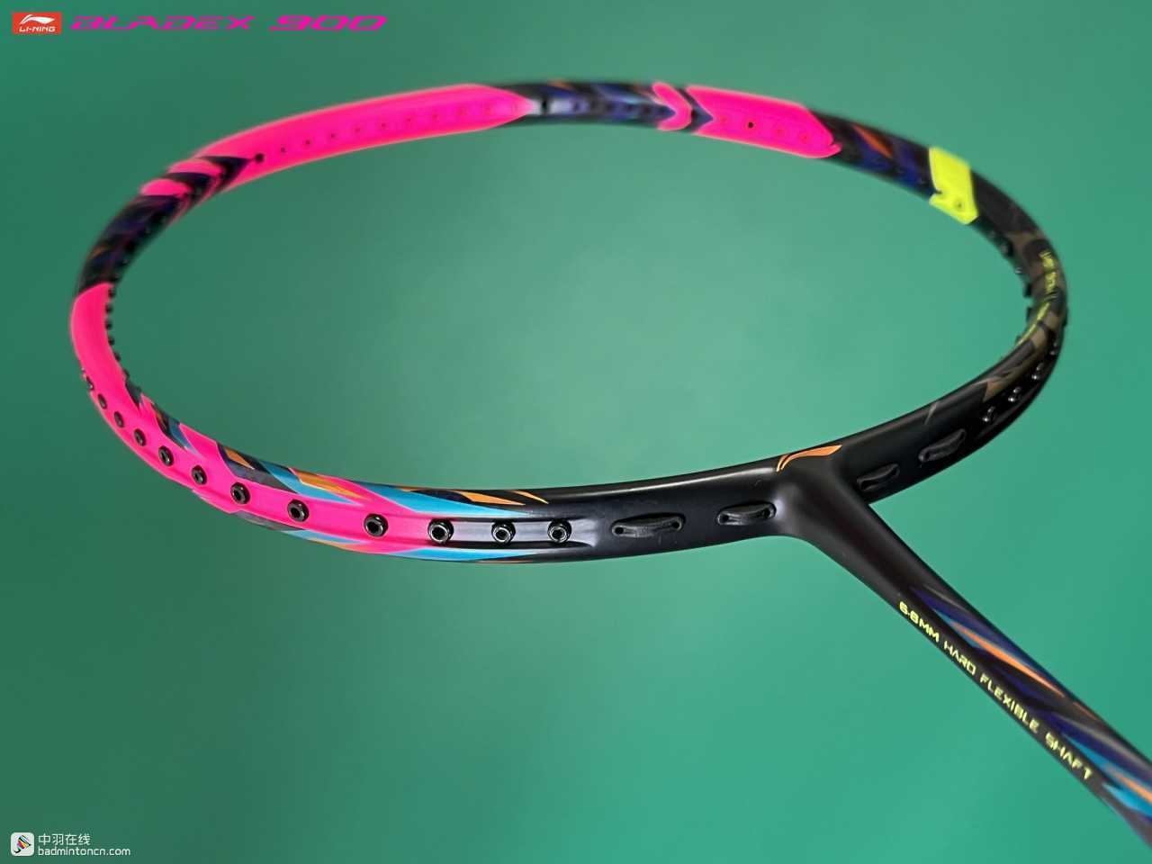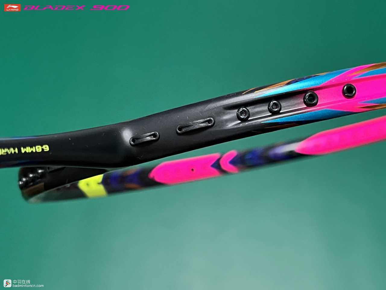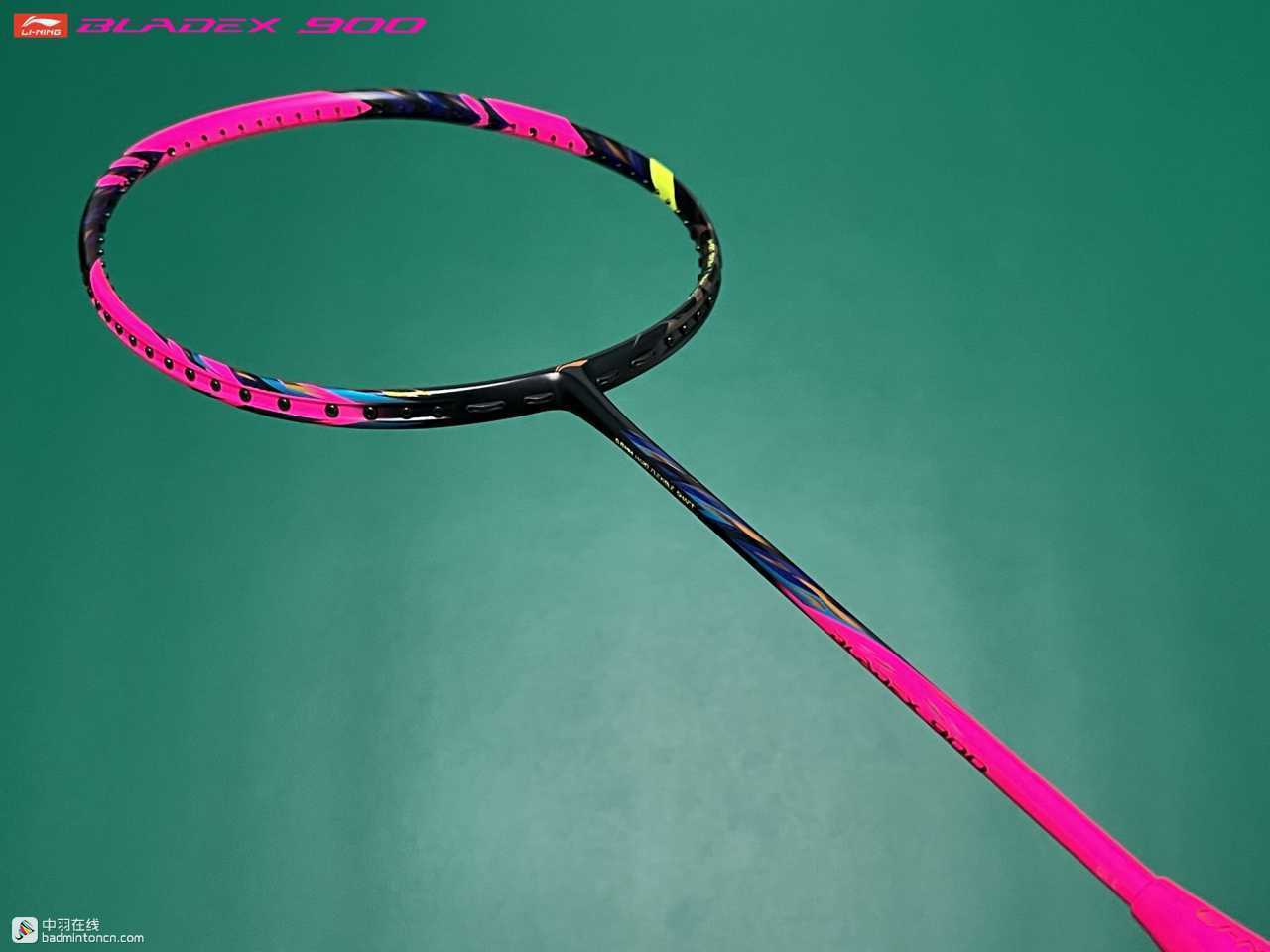 锋影900 NEW是锋影系列中首款外观大面积采用荧光莓红这样高饱和度明亮色系的球拍,这使得球拍整体颇具辨识度,第一眼就能抓人眼球。