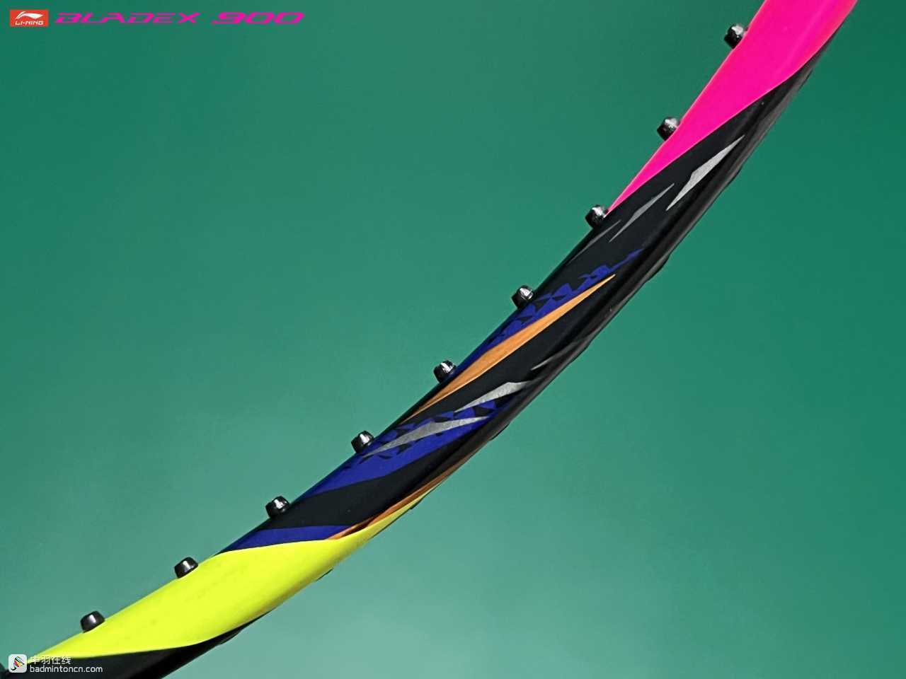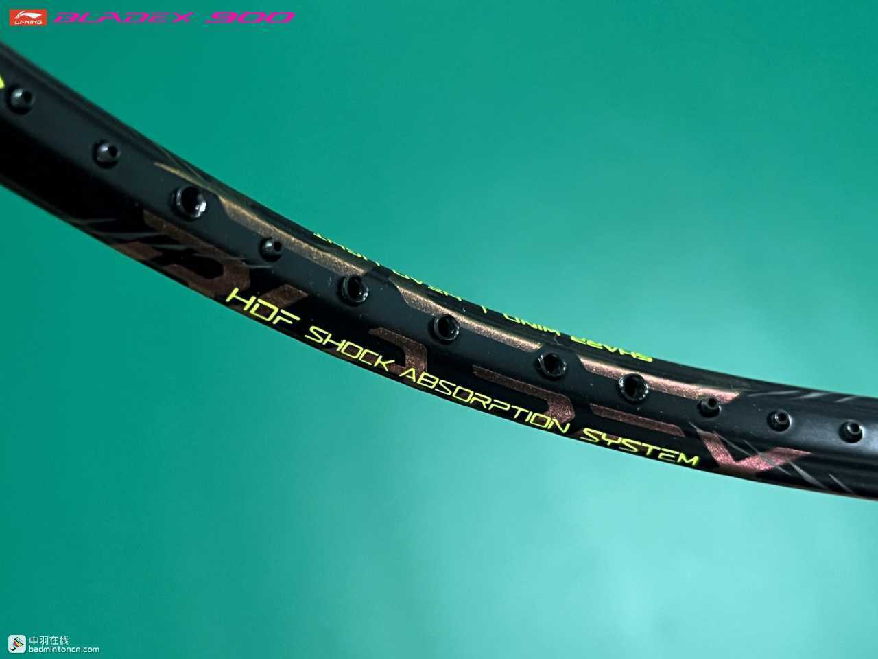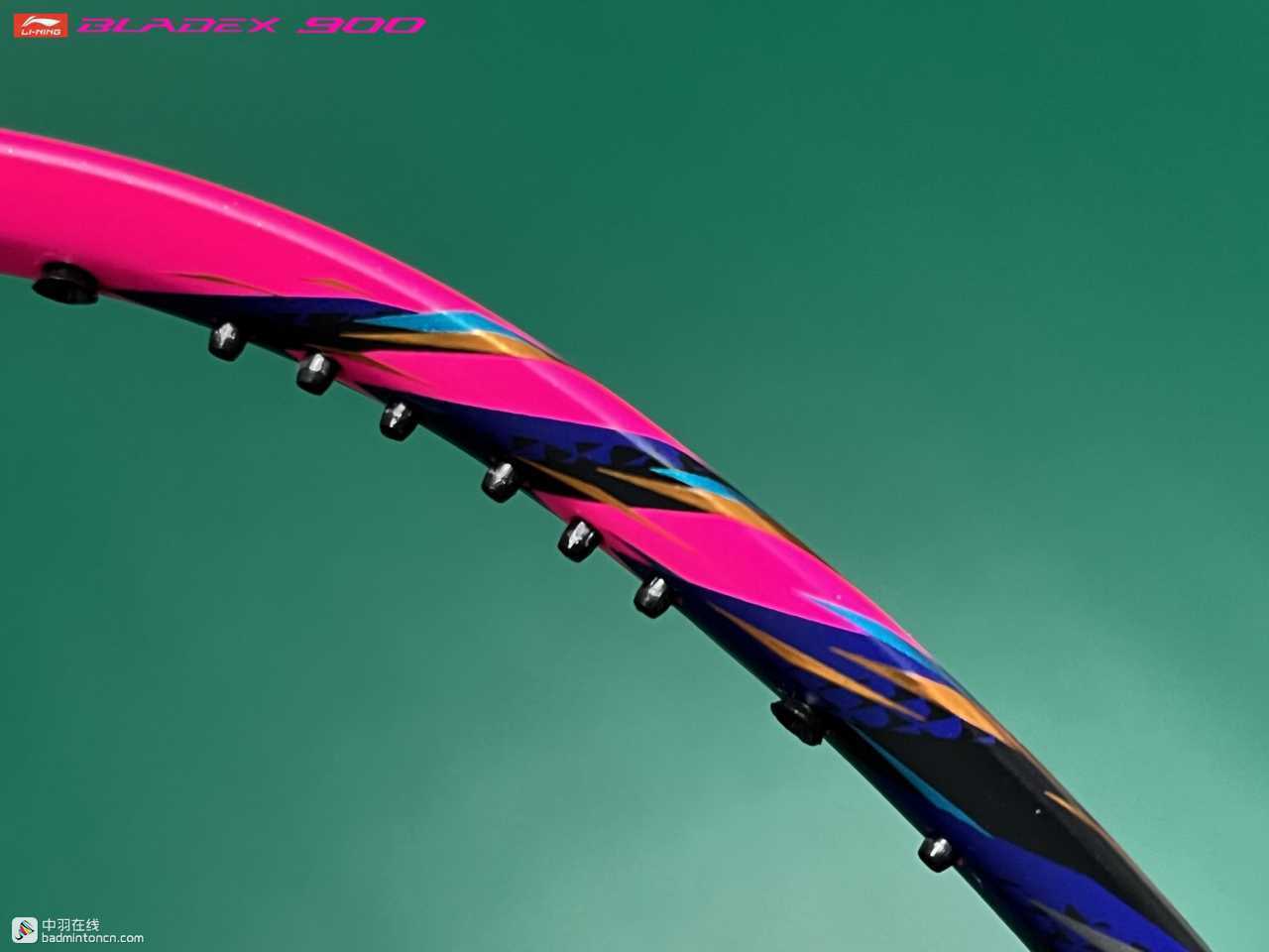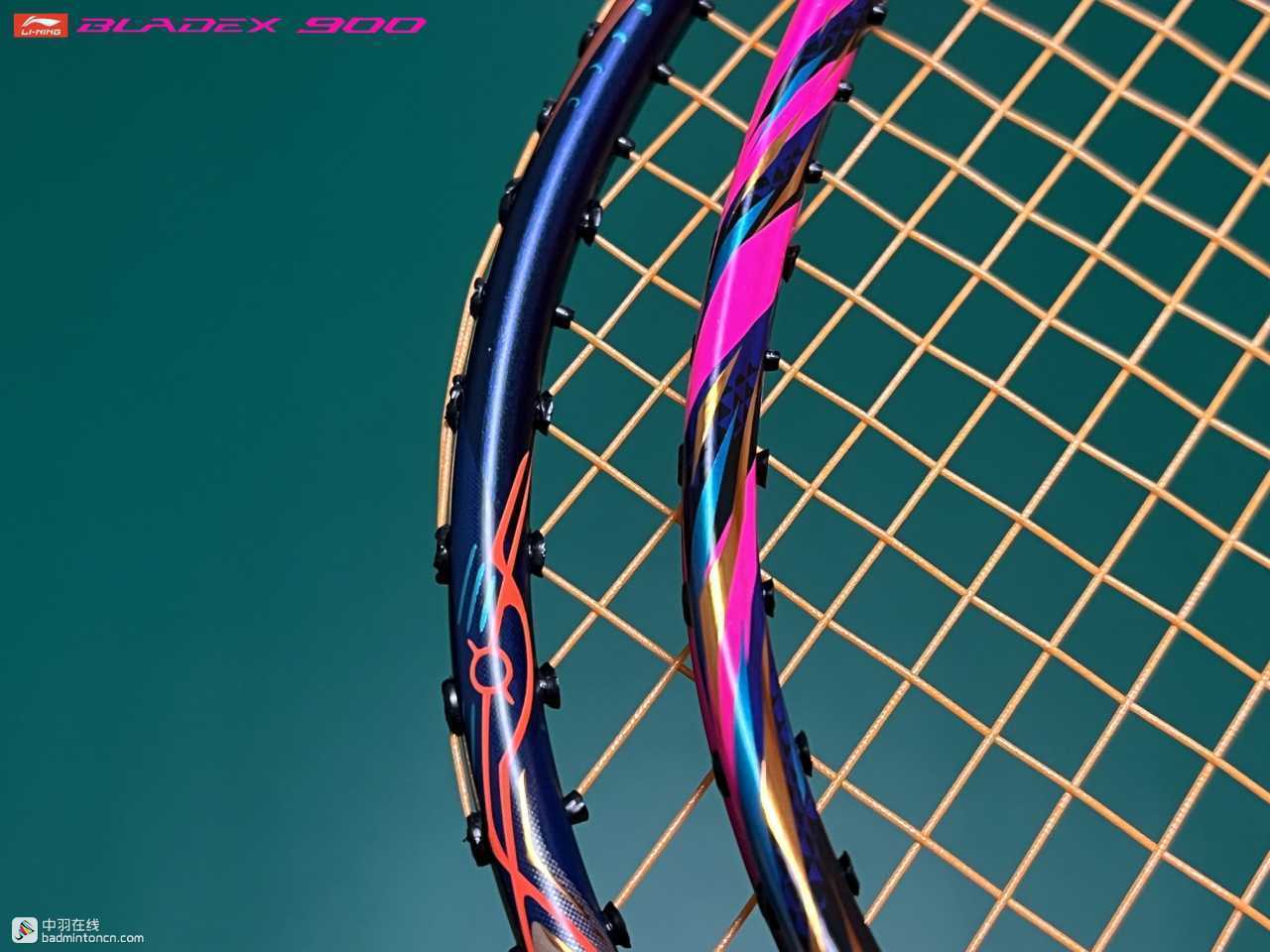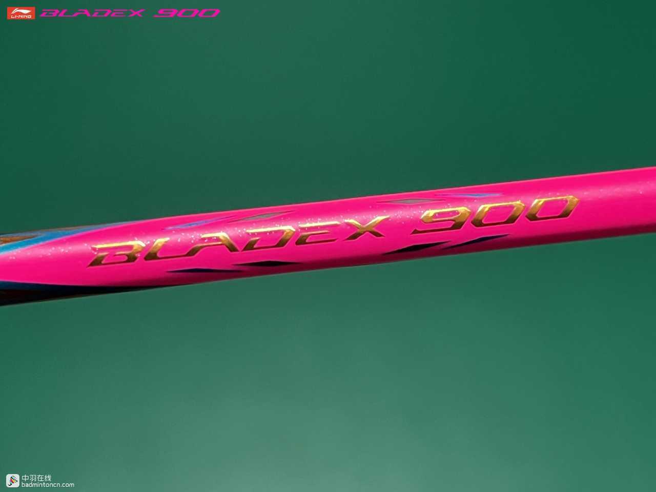 此外在拍框一侧大约4点至5点(7点至8点)的位置,古铜色的字样在两面分别标出了锋影系列名称“BLADEX”和“900”,彰显球拍的身份。
