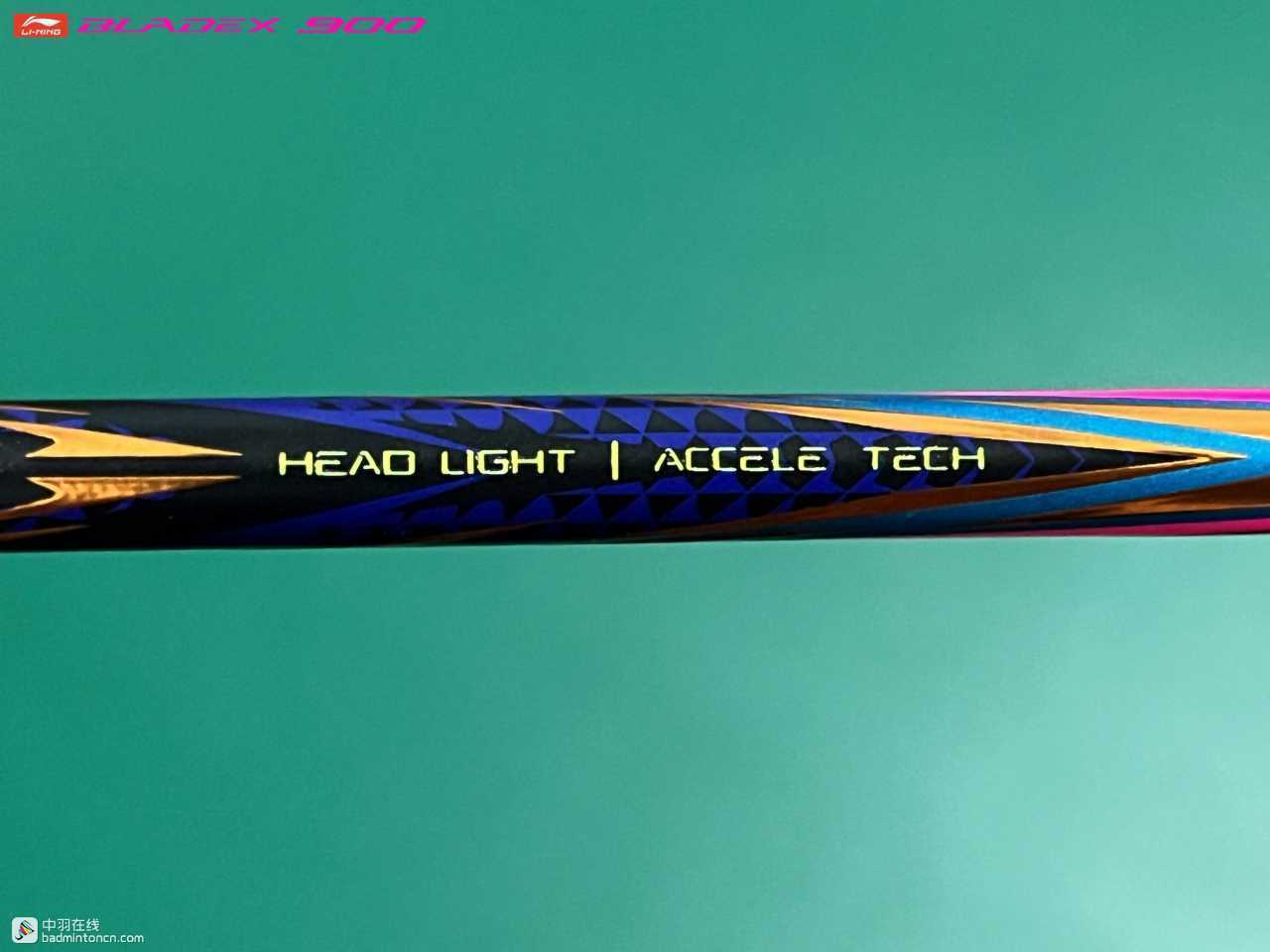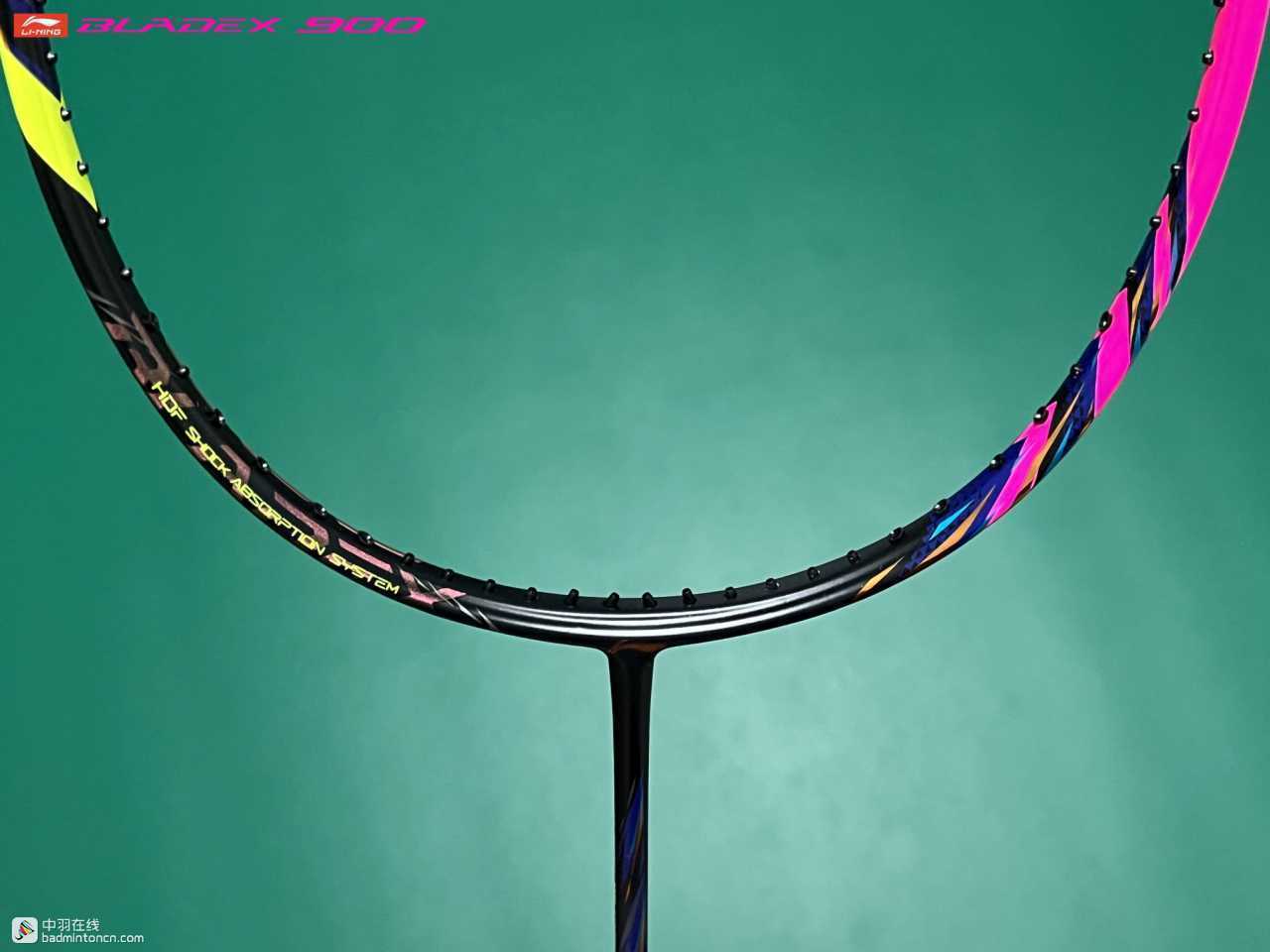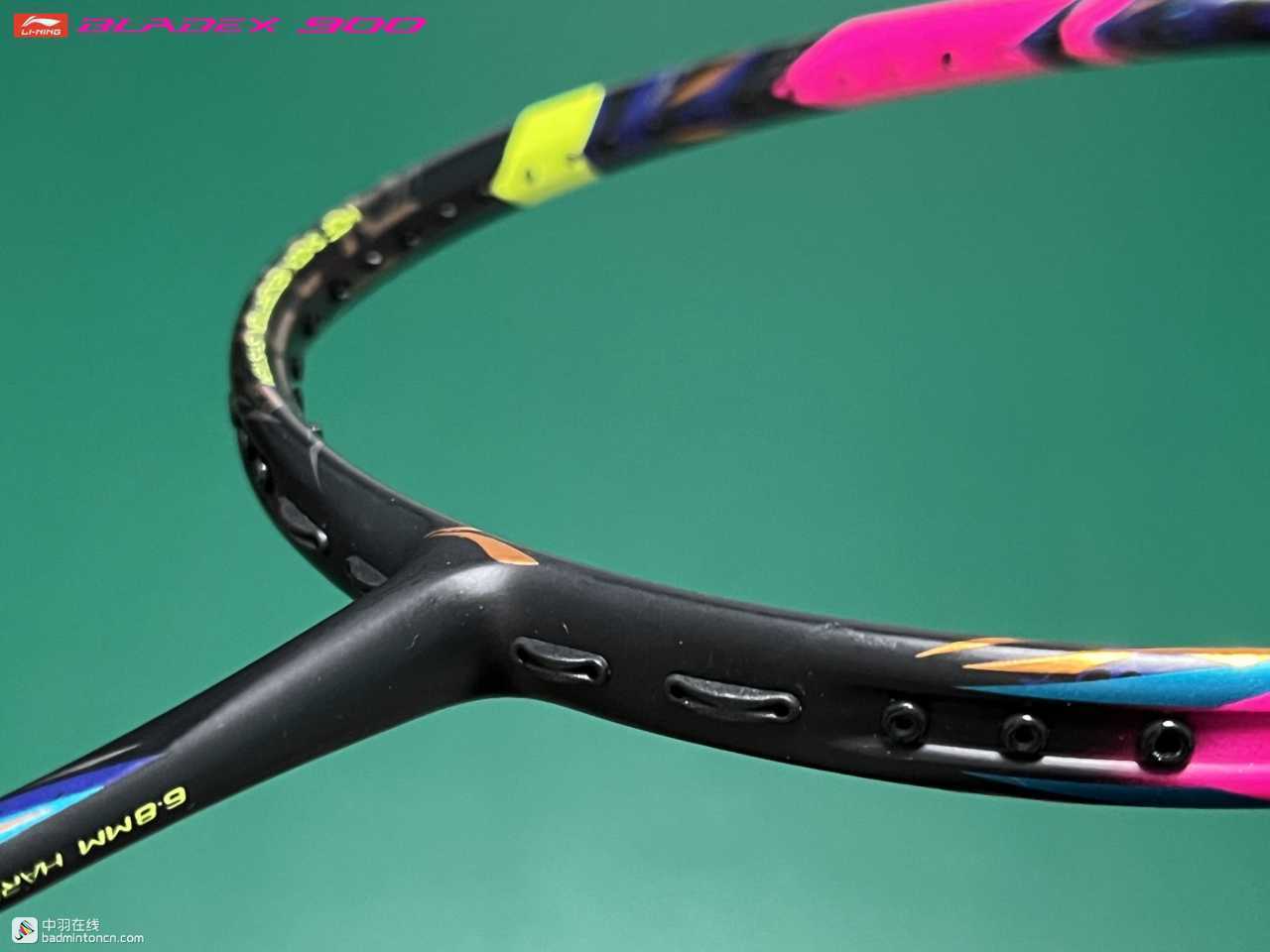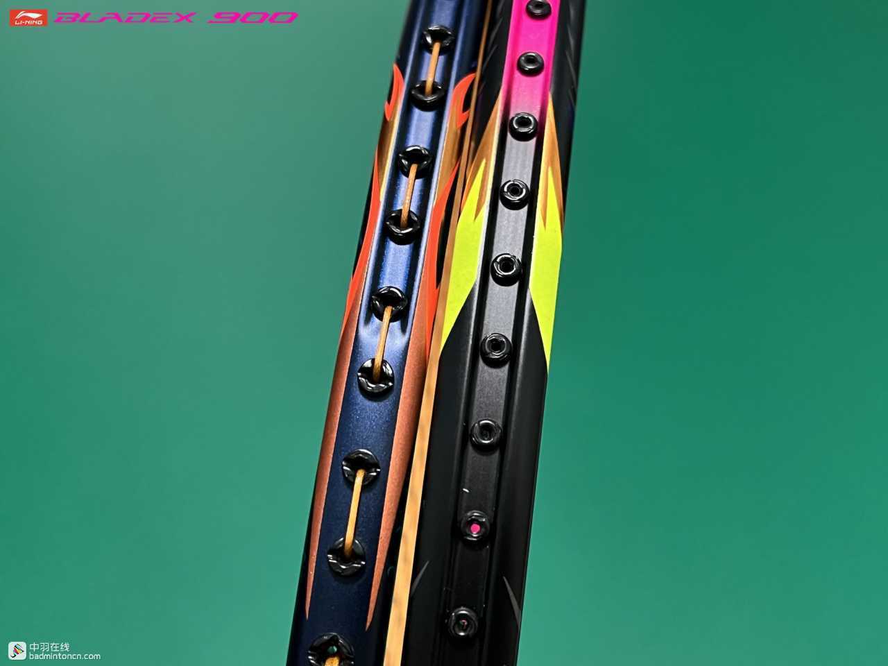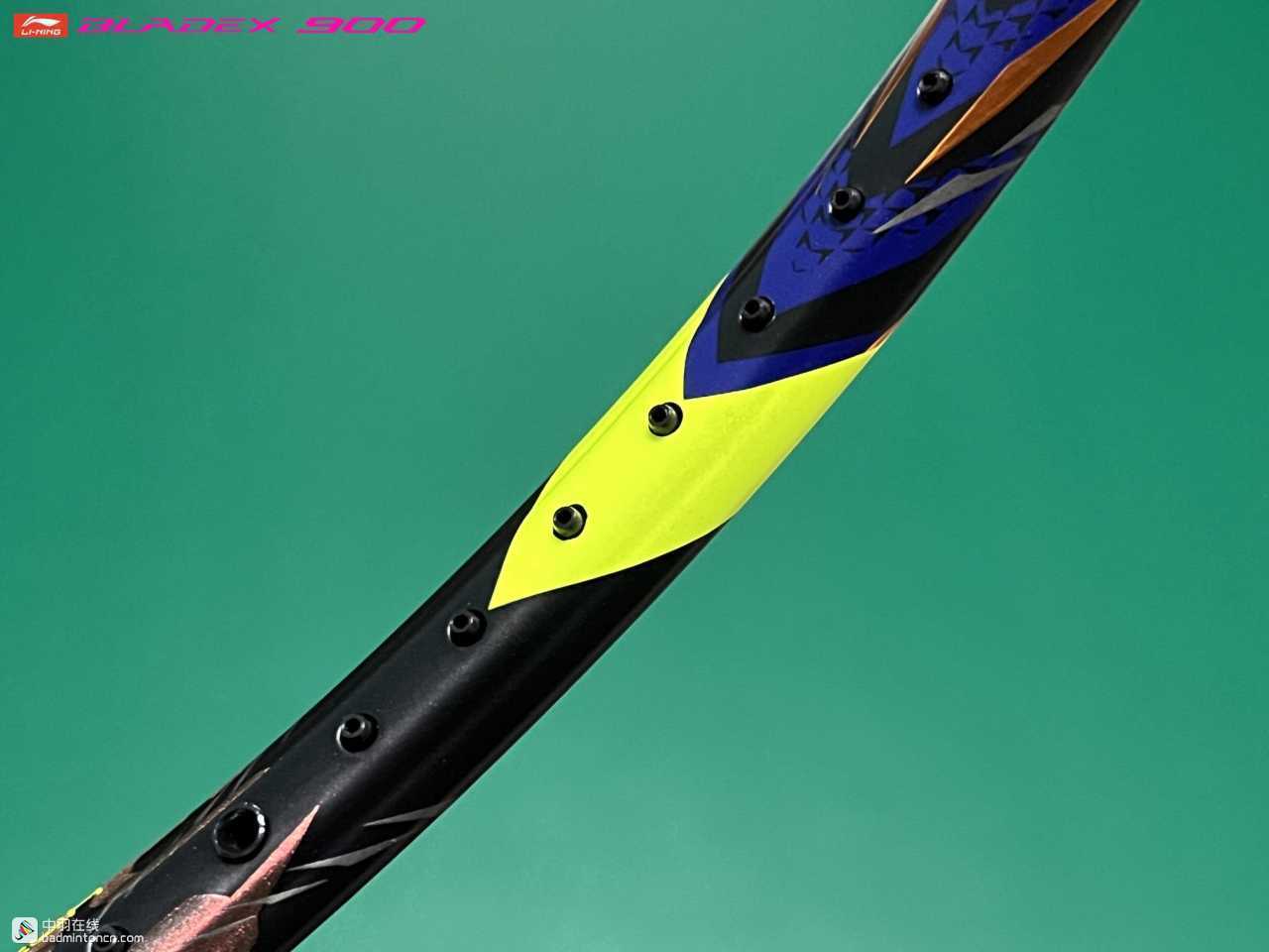 此外在拍框一侧大约4点至5点(7点至8点)的位置,古铜色的字样在两面分别标出了锋影系列名称“BLADEX”和“900”,彰显球拍的身份。