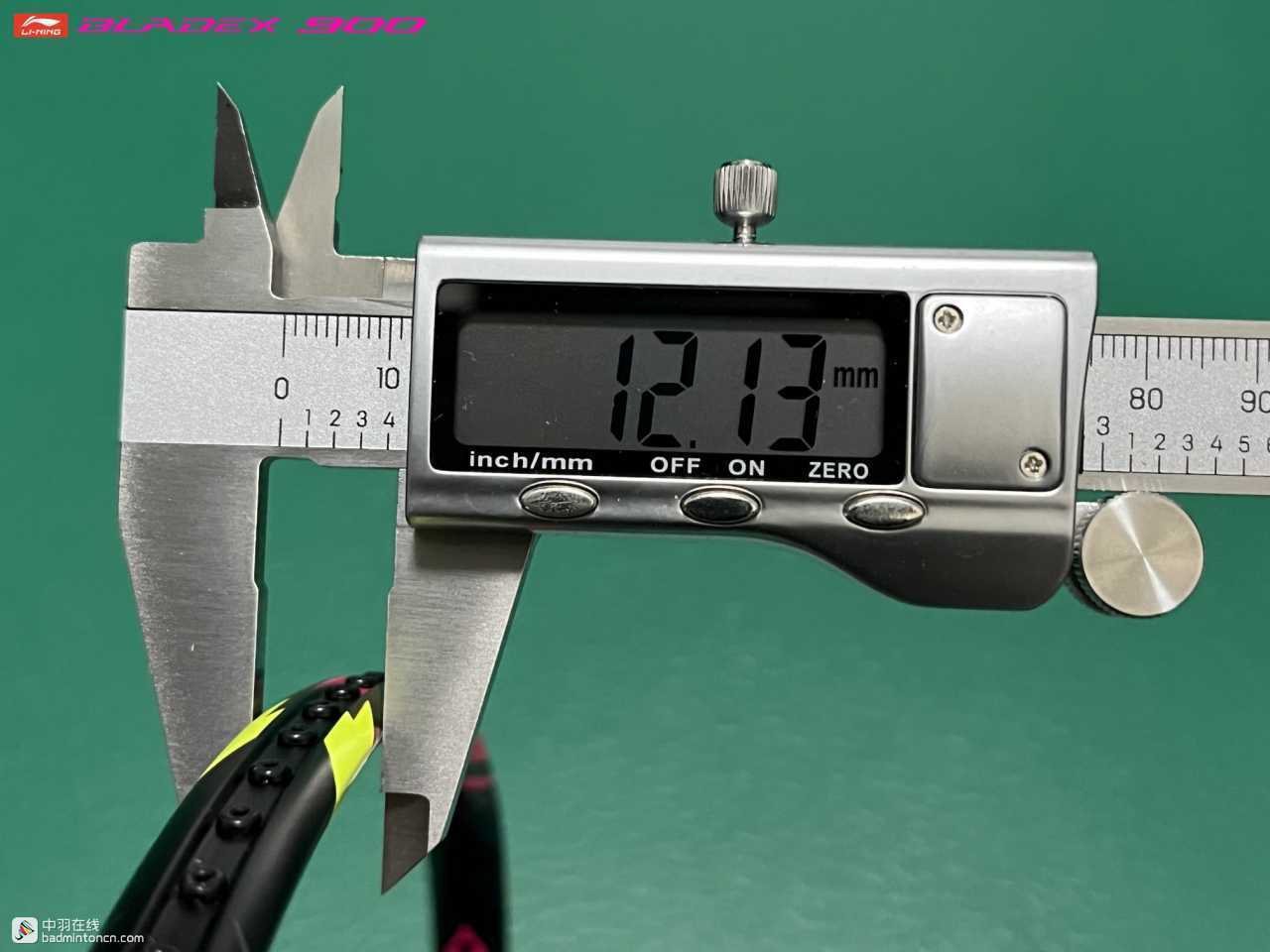 实测下,锋影900 NEW的拍身总长约为674mm,其中,拍框长度约248mm,中杆(锥盖顶部至T头两侧最下方线孔处)长度约212mm,手柄(底盖至锥盖顶部)则约为214mm。