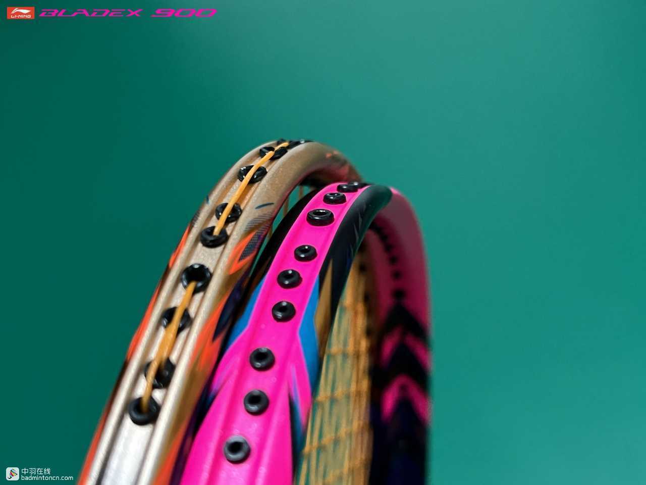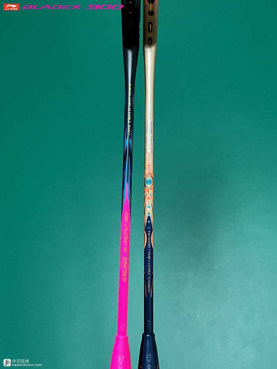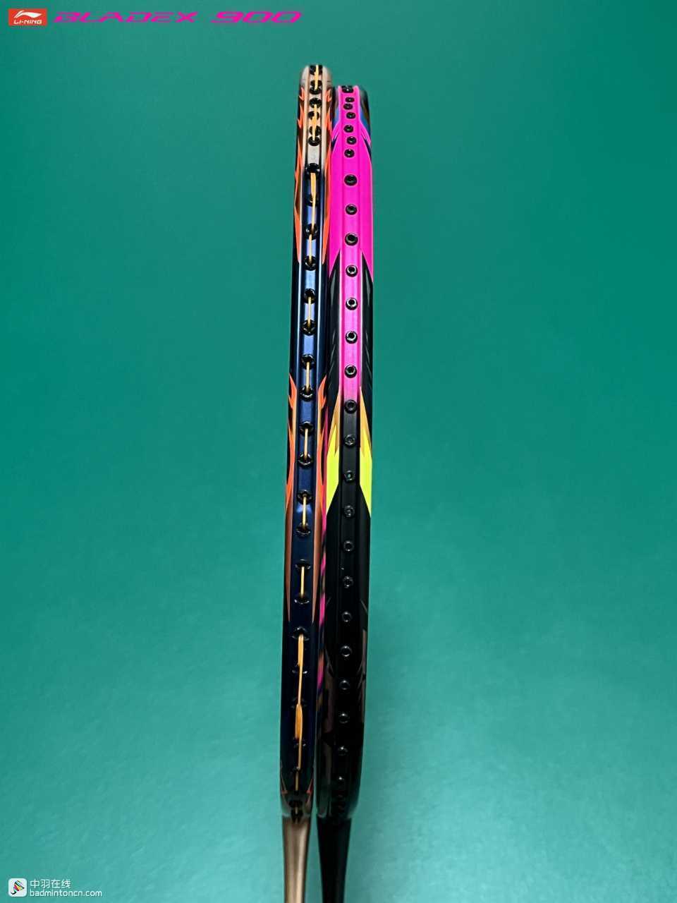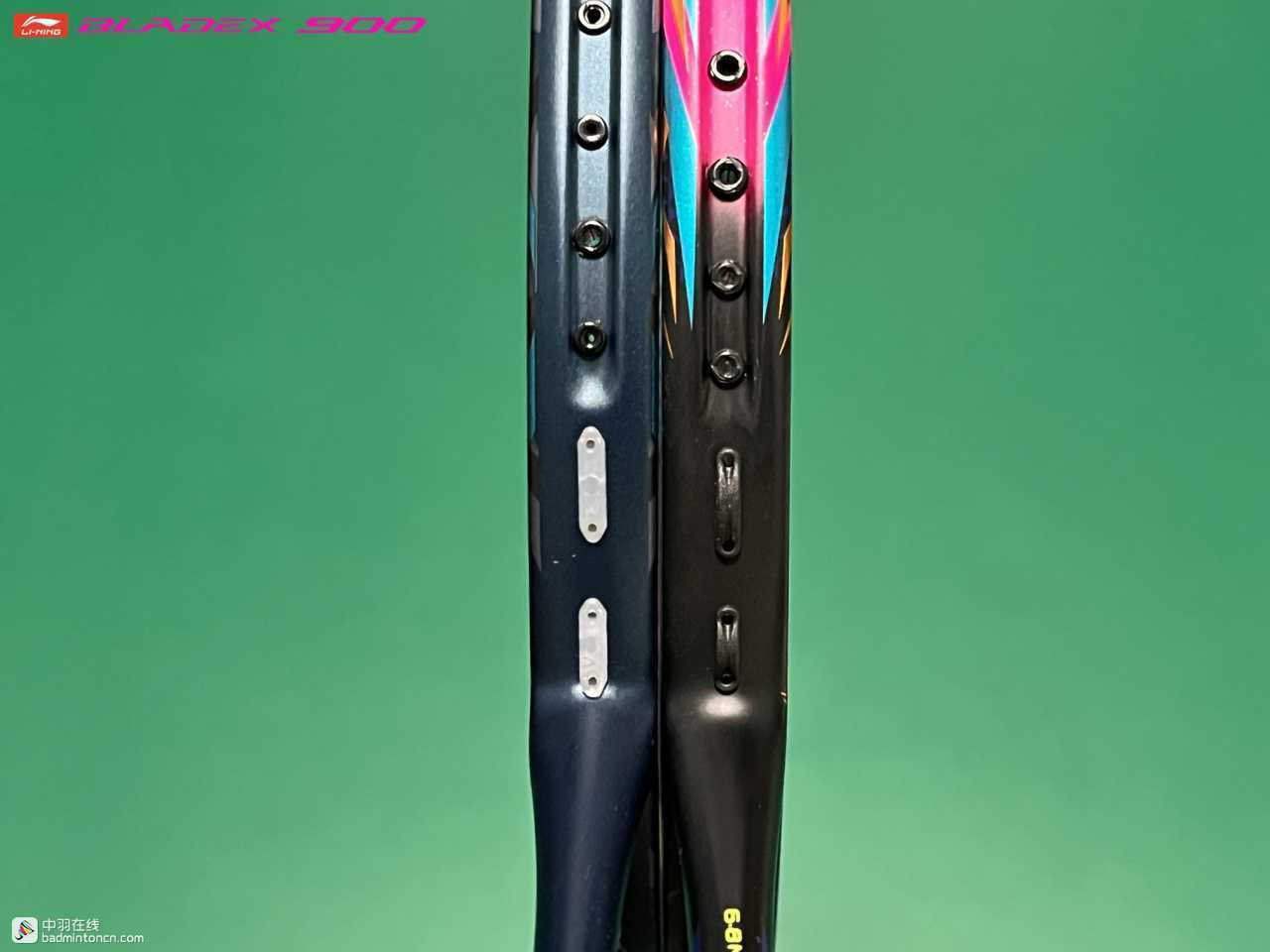 比较拍框各部分的侧面宽度,锋影900 NEW都要比锋影900日MAX更宽,但与此同时厚度都要更薄,因而能够降低风阻、获得更快的挥速。