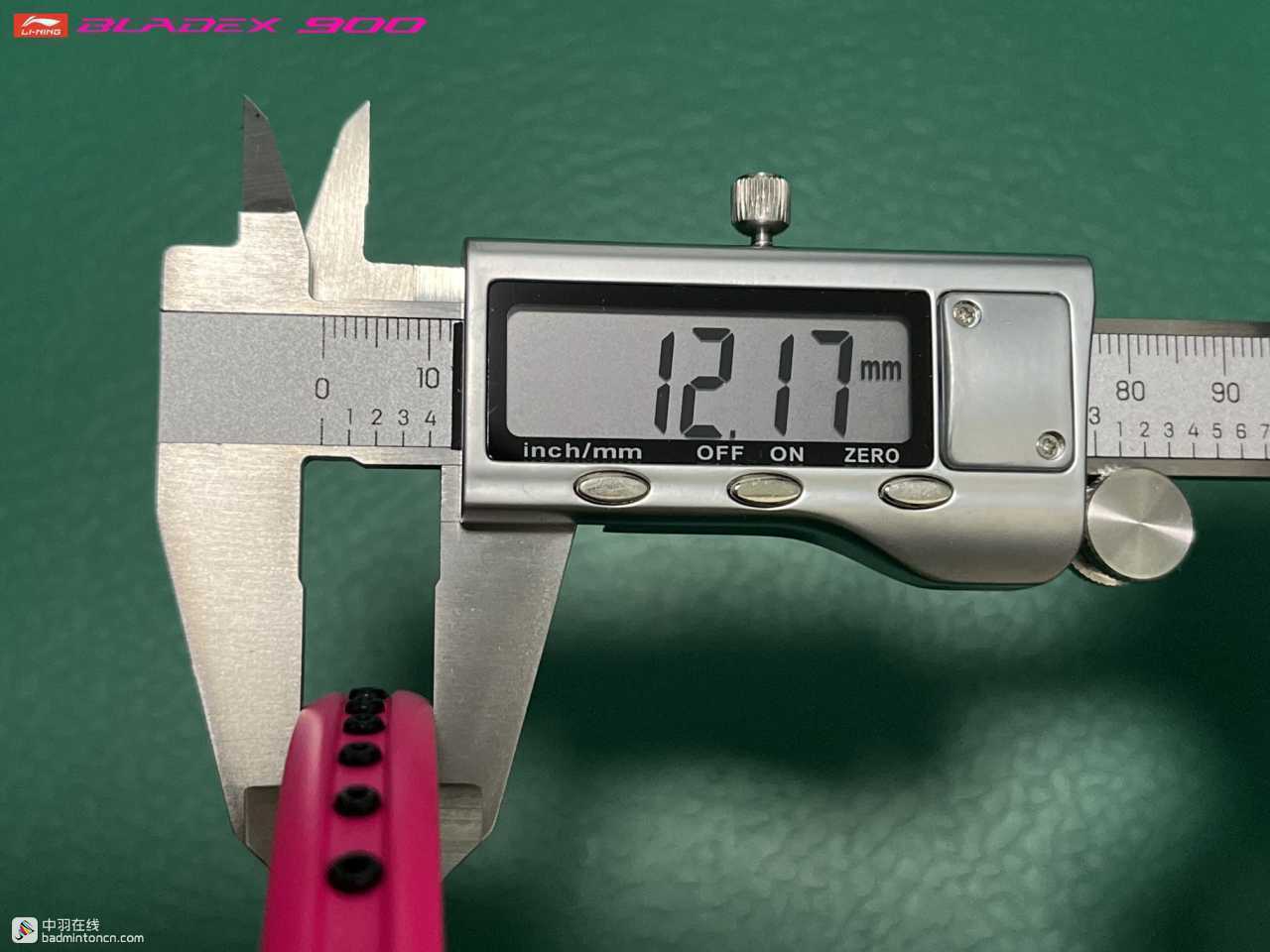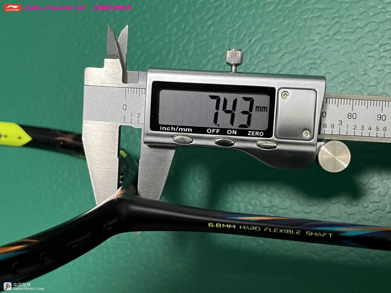 经过实测,锋影900 NEW拍框底部(靠近T头处)宽度约为12.71mm,厚度约为7.43mm。