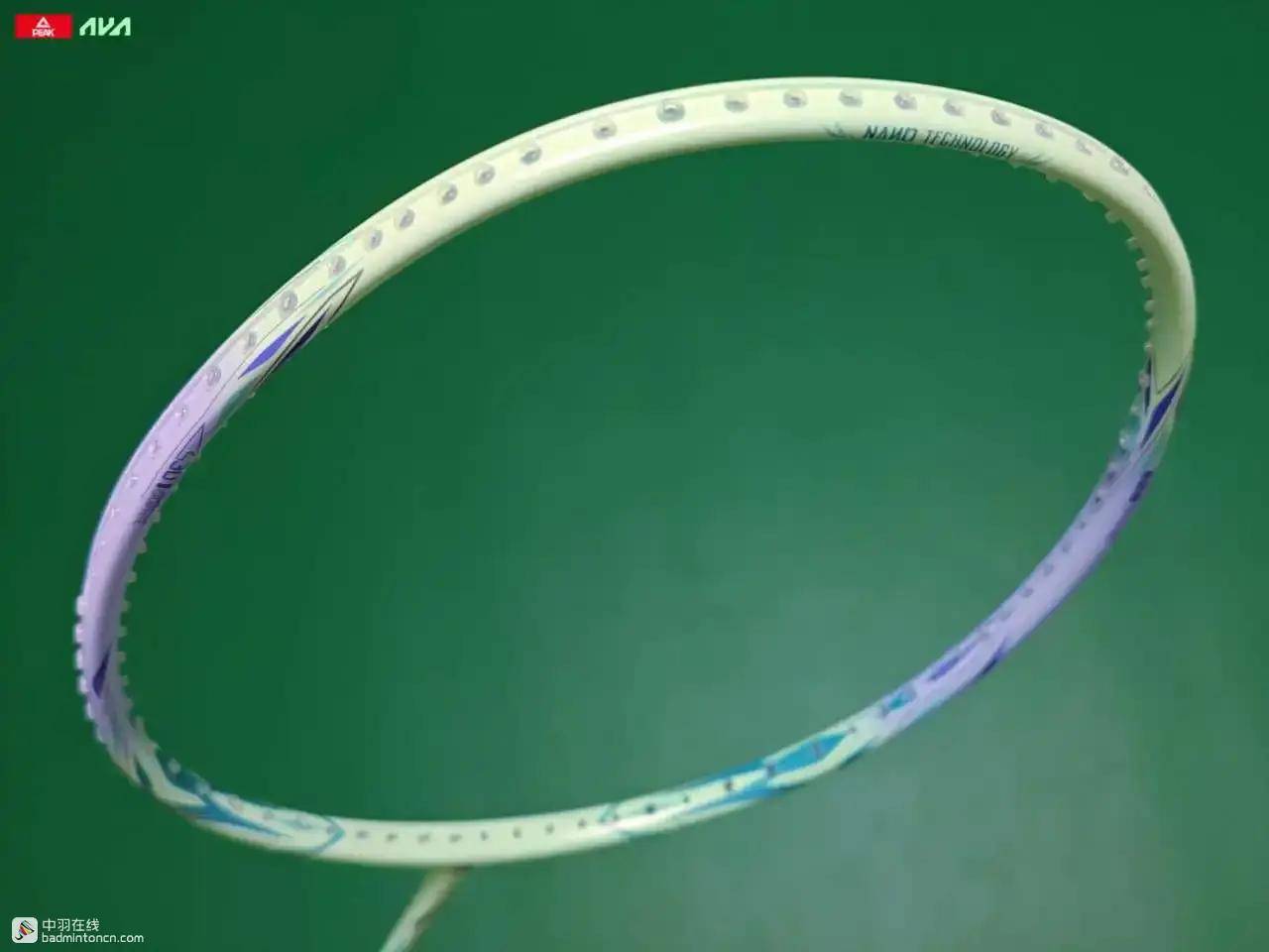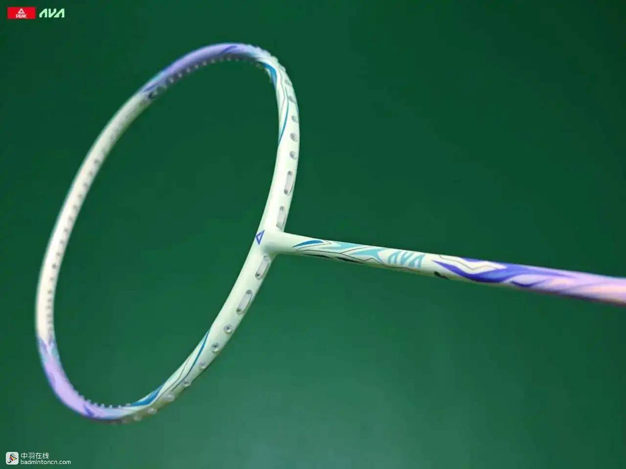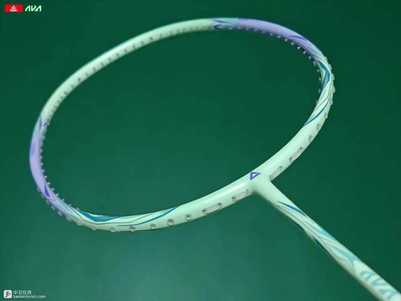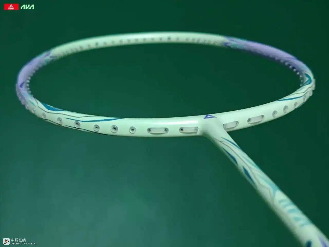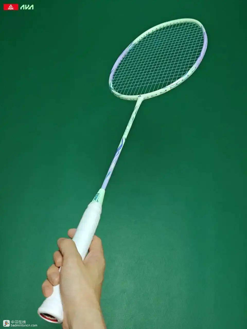十年前,一部名为《机械姬》的电影以科幻与现实结合的巧妙手法讲述了人工智能机器人“AVA”的故事,电影中对自由的解读以及对未来的思考引发了人们的无限遐想。十年后,当时间来到2024,被称为“Z世代”的新时代人群已经逐渐成为时代舞台的主角。Z世代们对于自由、对于未来有着属于自己的独特诠释和追求,不论是在生活、工作,亦或是自己所热爱的领域中。在羽球人的大群体中,也有这样的“Z世代”,他们满怀朝气与热情,走进羽毛球的世界。 本文要介绍的球拍,正是以《机械姬》电影以及Z世代为灵感设计的,它还有着与电影主角一样的名字,它就是匹克所推出的——机械姬AVA。 机械姬AVA是匹克“EX MACHINA”机械姬系列中的一款面向女性初学者的入门级羽毛球拍,共有蓝白、乐园粉/淡黄、粉蓝和紫绿四款配色可供选择,清新的外观、5U的轻量化设计,旨在成为更多包括女性在内的初学者的入门伙伴。 那么这款机械姬AVA究竟是一支怎样的球拍?它能够在一众同级别的球拍中脱颖而出吗?本文就来一探究竟。 外观赏析 笔者入手的这支机械姬AVA为紫绿配色,拍身以清新宜人的嫩绿和淡紫色为基调,如同春风洋溢中漫山遍野的新绿一般尽显勃勃生机,又夹杂着沁人心脾的淡雅芬芳,第一眼就能让人感受到扑面而来的青春气息。此外再加入青绿色与紫色的修饰图案,与主色调同色系的颜色点缀既不会让整体外观显得杂乱,又营造出更丰富、有层次感的视觉效果。 机械姬AVA的拍框采用传统的对称式涂装设计,三通附近以及拍框顶部为浅绿色,而两侧2点和4点、8点和10点之间的部分则采用淡紫色,绿色和紫色之间通过渐变的方式自然地融合在一起,就如同拂过的春风,所到之处既可嫩绿丛生,又可芬芳馥郁。 拍框上的修饰图案以青绿色和深紫色为主,大都集中在浅绿和淡紫色的交界处,以优化和丰富两种色彩渐变带来的视觉效果,形状多采用叶片或刀片状,给人一种无拘无束的动感。 此外,由银色的镭射贴纸组成的线条穿插于青绿和紫色的图案之中,在清新活力中增添了几分科技感,这也呼应了球拍系列的名称“机械姬”。 机械姬AVA中杆采用两面相同的设计,上半部分延续了三通的浅绿色,并采用两种深浅的青绿色图案作为装饰,下半部分则为淡紫色,中间同样采用渐变的方式过渡,同时辅以深紫色的点缀图案。 球拍名称“AVA”印于中杆的浅绿色部分上,采用了一种类似符号的特殊字体,一展蕴藏科技的神秘感。字母的两侧分别是青绿色和紫色的图案,仿佛连结了现在与未来。 在中杆上的图案之间,和拍框上一样也均有银色的线条穿过,此外,在中杆的一侧还悬浮着一个由三个绿色正六边形簇拥着银色镭射贴纸所组成的符号图案,可谓点睛之笔,在整体小清新的色彩风格中,透出一种来自未来的机械和科技感。 机械姬AVA的锥盖也采用了主色调浅绿色,两面有深绿色的匹克品牌名称以及对称分布的修饰图案。 红边、黑底、金色LOGO的底盖显得质感十足。 为了顺应球拍整体偏淡、偏嫩而清新的色调风格,机械姬AVA所有的护线管均是透明的。 自由随风、无拘无束!活力与青春,是机械姬AVA在涂装方面所要展现出来的主题和设计语言;自由无拘,是AVA所要传达给崇尚并热爱运动的人们的精神和追求;而这些关键词,也都与羽毛球运动十分契合。 参数浅析 机械姬AVA是一款主要面向女生使用者的球拍,基于该设计初衷,它采用了5U的轻量化设计,轻巧手感迎合了大部分女生初学者的需求。 中杆上同样对球拍的类型属性做了补充标示,“SUPER LIGHT WEIGHT”和“SUPER HEAD HEAVY BALANCE · MEDIAL SHAFT”分别表示超轻的重量以及偏头重的平衡点配置和硬度适中的中杆。 此外,机械姬AVA还在锥盖上标注了平衡点的参考数值,为305±2mm。 而经过实测,机械姬AVA在空拍带底胶时重约77.28g,平衡点约为296mm。 而空拍去底胶后则重约70.69g,平衡点约为315mm。 上线(李宁L67线,26磅)和手胶(缓震膜+欧击DJ102手胶)后,重约82.00g,平衡点约301mm。 机械姬AVA的拍身总长约为675mm,其中,拍框长度约253mm,中杆(锥盖顶部至T头两侧最下方线孔处)长度约217mm,手柄(底盖至锥盖顶部)则约为205mm。 机械姬AVA采用了典型的大拍框设计,穿线模式为76孔,全拍均采用了兼顾稳定与挥速的流体盒式框。 拍框底部(靠近T头处)宽度实测约为10.39mm,厚度约为7.63mm。 拍框两侧(3点、9点钟方向)宽度则约为10.24mm,厚度约为6.65mm。 拍框顶部宽度约为9.95mm,厚度约为6.32mm。 由此可见,机械姬AVA的拍框不论是厚度还是宽度都采用了由下向上变薄、变窄的设计。另外,在拍框外侧,机械姬AVA采用的是半线槽,线槽位于拍框上半部分,起始位置大概在3点和9点位置。这一系列的设计均起到了减小拍框上半部分迎风面积、提升挥速的效果。 机械姬AVA采用7.0mm中杆,实际测量得中杆外径约为7.12mm(测量点位于中杆中点处)。 机械姬AVA的拍身采用了30T、T700碳素纤维,并加入“NANO TECHNOLOGY”纳米碳素和“HDTMELT TECHNOLOGY”,兼具韧性和耐用性的同时,高刚性的材料使得机械姬AVA具有出色的拍身强度,因此其建议穿线磅数也标到了最高32磅。 机械姬AVA采用平口低风阻锥盖搭配木质手柄的经典配置,同时为女生球友考虑,手柄粗细采用了较细的G6规格。 使用体验 机械姬AVA作为一支5U重量的球拍,整体非常轻盈,而且球拍各部分的配重比较均衡,静态拿在手中时几乎没有丝毫的头重感。 挥动