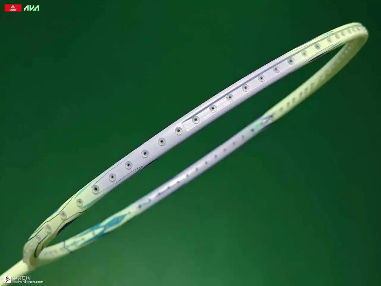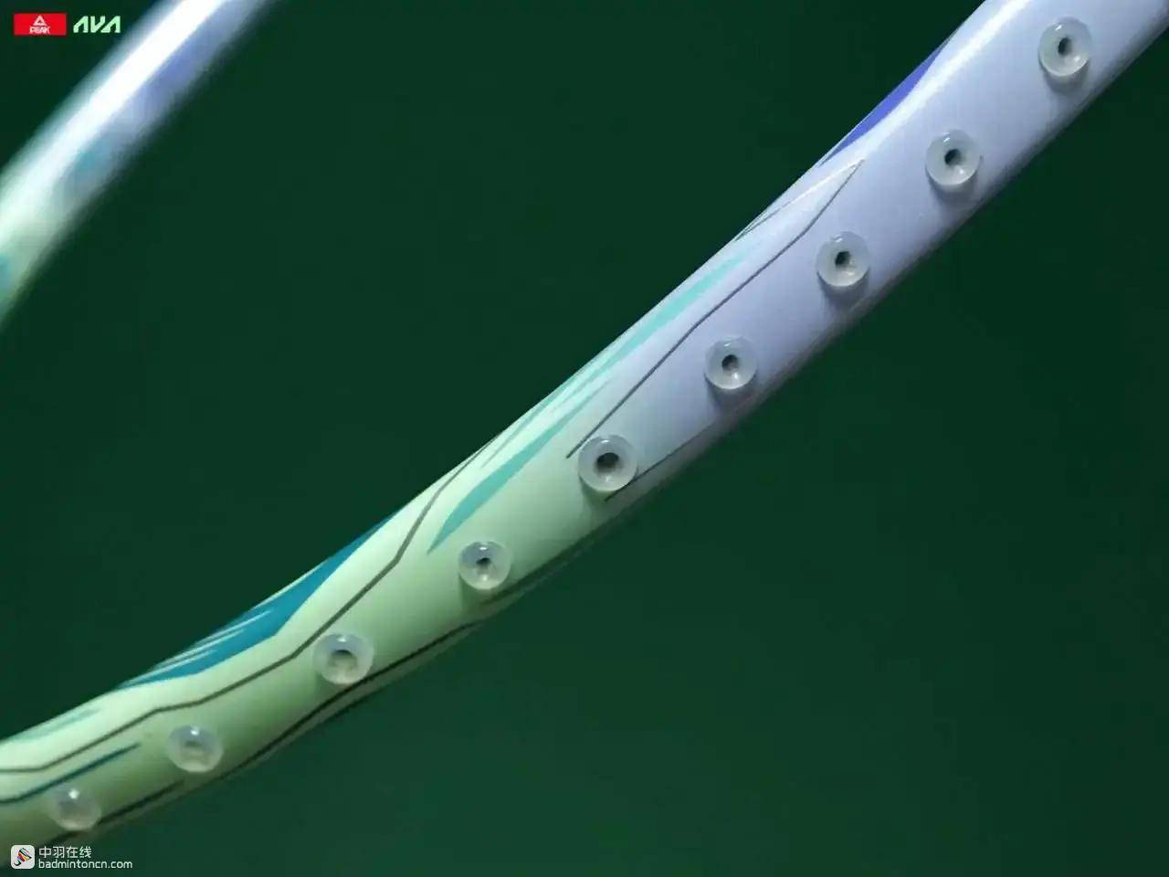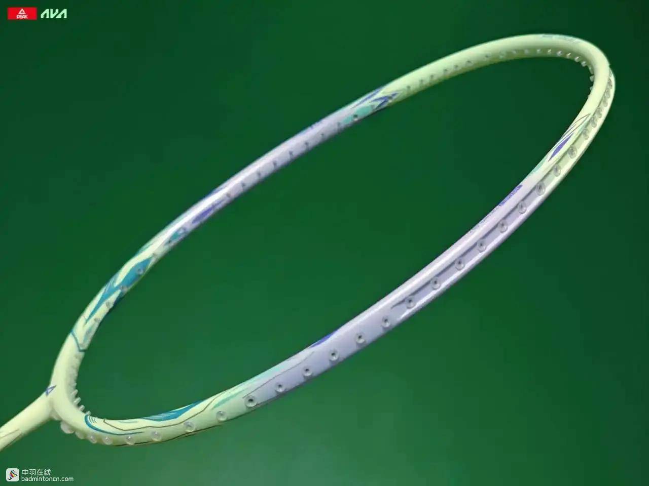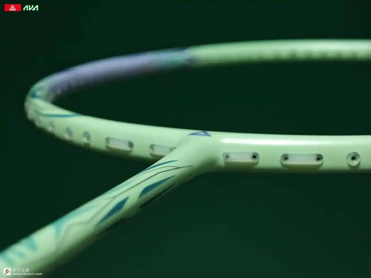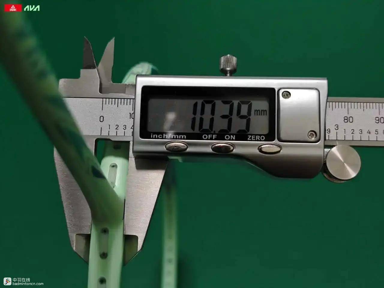 十年前,一部名为《机械姬》的电影以科幻与现实结合的巧妙手法讲述了人工智能机器人“AVA”的故事,电影中对自由的解读以及对未来的思考引发了人们的无限遐想。十年后,当时间来到2024,被称为“Z世代”的新时代人群已经逐渐成为时代舞台的主角。Z世代们对于自由、对于未来有着属于自己的独特诠释和追求,不论是在生活、工作,亦或是自己所热爱的领域中。在羽球人的大群体中,也有这样的“Z世代”,他们满怀朝气与热情,走进羽毛球的世界。 本文要介绍的球拍,正是以《机械姬》电影以及Z世代为灵感设计的,它还有着与电影主角一样的名字,它就是匹克所推出的——机械姬AVA。 机械姬AVA是匹克“EX MACHINA”机械姬系列中的一款面向女性初学者的入门级羽毛球拍,共有蓝白、乐园粉/淡黄、粉蓝和紫绿四款配色可供选择,清新的外观、5U的轻量化设计,旨在成为更多包括女性在内的初学者的入门伙伴。 那么这款机械姬AVA究竟是一支怎样的球拍?它能够在一众同级别的球拍中脱颖而出吗?本文就来一探究竟。 外观赏析 笔者入手的这支机械姬AVA为紫绿配色,拍身以清新宜人的嫩绿和淡紫色为基调,如同春风洋溢中漫山遍野的新绿一般尽显勃勃生机,又夹杂着沁人心脾的淡雅芬芳,第一眼就能让人感受到扑面而来的青春气息。此外再加入青绿色与紫色的修饰图案,与主色调同色系的颜色点缀既不会让整体外观显得杂乱,又营造出更丰富、有层次感的视觉效果。 机械姬AVA的拍框采用传统的对称式涂装设计,三通附近以及拍框顶部为浅绿色,而两侧2点和4点、8点和10点之间的部分则采用淡紫色,绿色和紫色之间通过渐变的方式自然地融合在一起,就如同拂过的春风,所到之处既可嫩绿丛生,又可芬芳馥郁。 拍框上的修饰图案以青绿色和深紫色为主,大都集中在浅绿和淡紫色的交界处,以优化和丰富两种色彩渐变带来的视觉效果,形状多采用叶片或刀片状,给人一种无拘无束的动感。 此外,由银色的镭射贴纸组成的线条穿插于青绿和紫色的图案之中,在清新活力中增添了几分科技感,这也呼应了球拍系列的名称“机械姬”。 机械姬AVA中杆采用两面相同的设计,上半部分延续了三通的浅绿色,并采用两种深浅的青绿色图案作为装饰,下半部分则为淡紫色,中间同样采用渐变的方式过渡,同时辅以深紫色的点缀图案。 球拍名称“AVA”印于中杆的浅绿色部分上,采用了一种类似符号的特殊字体,一展蕴藏科技的神秘感。字母的两侧分别是青绿色和紫色的图案,仿佛连结了现在与未来。 在中杆上的图案之间,和拍框上一样也均有银色的线条穿过,此外,在中杆的一侧还悬浮着一个由三个绿色正六边形簇拥着银色镭射贴纸所组成的符号图案,可谓点睛之笔,在整体小清新的色彩风格中,透出一种来自未来的机械和科技感。 机械姬AVA的锥盖也采用了主色调浅绿色,两面有深绿色的匹克品牌名称以及对称分布的修饰图案。 红边、黑底、金色LOGO的底盖显得质感十足。 为了顺应球拍整体偏淡、偏嫩而清新的色调风格,机械姬AVA所有的护线管均是透明的。 自由随风、无拘无束!活力与青春,是机械姬AVA在涂装方面所要展现出来的主题和设计语言;自由无拘,是AVA所要传达给崇尚并热爱运动的人们的精神和追求;而这些关键词,也都与羽毛球运动十分契合。 参数浅析 机械姬AVA是一款主要面向女生使用者的球拍,基于该设计初衷,它采用了5U的轻量化设计,轻巧手感迎合了大部分女生初学者的需求。 中杆上同样对球拍的类型属性做了补充标示,“SUPER LIGHT WEIGHT”和“SUPER HEAD HEAVY BALANCE · MEDIAL SHAFT”分别表示超轻的重量以及偏头重的平衡点配置和硬度适中的中杆。 此外,机械姬AVA还在锥盖上标注了平衡点的参考数值,为305±2mm。 而经过实测,机械姬AVA在空拍带底胶时重约77.28g,平衡点约为296mm。 而空拍去底胶后则重约70.69g,平衡点约为315mm。 上线(李宁L67线,26磅)和手胶(缓震膜+欧击DJ102手胶)后,重约82.00g,平衡点约301mm。 机械姬AVA的拍身总长约为675mm,其中,拍框长度约253mm,中杆(锥盖顶部至T头两侧最下方线孔处)长度约217mm,手柄(底盖至锥盖顶部)则约为205mm。 机械姬AVA采用了典型的大拍框设计,穿线模式为76孔,全拍均采用了兼顾稳定与挥速的流体盒式框。 拍框底部(靠近T头处)宽度实测约为10.39mm,厚度约为7.63mm。 拍框两侧(3点、9点钟方向)宽度则约为10.24mm,厚度约为6.65mm。 拍框顶部宽度约为9.95mm,厚度约为6.32mm。 由此可见,机械姬AVA的拍框不论是厚度还是宽度都采用了由下向上变薄、变窄的设计。另外,在拍框外侧,机械姬AVA采用的是半线槽,线槽位于拍框上半部分,起始位置大概在3点和9点位置。这一系列的设计均起到了减小拍框上半部分迎风面积、提升挥速的效果。 机械姬AVA采用7.0mm中杆,实际测量得中杆外径约为7.12mm(测量点位于中杆中点处)。 机械姬AVA的拍身采用了30T、T700碳素纤维,并加入“NANO TECHNOLOGY”纳米碳素和“HDTMELT TECHNOLOGY”,兼具韧性和耐用性的同时,高刚性的材料使得机械姬AVA具有出色的拍身强度,因此其建议穿线磅数也标到了最高32磅。 机械姬AVA采用平口低风阻锥盖搭配木质手柄的经典配置,同时为女生球友考虑,手柄粗细采用了较细的G6规格。 使用体验 机械姬AVA作为一支5U重量的球拍,整体非常轻盈,而且球拍各部分的配重比较均衡,静态拿在手中时几乎没有丝毫的头重感。 挥动
