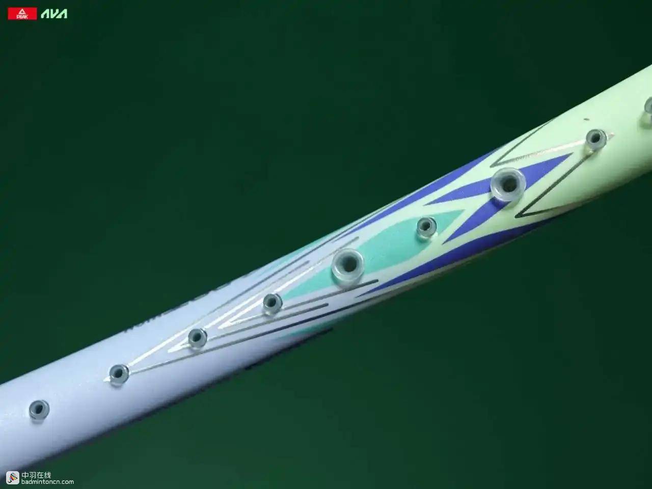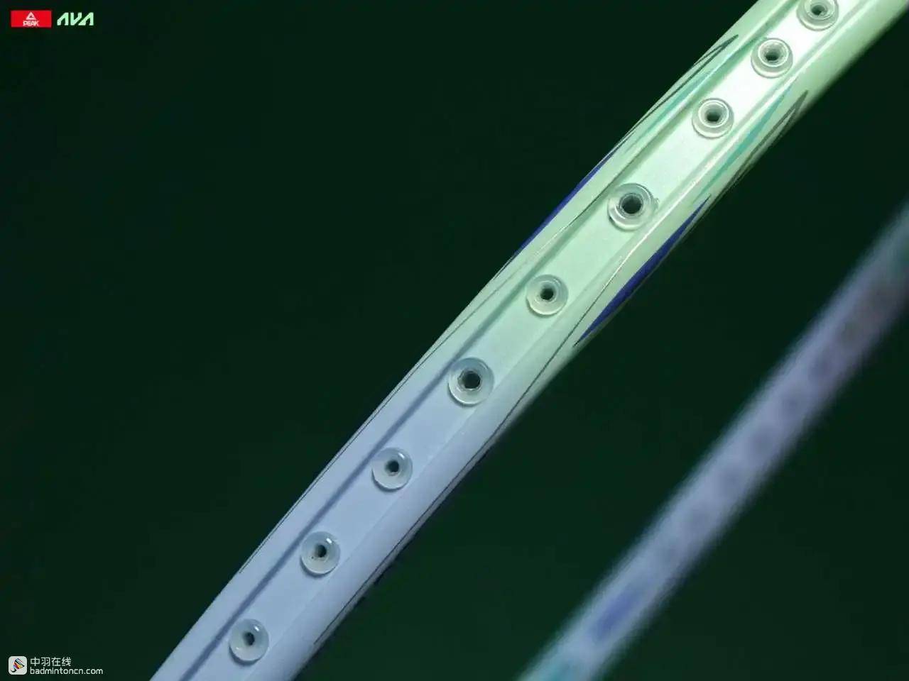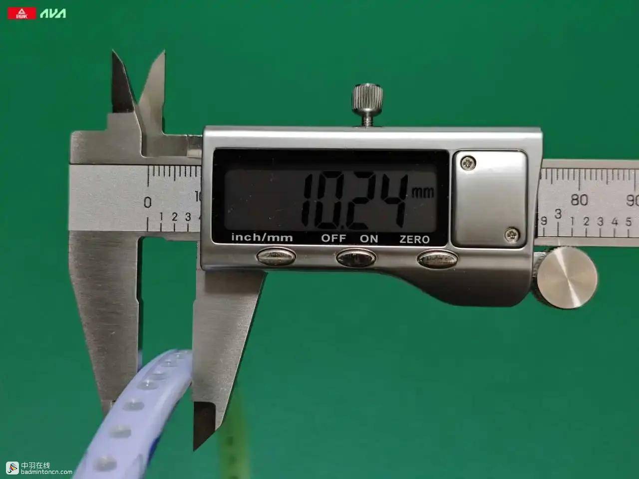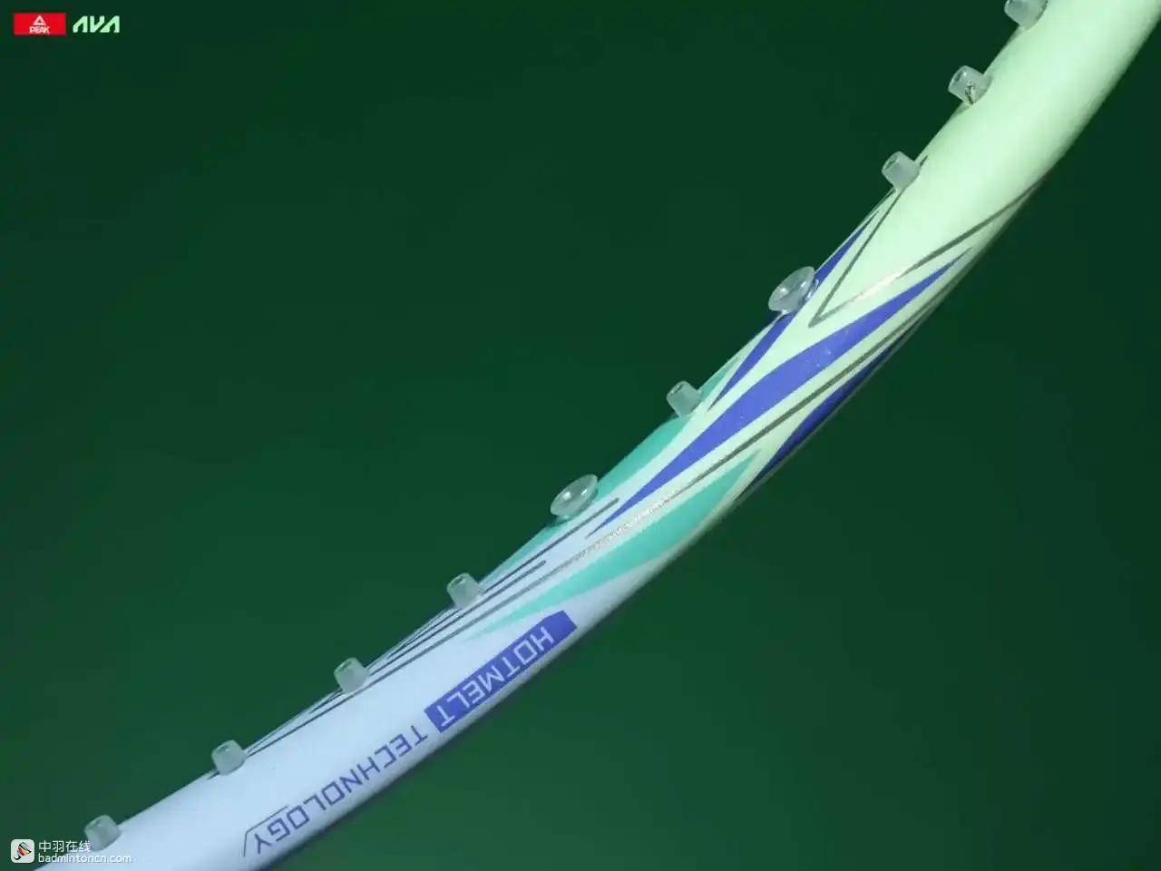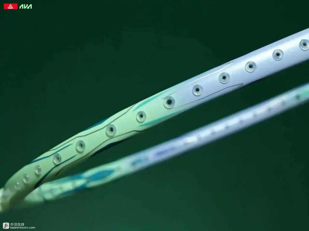 十年前,一部名为《机械姬》的电影以科幻与现实结合的巧妙手法讲述了人工智能机器人“AVA”的故事,电影中对自由的解读以及对未来的思考引发了人们的无限遐想。十年后,当时间来到2024,被称为“Z世代”的新时代人群已经逐渐成为时代舞台的主角。Z世代们对于自由、对于未来有着属于自己的独特诠释和追求,不论是在生活、工作,亦或是自己所热爱的领域中。在羽球人的大群体中,也有这样的“Z世代”,他们满怀朝气与热情,走进羽毛球的世界。 本文要介绍的球拍,正是以《机械姬》电影以及Z世代为灵感设计的,它还有着与电影主角一样的名字,它就是匹克所推出的——机械姬AVA。 机械姬AVA是匹克“EX MACHINA”机械姬系列中的一款面向女性初学者的入门级羽毛球拍,共有蓝白、乐园粉/淡黄、粉蓝和紫绿四款配色可供选择,清新的外观、5U的轻量化设计,旨在成为更多包括女性在内的初学者的入门伙伴。 那么这款机械姬AVA究竟是一支怎样的球拍?它能够在一众同级别的球拍中脱颖而出吗?本文就来一探究竟。 外观赏析 笔者入手的这支机械姬AVA为紫绿配色,拍身以清新宜人的嫩绿和淡紫色为基调,如同春风洋溢中漫山遍野的新绿一般尽显勃勃生机,又夹杂着沁人心脾的淡雅芬芳,第一眼就能让人感受到扑面而来的青春气息。此外再加入青绿色与紫色的修饰图案,与主色调同色系的颜色点缀既不会让整体外观显得杂乱,又营造出更丰富、有层次感的视觉效果。 机械姬AVA的拍框采用传统的对称式涂装设计,三通附近以及拍框顶部为浅绿色,而两侧2点和4点、8点和10点之间的部分则采用淡紫色,绿色和紫色之间通过渐变的方式自然地融合在一起,就如同拂过的春风,所到之处既可嫩绿丛生,又可芬芳馥郁。 拍框上的修饰图案以青绿色和深紫色为主,大都集中在浅绿和淡紫色的交界处,以优化和丰富两种色彩渐变带来的视觉效果,形状多采用叶片或刀片状,给人一种无拘无束的动感。 此外,由银色的镭射贴纸组成的线条穿插于青绿和紫色的图案之中,在清新活力中增添了几分科技感,这也呼应了球拍系列的名称“机械姬”。 机械姬AVA中杆采用两面相同的设计,上半部分延续了三通的浅绿色,并采用两种深浅的青绿色图案作为装饰,下半部分则为淡紫色,中间同样采用渐变的方式过渡,同时辅以深紫色的点缀图案。 球拍名称“AVA”印于中杆的浅绿色部分上,采用了一种类似符号的特殊字体,一展蕴藏科技的神秘感。字母的两侧分别是青绿色和紫色的图案,仿佛连结了现在与未来。 在中杆上的图案之间,和拍框上一样也均有银色的线条穿过,此外,在中杆的一侧还悬浮着一个由三个绿色正六边形簇拥着银色镭射贴纸所组成的符号图案,可谓点睛之笔,在整体小清新的色彩风格中,透出一种来自未来的机械和科技感。 机械姬AVA的锥盖也采用了主色调浅绿色,两面有深绿色的匹克品牌名称以及对称分布的修饰图案。 红边、黑底、金色LOGO的底盖显得质感十足。 为了顺应球拍整体偏淡、偏嫩而清新的色调风格,机械姬AVA所有的护线管均是透明的。 自由随风、无拘无束!活力与青春,是机械姬AVA在涂装方面所要展现出来的主题和设计语言;自由无拘,是AVA所要传达给崇尚并热爱运动的人们的精神和追求;而这些关键词,也都与羽毛球运动十分契合。 参数浅析 机械姬AVA是一款主要面向女生使用者的球拍,基于该设计初衷,它采用了5U的轻量化设计,轻巧手感迎合了大部分女生初学者的需求。 中杆上同样对球拍的类型属性做了补充标示,“SUPER LIGHT WEIGHT”和“SUPER HEAD HEAVY BALANCE · MEDIAL SHAFT”分别表示超轻的重量以及偏头重的平衡点配置和硬度适中的中杆。 此外,机械姬AVA还在锥盖上标注了平衡点的参考数值,为305±2mm。 而经过实测,机械姬AVA在空拍带底胶时重约77.28g,平衡点约为296mm。 而空拍去底胶后则重约70.69g,平衡点约为315mm。 上线(李宁L67线,26磅)和手胶(缓震膜+欧击DJ102手胶)后,重约82.00g,平衡点约301mm。 机械姬AVA的拍身总长约为675mm,其中,拍框长度约253mm,中杆(锥盖顶部至T头两侧最下方线孔处)长度约217mm,手柄(底盖至锥盖顶部)则约为205mm。 机械姬AVA采用了典型的大拍框设计,穿线模式为76孔,全拍均采用了兼顾稳定与挥速的流体盒式框。 拍框底部(靠近T头处)宽度实测约为10.39mm,厚度约为7.63mm。 拍框两侧(3点、9点钟方向)宽度则约为10.24mm,厚度约为6.65mm。 拍框顶部宽度约为9.95mm,厚度约为6.32mm。 由此可见,机械姬AVA的拍框不论是厚度还是宽度都采用了由下向上变薄、变窄的设计。另外,在拍框外侧,机械姬AVA采用的是半线槽,线槽位于拍框上半部分,起始位置大概在3点和9点位置。这一系列的设计均起到了减小拍框上半部分迎风面积、提升挥速的效果。 机械姬AVA采用7.0mm中杆,实际测量得中杆外径约为7.12mm(测量点位于中杆中点处)。 机械姬AVA的拍身采用了30T、T700碳素纤维,并加入“NANO TECHNOLOGY”纳米碳素和“HDTMELT TECHNOLOGY”,兼具韧性和耐用性的同时,高刚性的材料使得机械姬AVA具有出色的拍身强度,因此其建议穿线磅数也标到了最高32磅。 机械姬AVA采用平口低风阻锥盖搭配木质手柄的经典配置,同时为女生球友考虑,手柄粗细采用了较细的G6规格。 使用体验 机械姬AVA作为一支5U重量的球拍,整体非常轻盈,而且球拍各部分的配重比较均衡,静态拿在手中时几乎没有丝毫的头重感。 挥动