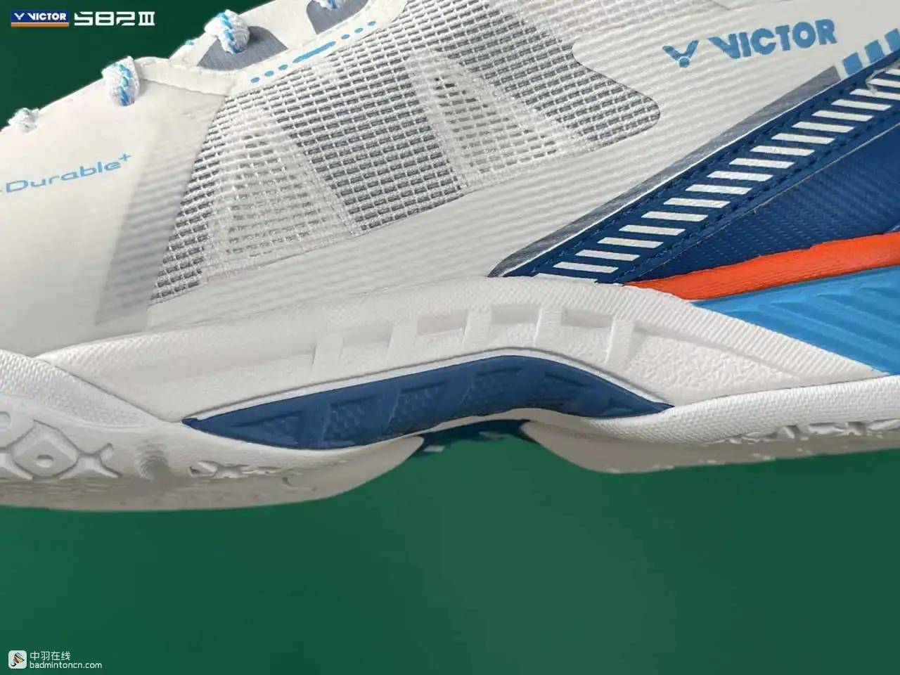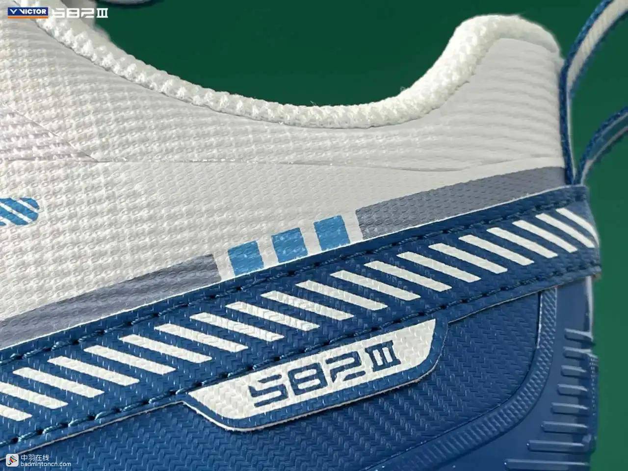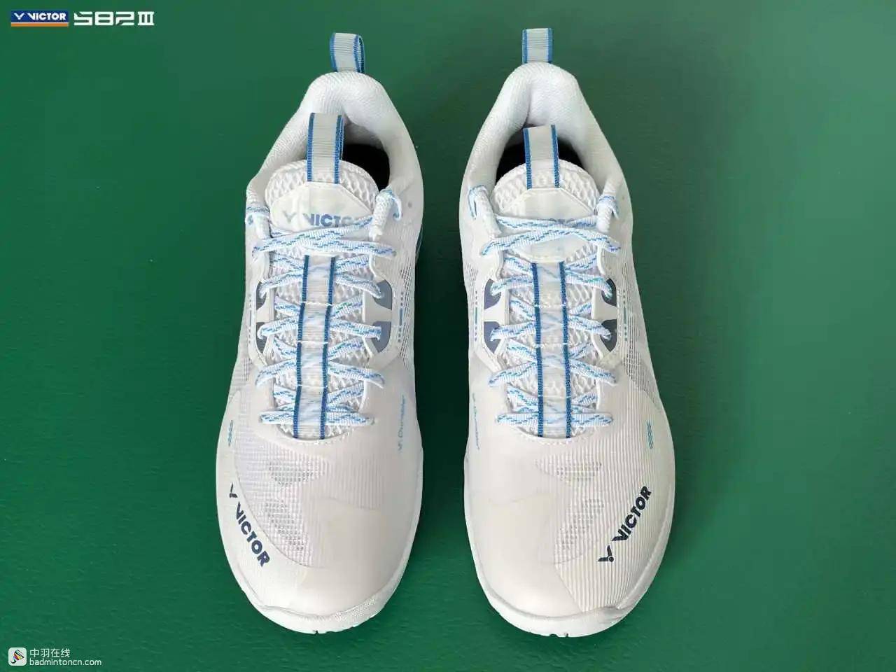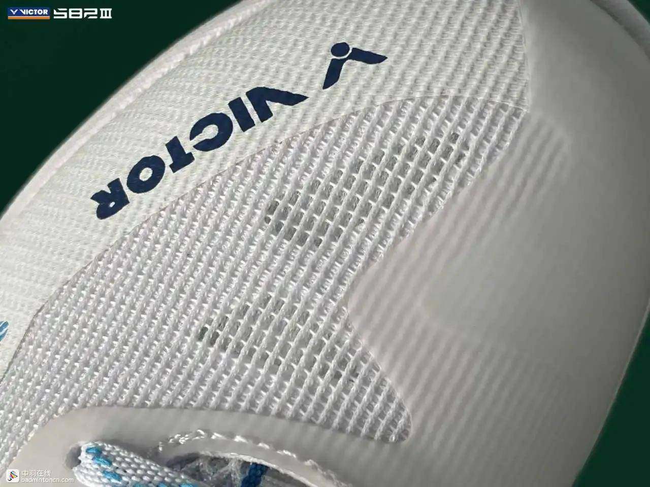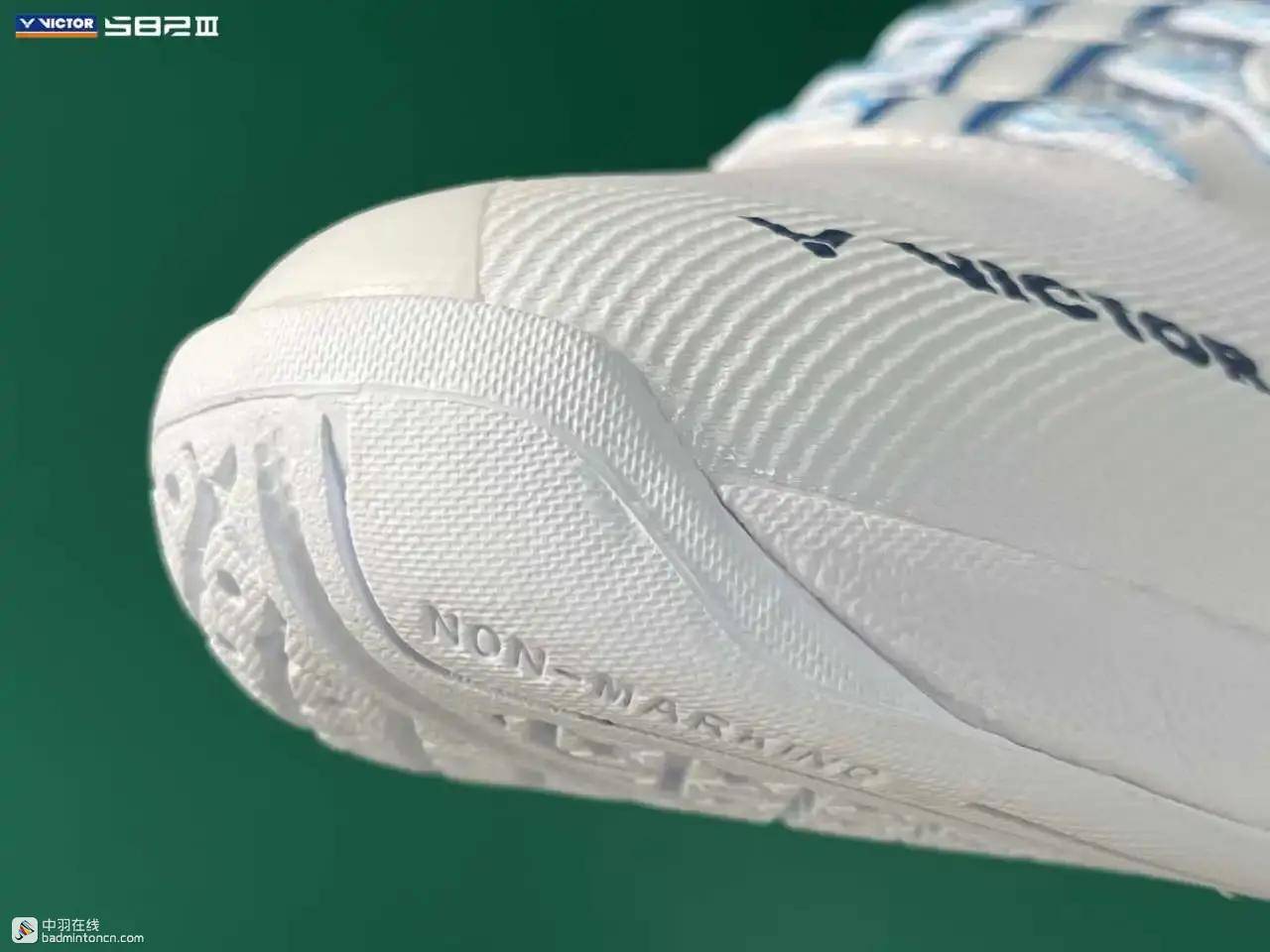 从大底到鞋面、鞋舌,S82 Ⅲ大面积采用白色,视觉一体感出色。前端外侧白色的PU革上,深蓝色的威克多LOGO在醒目的同时也显得低调朴实。