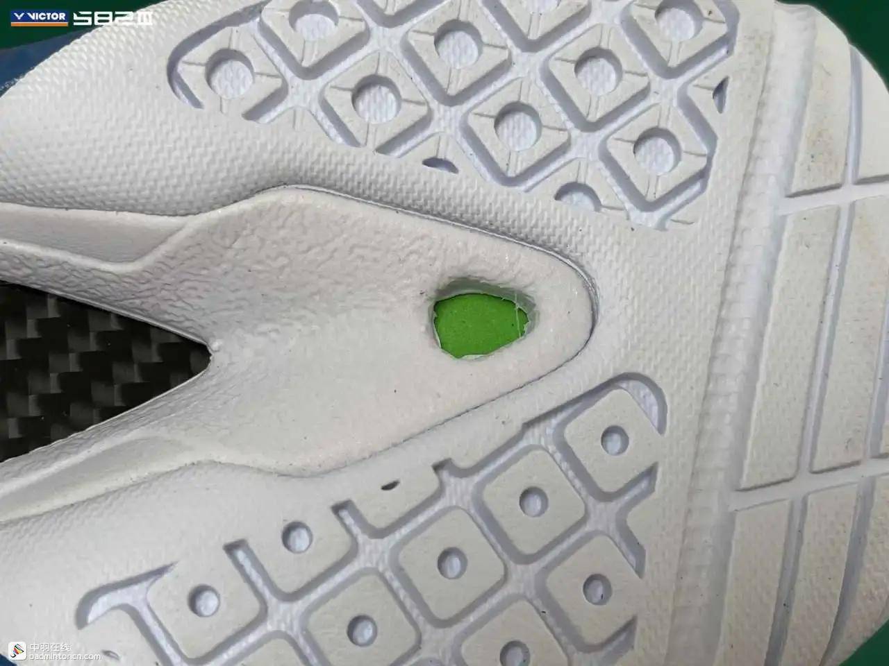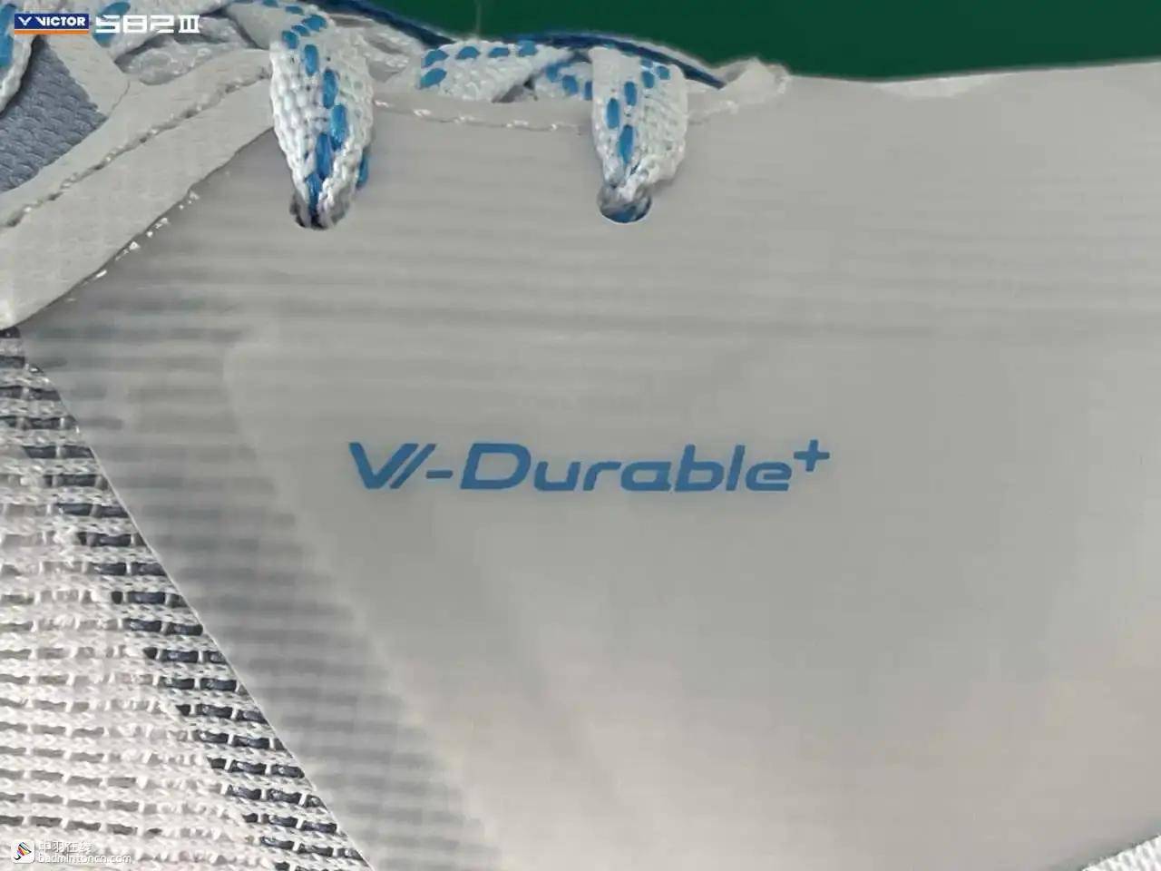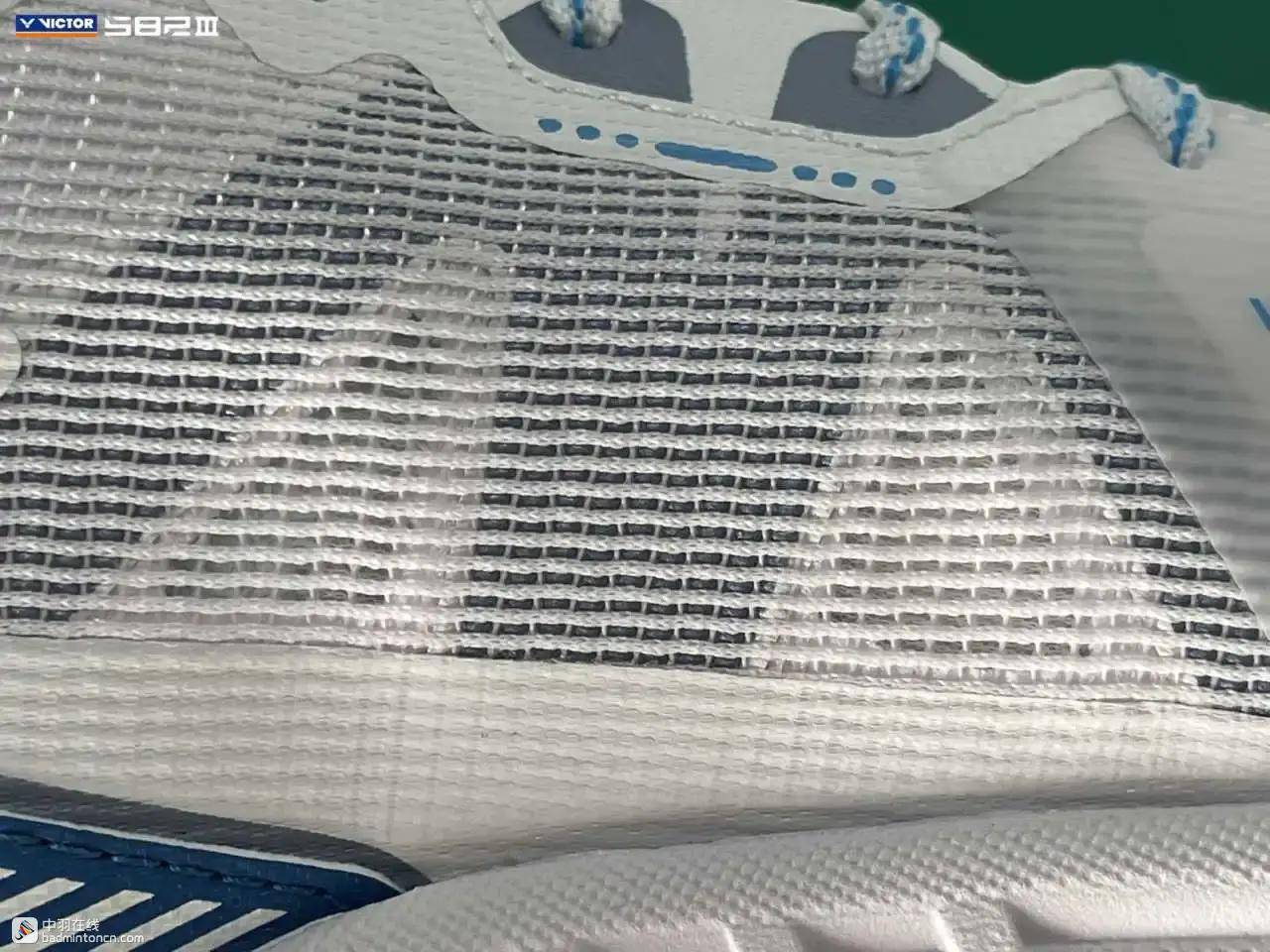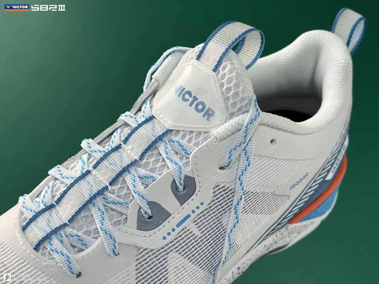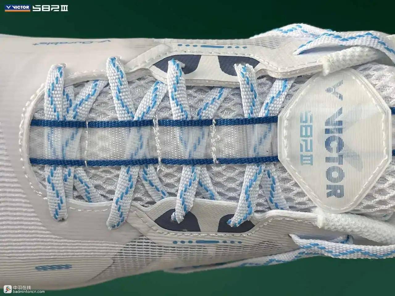从大底到鞋面、鞋舌,S82 Ⅲ大面积采用白色,视觉一体感出色。前端外侧白色的PU革上,深蓝色的威克多LOGO在醒目的同时也显得低调朴实。