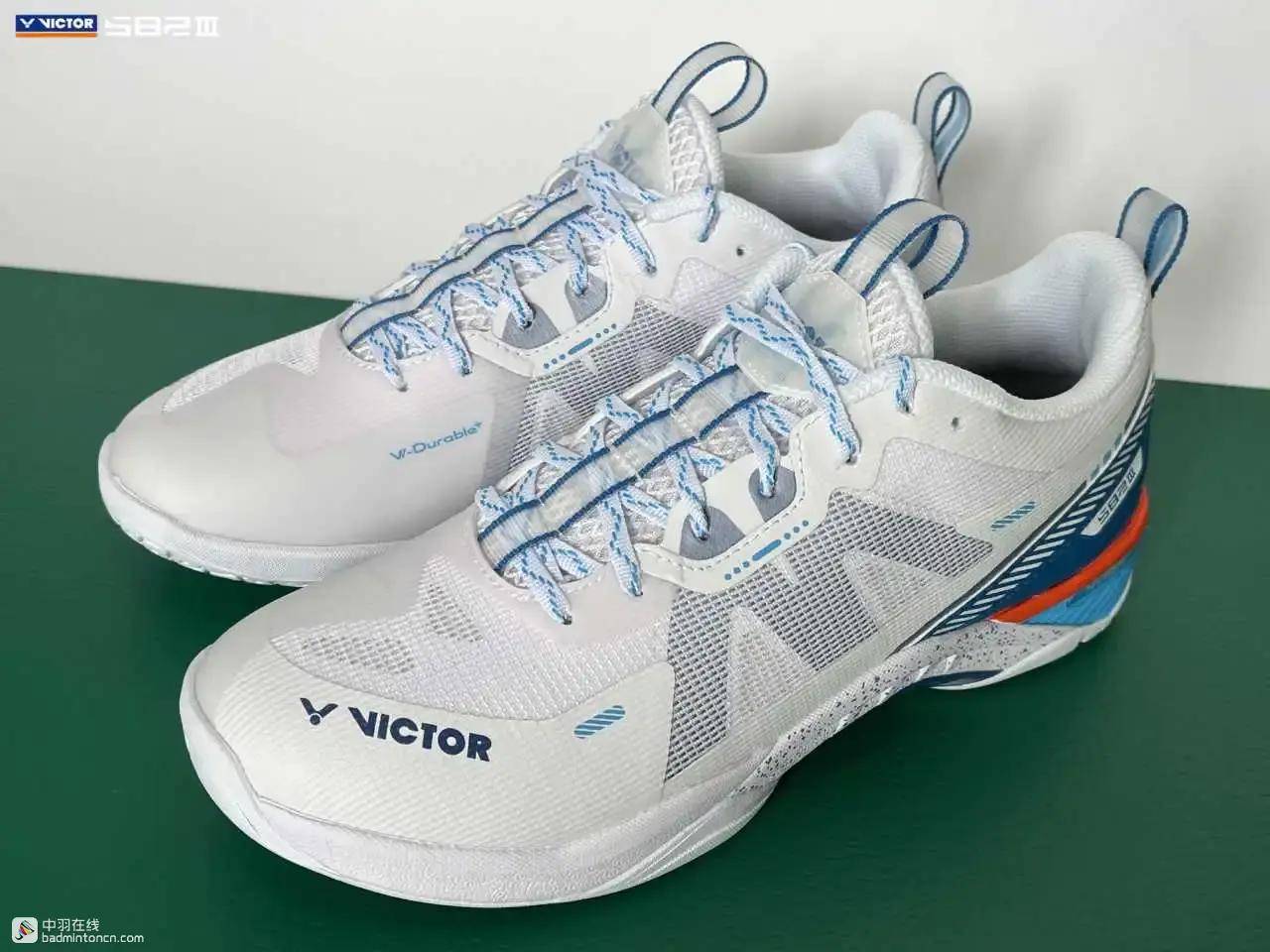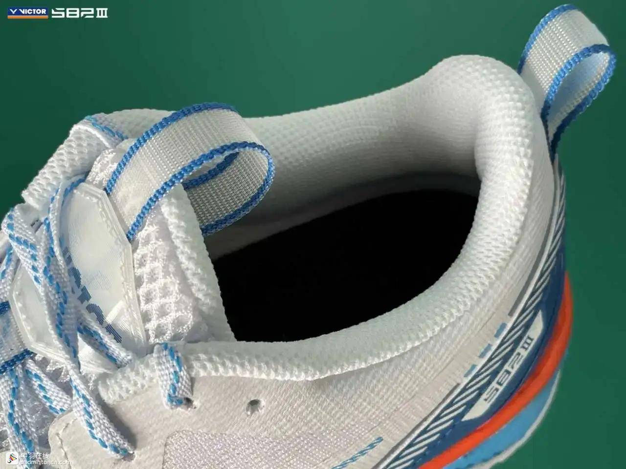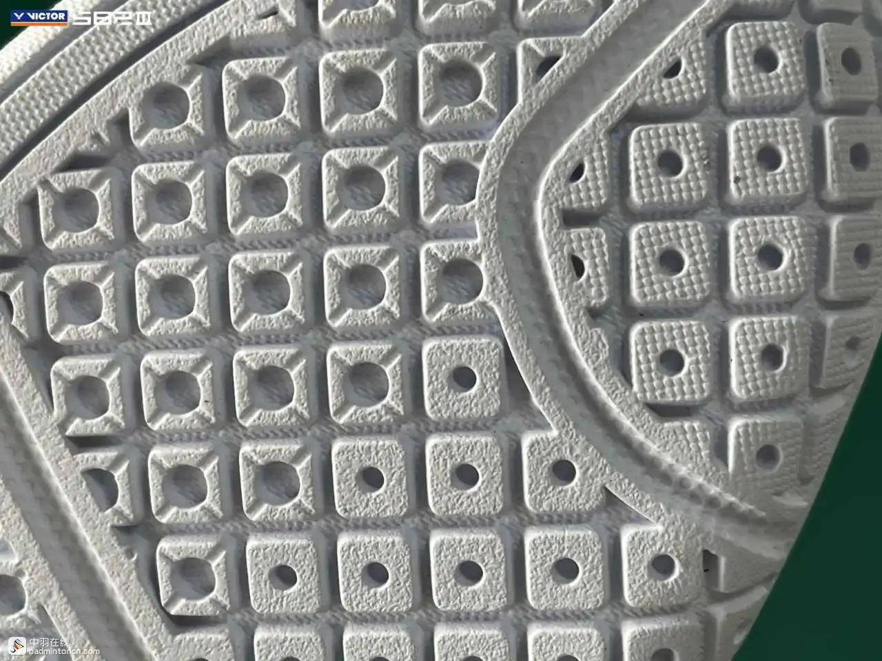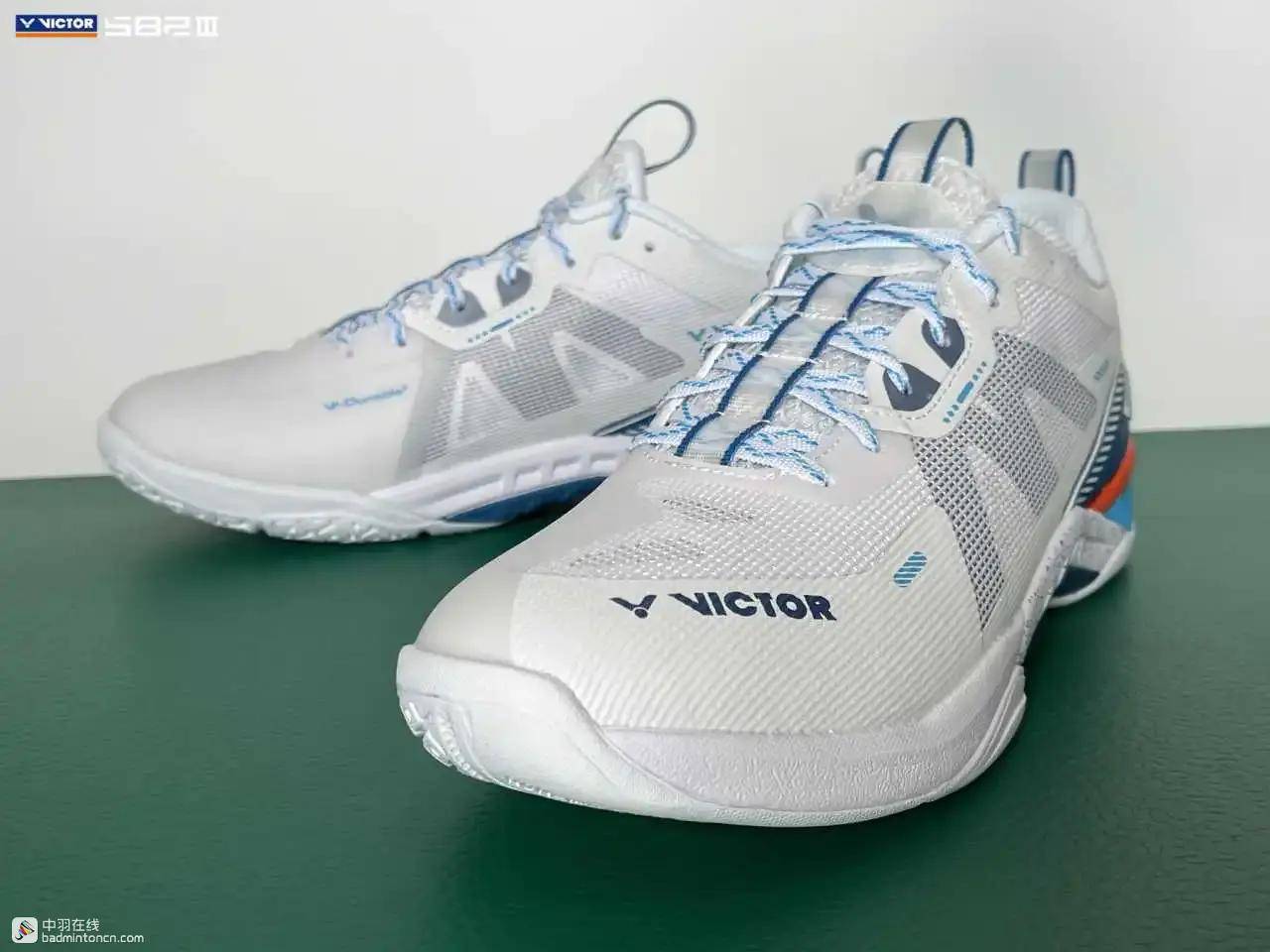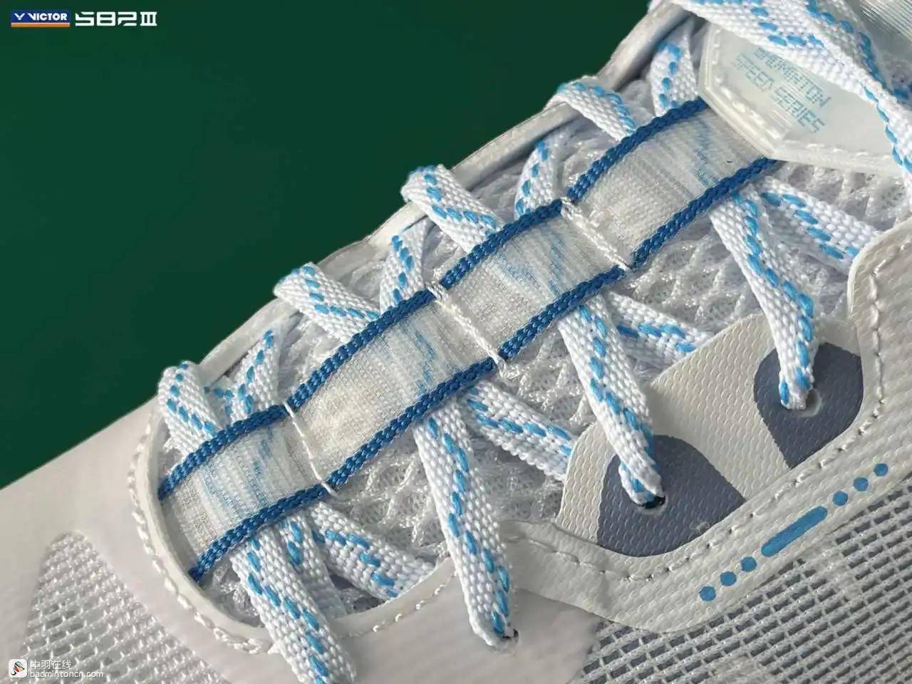 从大底到鞋面、鞋舌,S82 Ⅲ大面积采用白色,视觉一体感出色。前端外侧白色的PU革上,深蓝色的威克多LOGO在醒目的同时也显得低调朴实。