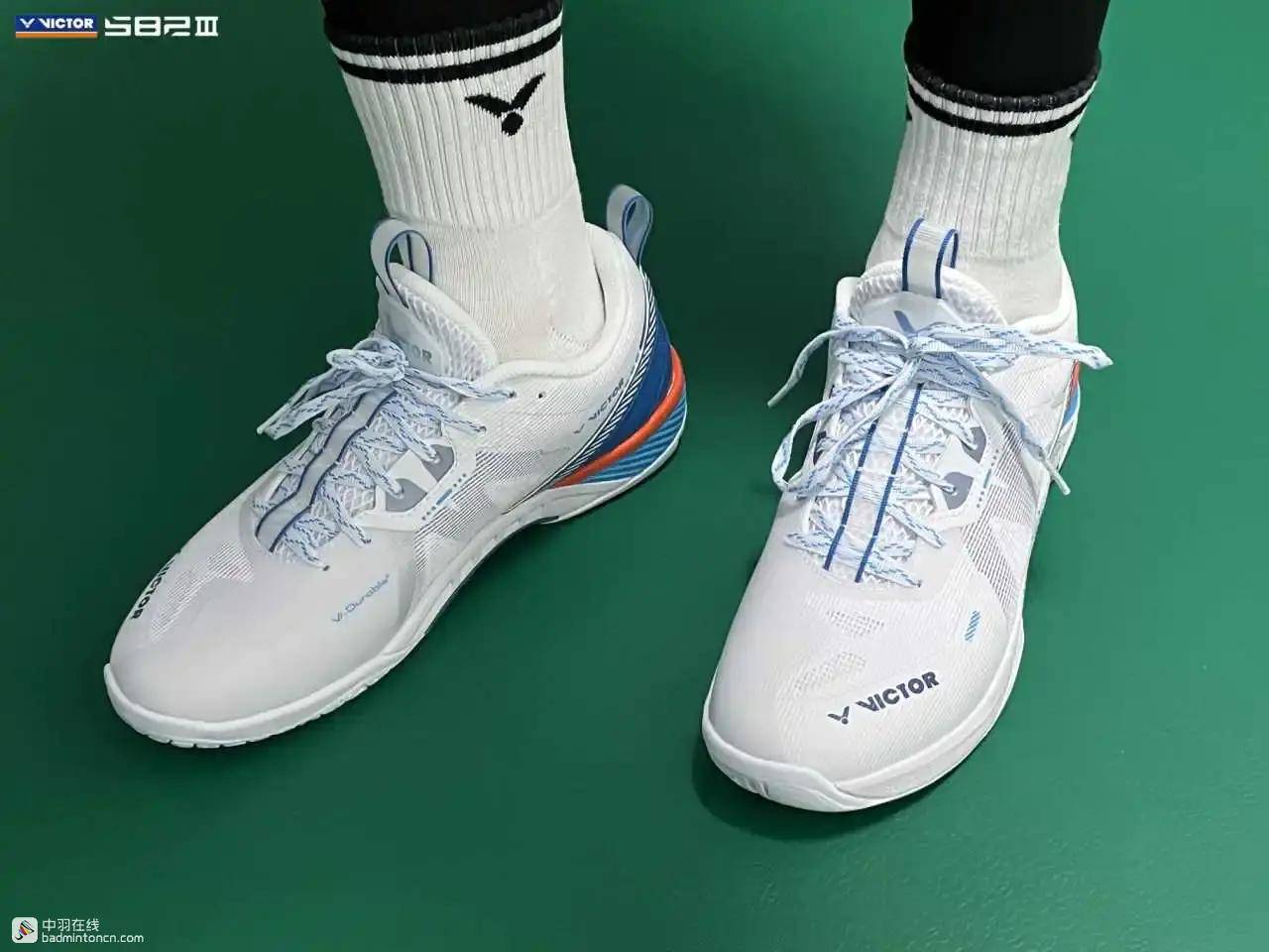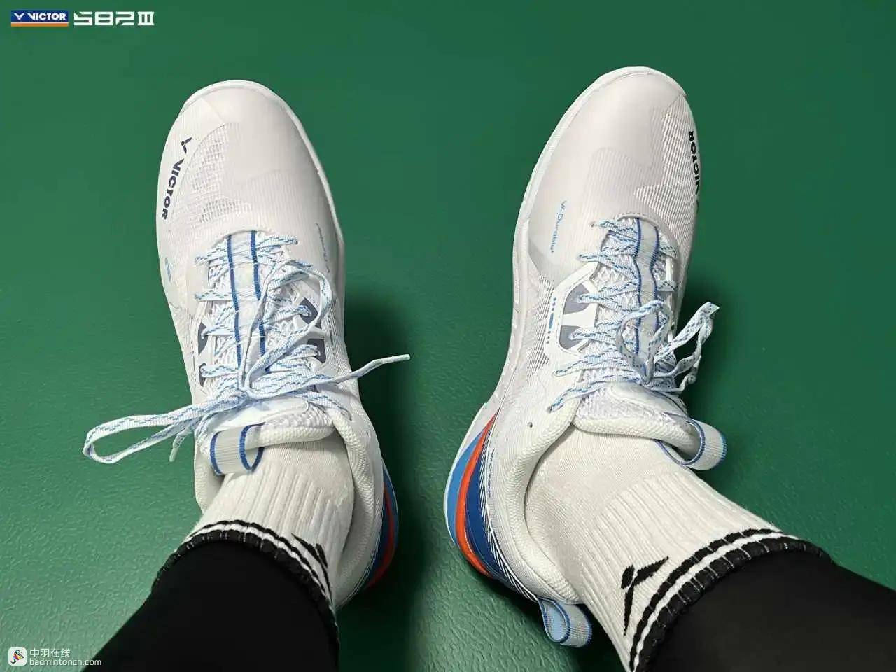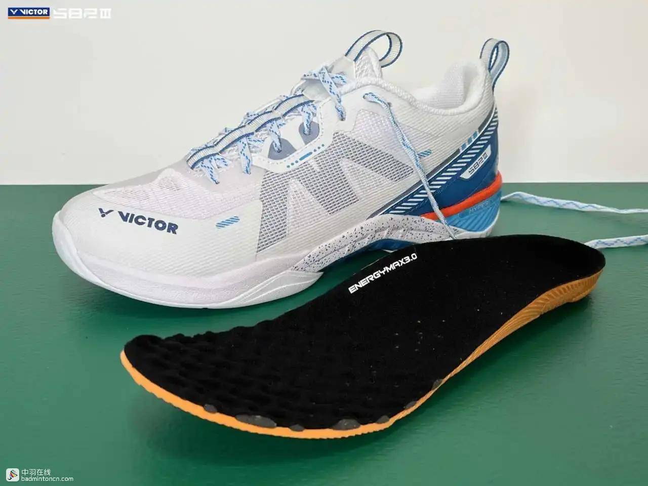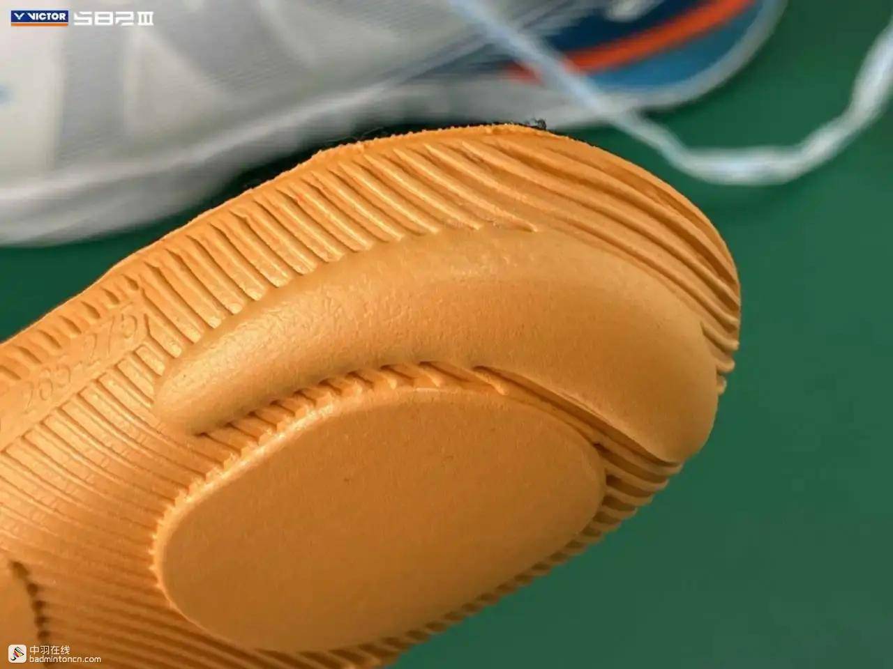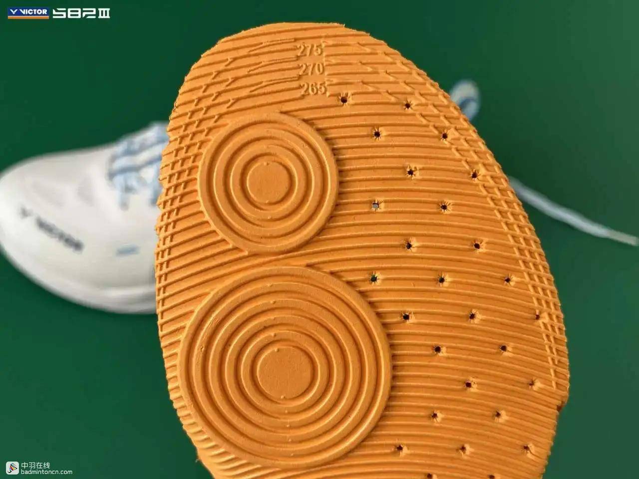 从大底到鞋面、鞋舌,S82 Ⅲ大面积采用白色,视觉一体感出色。前端外侧白色的PU革上,深蓝色的威克多LOGO在醒目的同时也显得低调朴实。