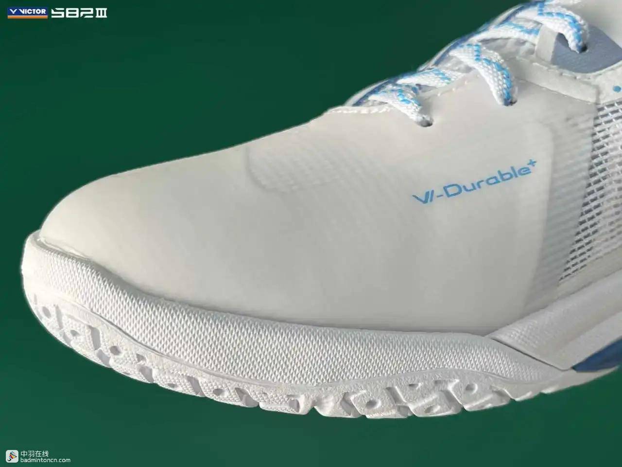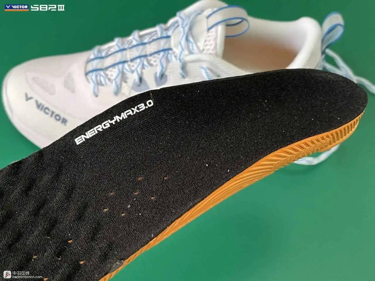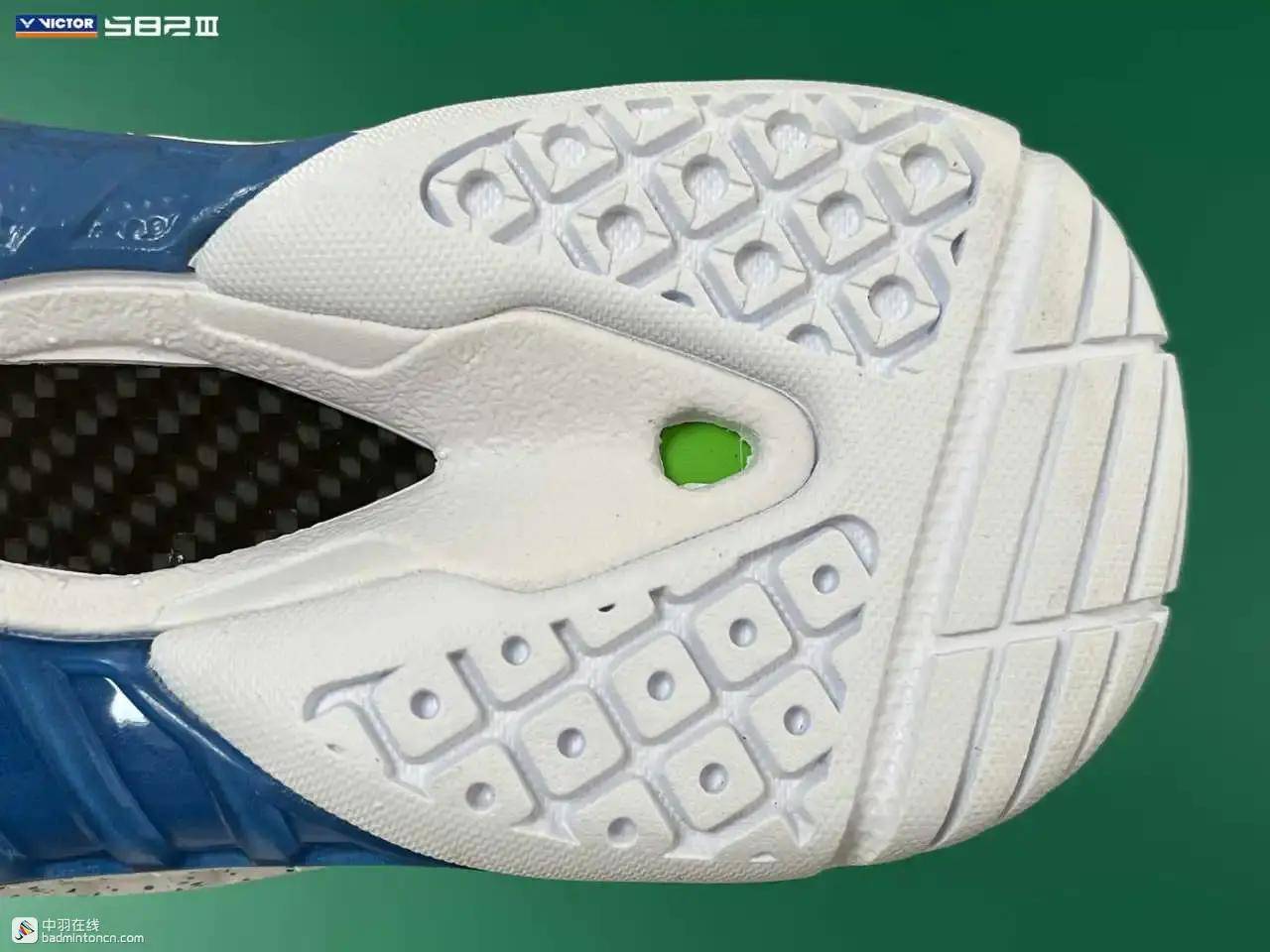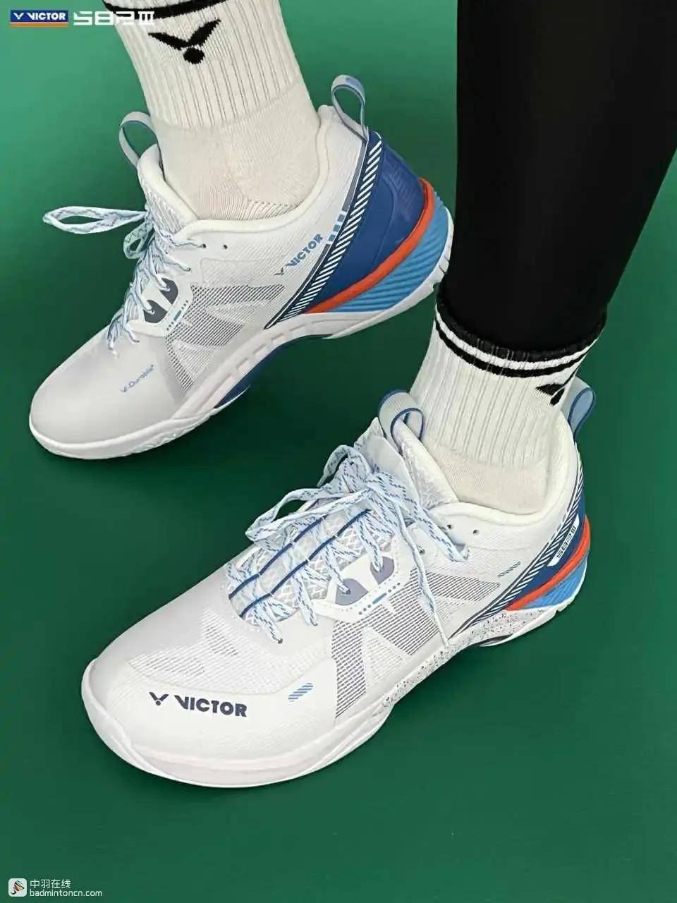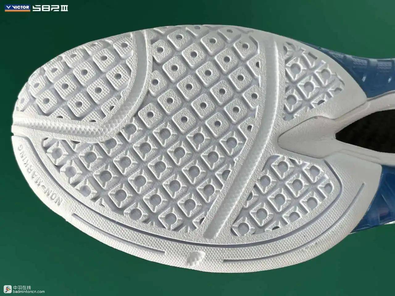 从大底到鞋面、鞋舌,S82 Ⅲ大面积采用白色,视觉一体感出色。前端外侧白色的PU革上,深蓝色的威克多LOGO在醒目的同时也显得低调朴实。