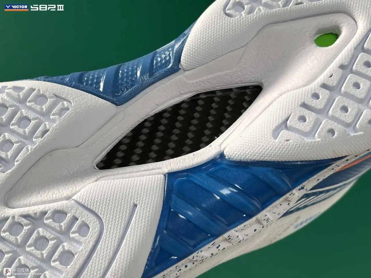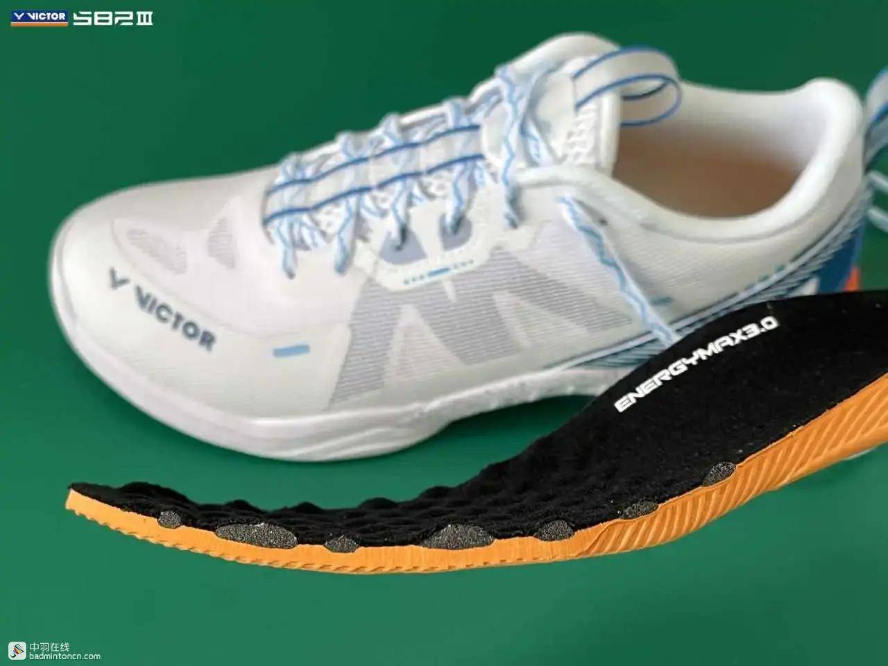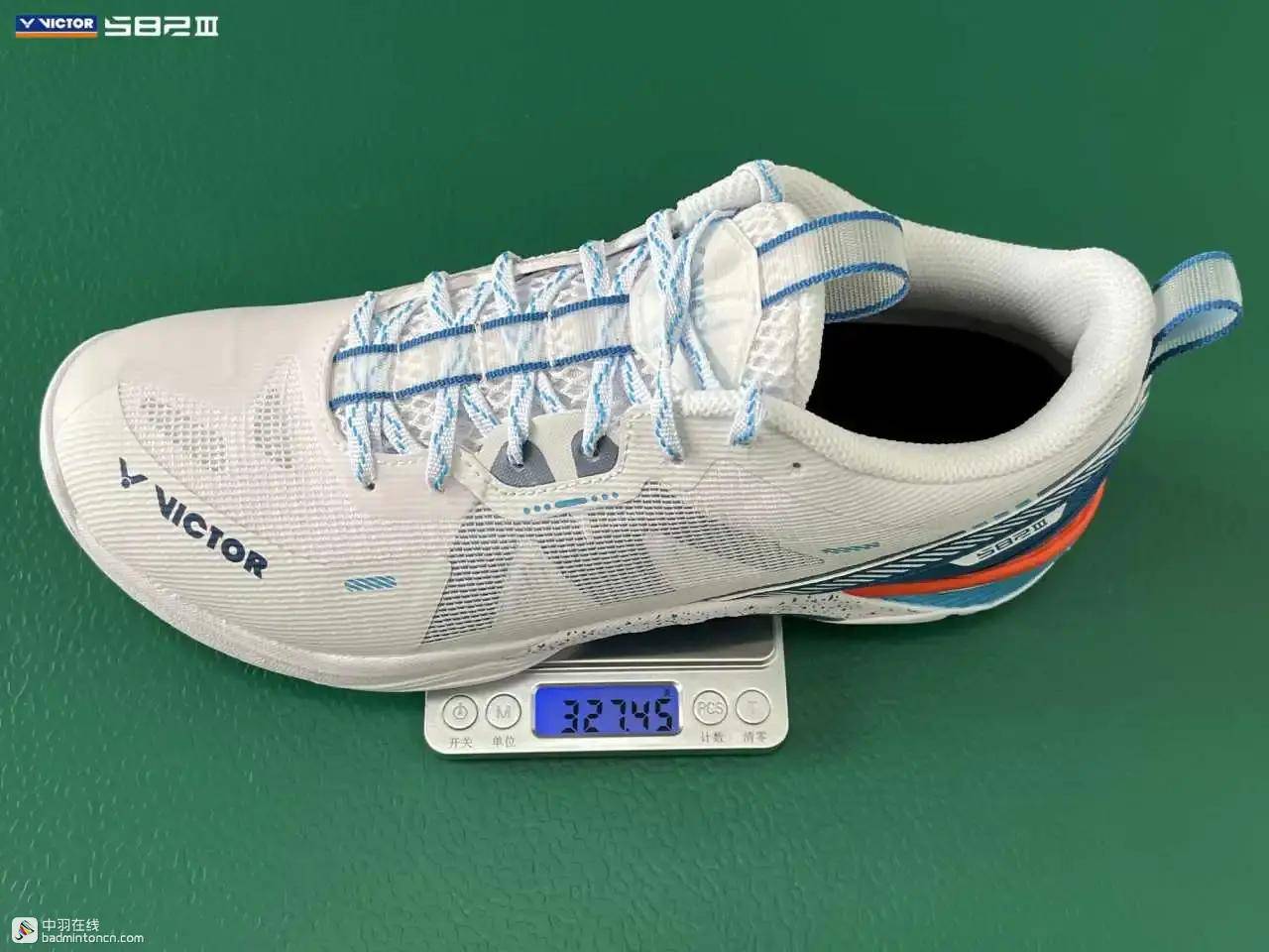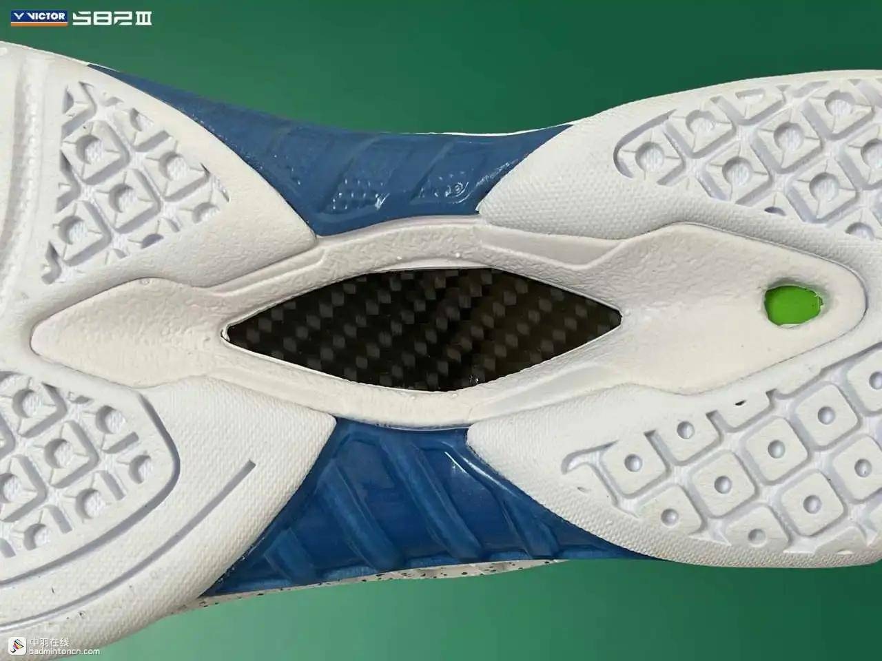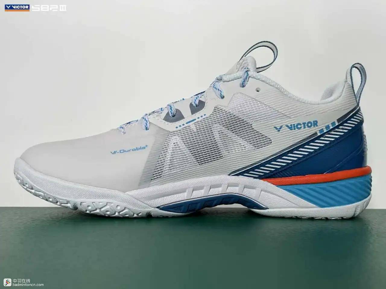 从大底到鞋面、鞋舌,S82 Ⅲ大面积采用白色,视觉一体感出色。前端外侧白色的PU革上,深蓝色的威克多LOGO在醒目的同时也显得低调朴实。