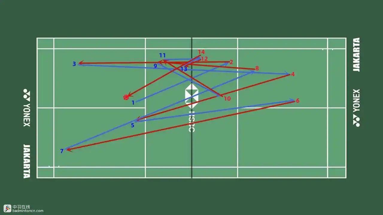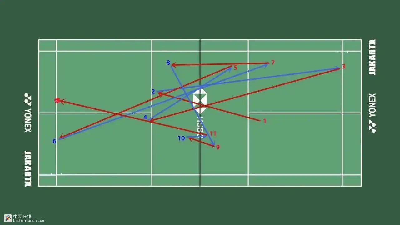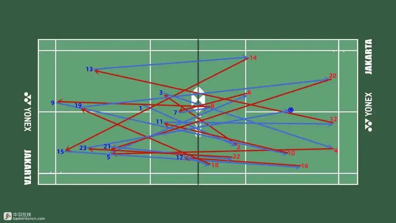 安东森的主要战木还是尽可能拉开球路调动石宁奇,网前即使在中路球的处理上也大量采用分边线的方式,为的就是尽可能把线路打开。