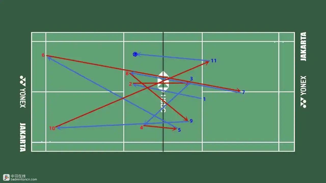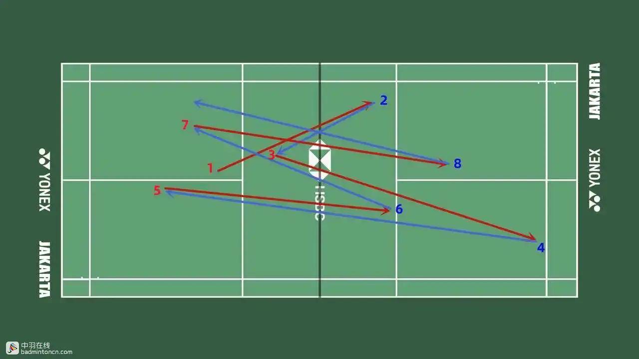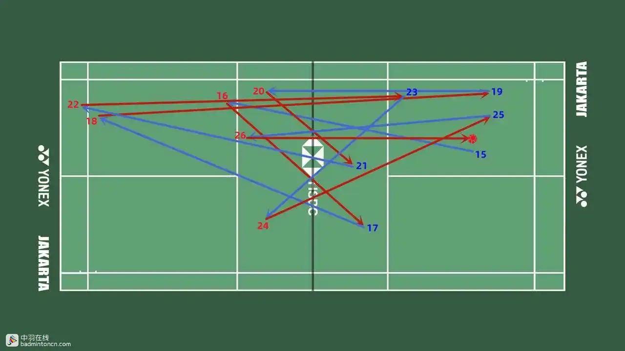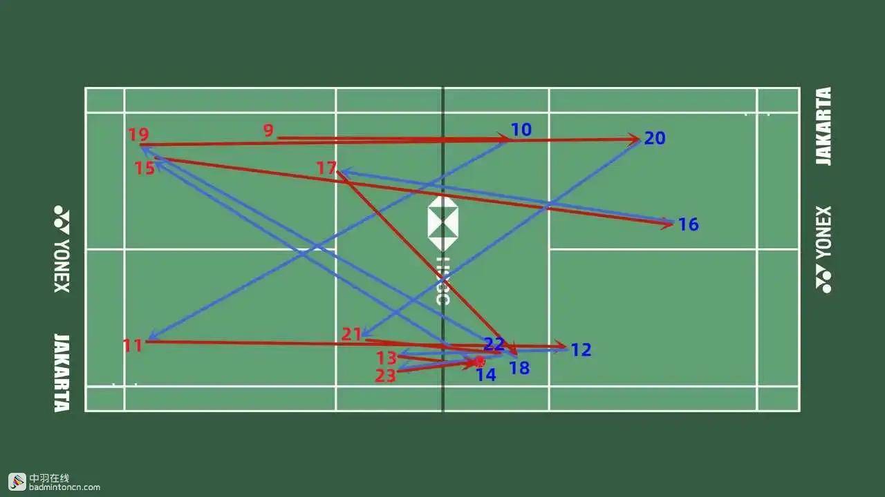安东森的主要战木还是尽可能拉开球路调动石宁奇,网前即使在中路球的处理上也大量采用分边线的方式,为的就是尽可能把线路打开。