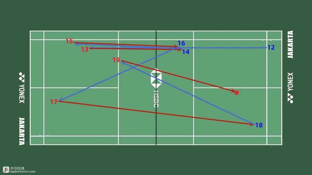 13:18,石宇奇的速度已经完全领先,牢牢掌握节奏,后场杀、劈结合,凌厉而从容,上网连贯放、勾、推挑变化丰富,安东森在被动中疲于应对,最终拦吊不及被石宇奇扑杀中路得分。