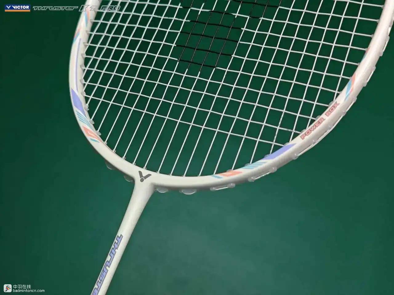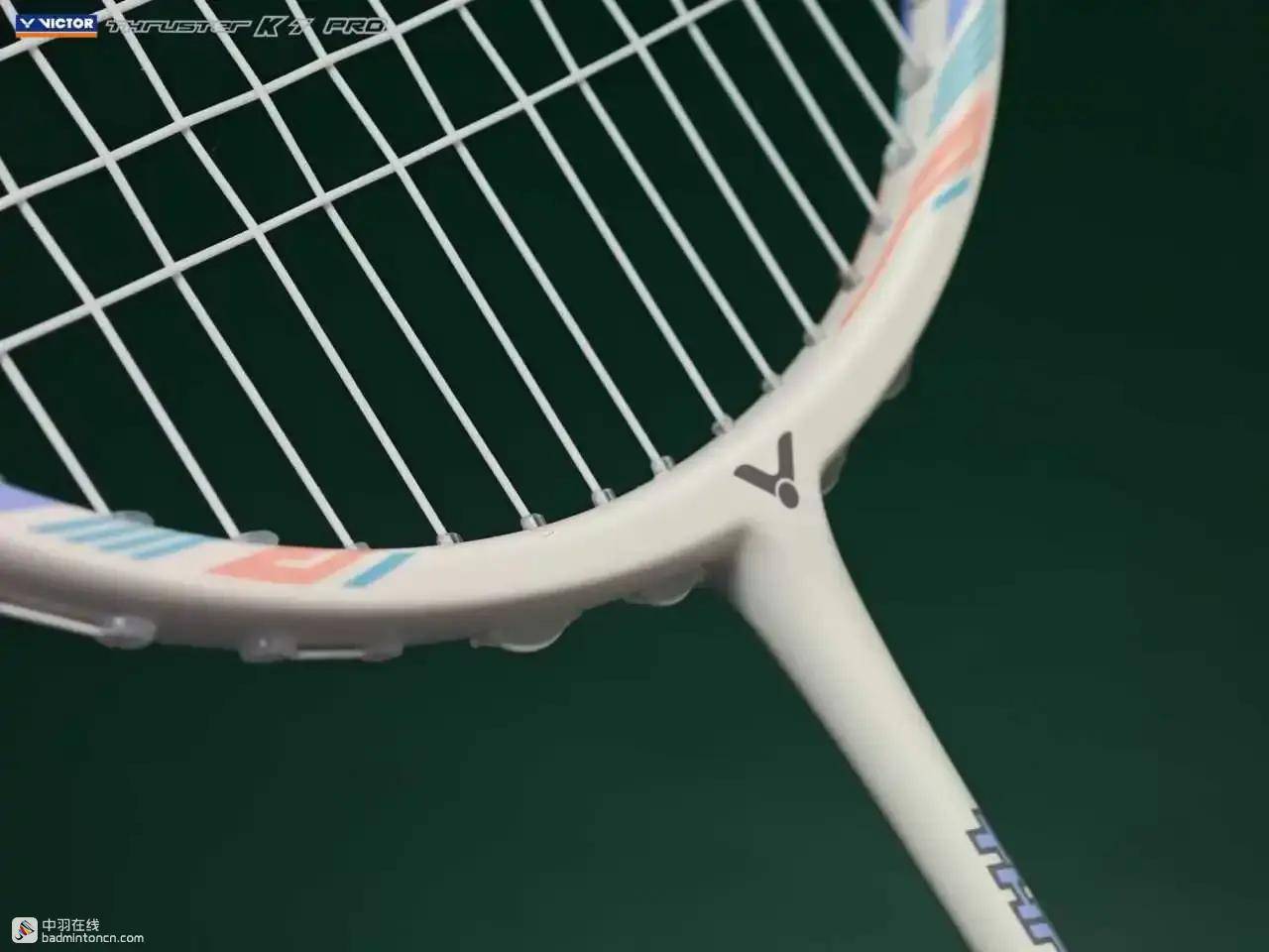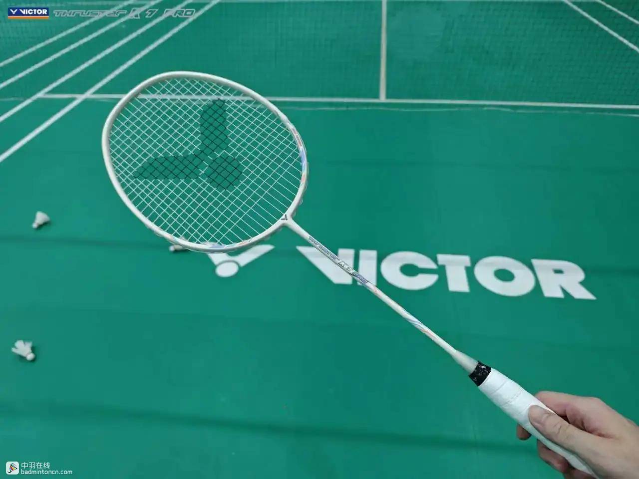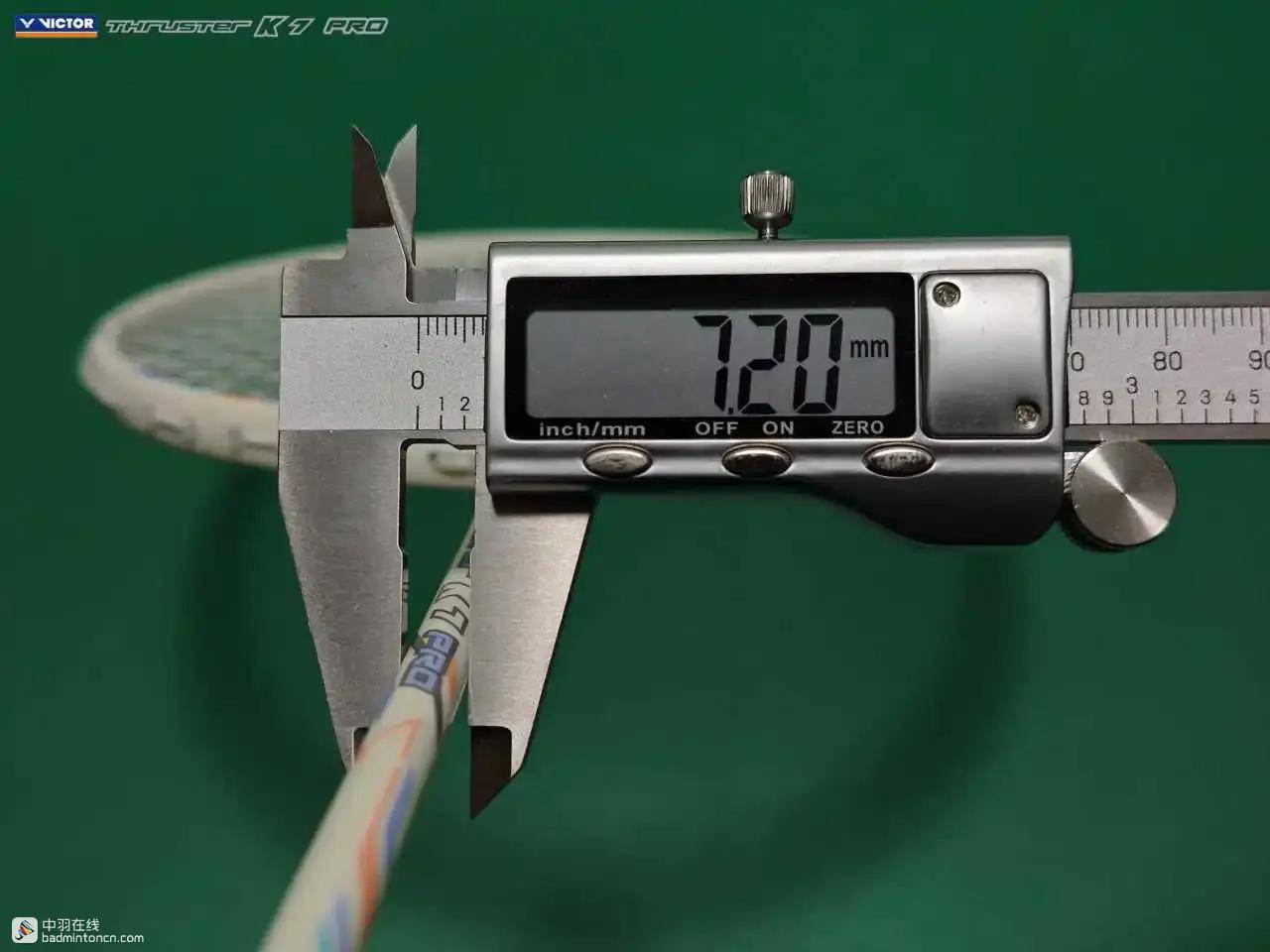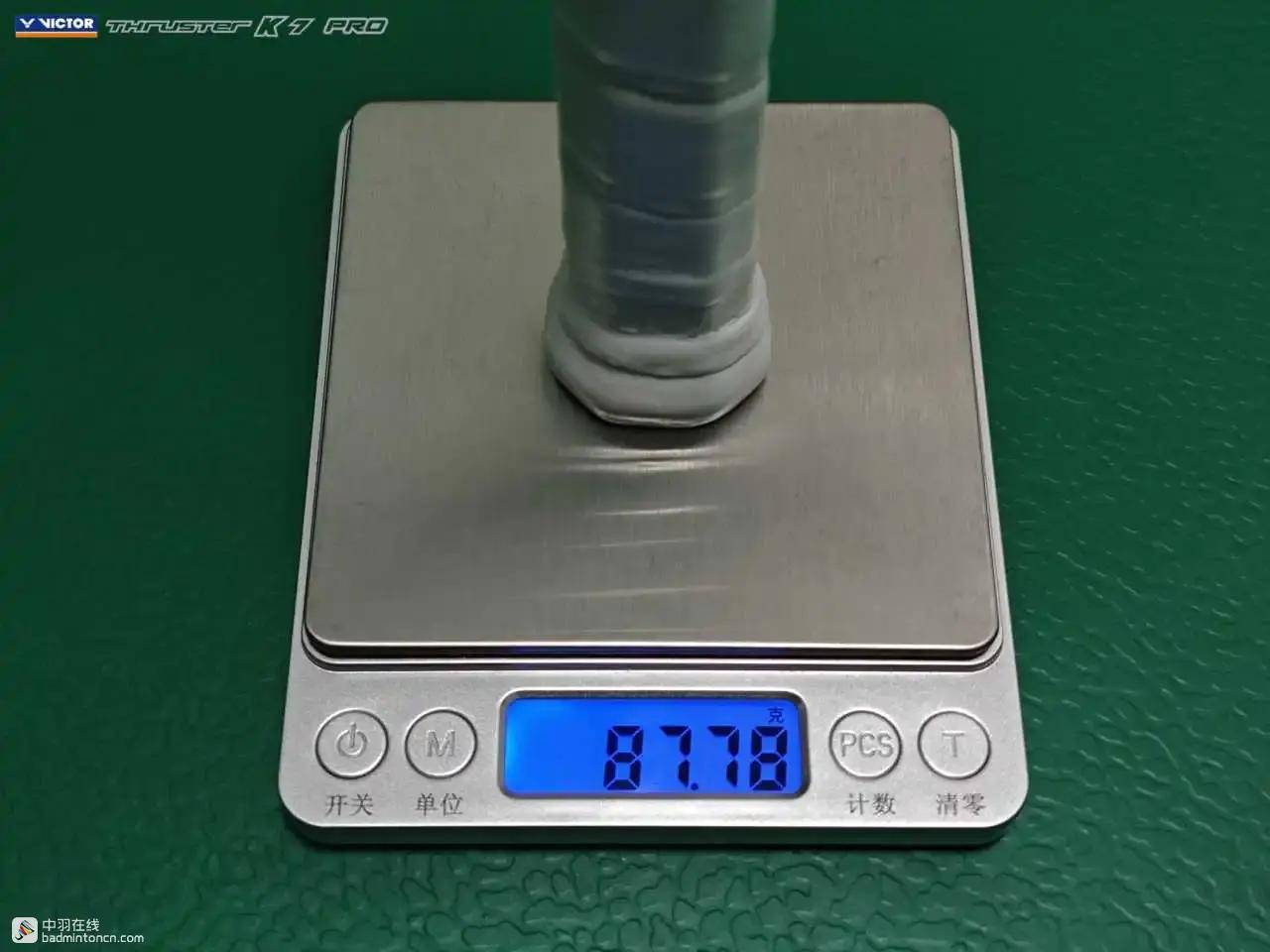 由于受限于球线,使用原装状态的TK-7 PRO A是很难感受到球拍本身的特点的,因此笔者剪去原厂线后重新穿了线(威克多VBS-69N线),考虑到是入门级球拍,因此磅数没有穿得太高,选择了24磅。最终在使用状态下TK-7 PRO A的平衡点在307mm左右,略低于相同状态下的CHA-9500 PRO,拿在手中没有明显的坠手感。