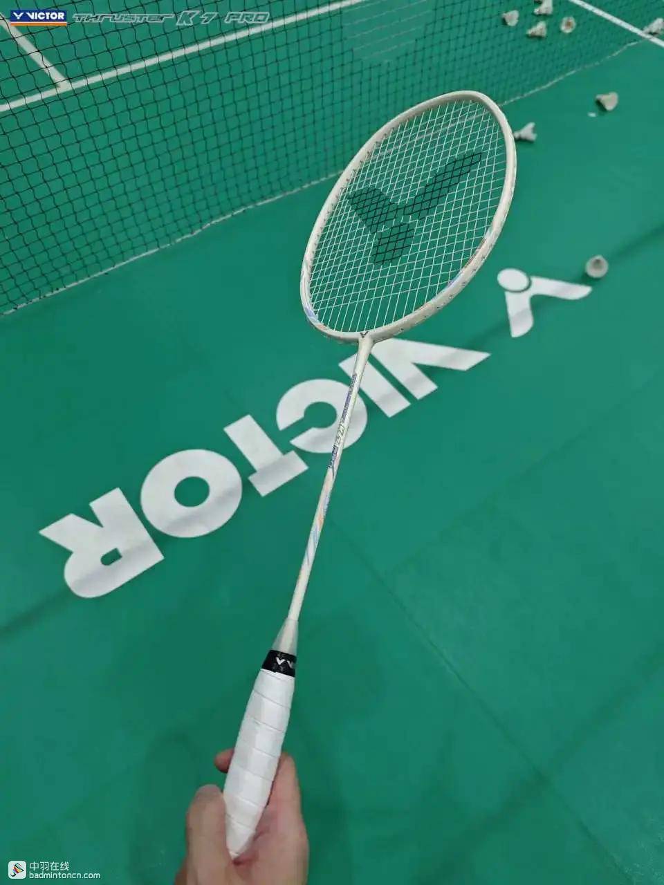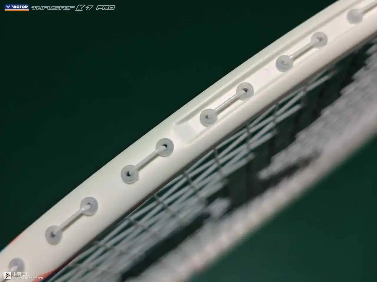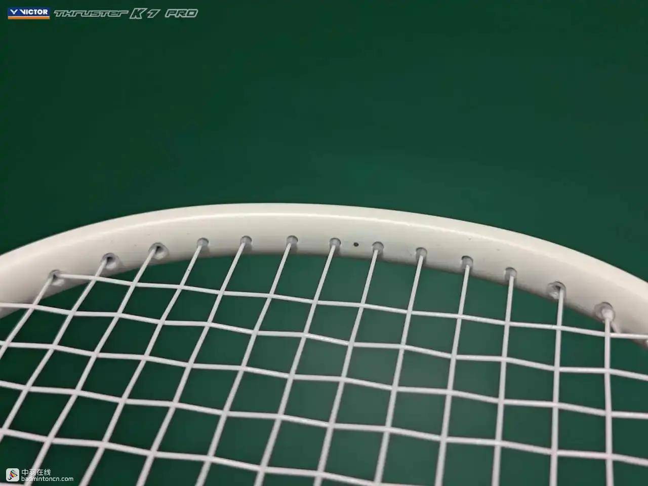 TK-7 PRO A自带的这根原厂球线磅数很低,估计在20磅左右,能非常轻松地打出形变,击球时有极为强烈的持球感。对于简单地以娱乐和锻炼身体为目的参与羽毛球运动的人来说,目的是把球打出去,打高、打远,那么原装状态的TK-7 PRO A是很好上手的。对于有一定训练目标的初学者,在进行高远球、正手发高远球、挑球等基本技术训练时,TK-7 PRO A也完全可以满足需要。
