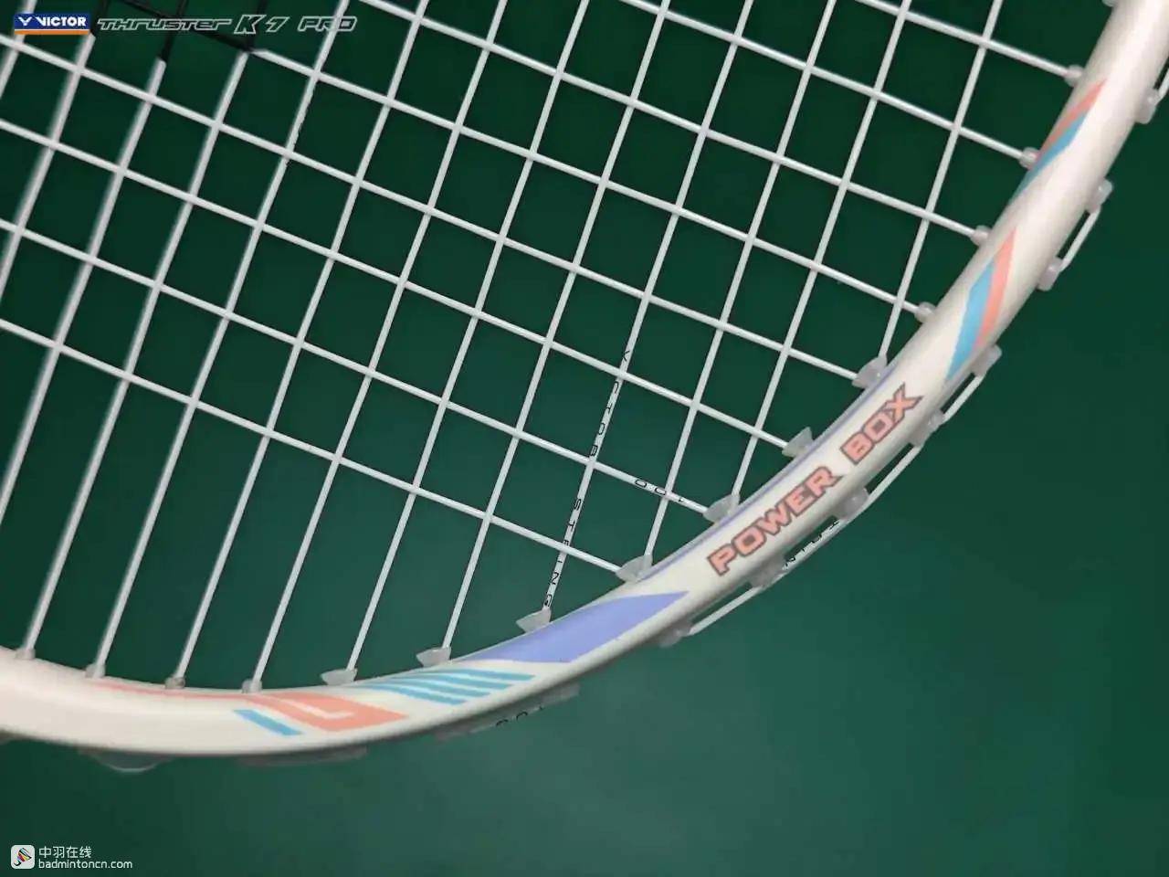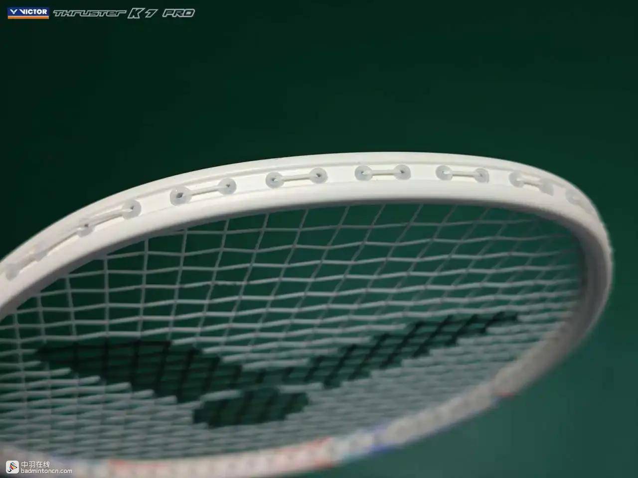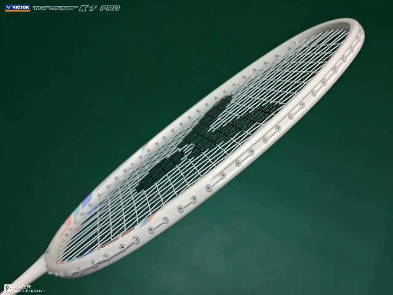 TK-7 PRO A自带的这根原厂球线磅数很低,估计在20磅左右,能非常轻松地打出形变,击球时有极为强烈的持球感。对于简单地以娱乐和锻炼身体为目的参与羽毛球运动的人来说,目的是把球打出去,打高、打远,那么原装状态的TK-7 PRO A是很好上手的。对于有一定训练目标的初学者,在进行高远球、正手发高远球、挑球等基本技术训练时,TK-7 PRO A也完全可以满足需要。
