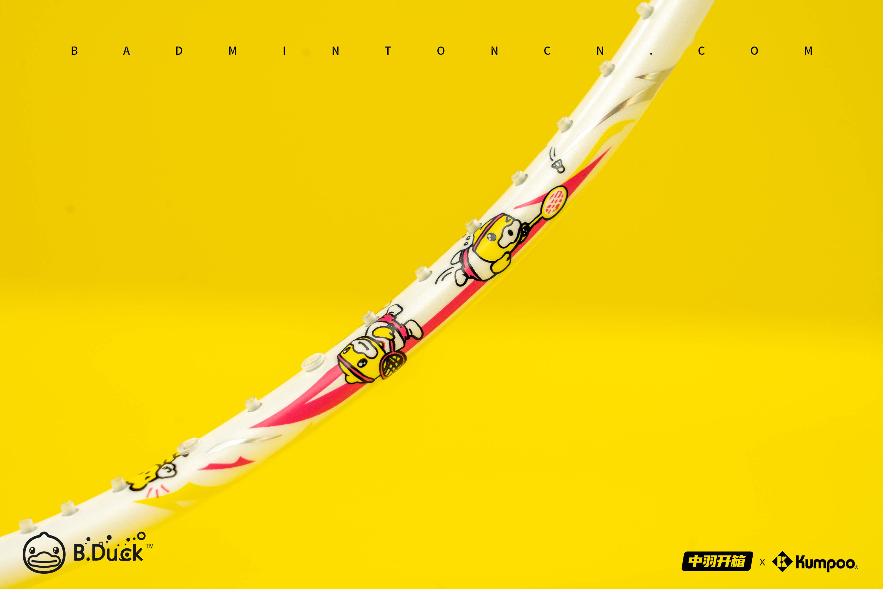 此次Kumpoo薰风与B.Duck小黄鸭推出的联名装备是薰风真正意义上首次将知名IP与羽球装备相结合,其标志性的配色和形象不仅使我们留下深刻印象,也试图对羽球运动注入更多趣味和全新的体验。