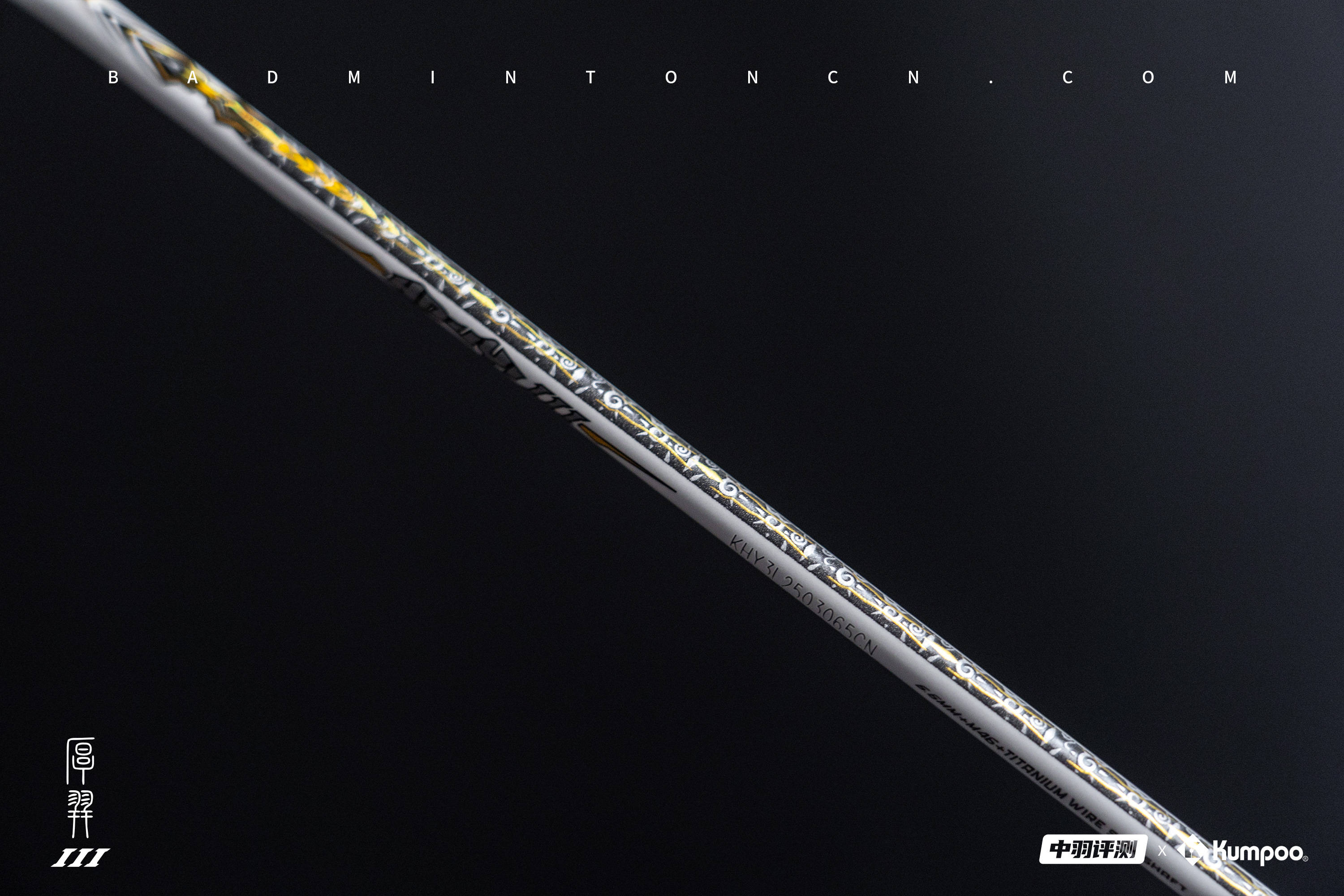 采用46T中管内加3根记忆钛(Ti)丝,钛丝在中管中均匀分布3等分,形成稳定的等边三角形,钛丝的高强度特性能抑制中管在击球瞬间(尤其非甜区击球时)的扭曲形变,减少拍面晃动,让击球方向更精准。相比单纯靠增厚管壁提升刚性,添加钛丝可在维持中管纤细形态的同时,保留适度韧性,避免中管过脆易断,同时提升击球时的力量传导效率。