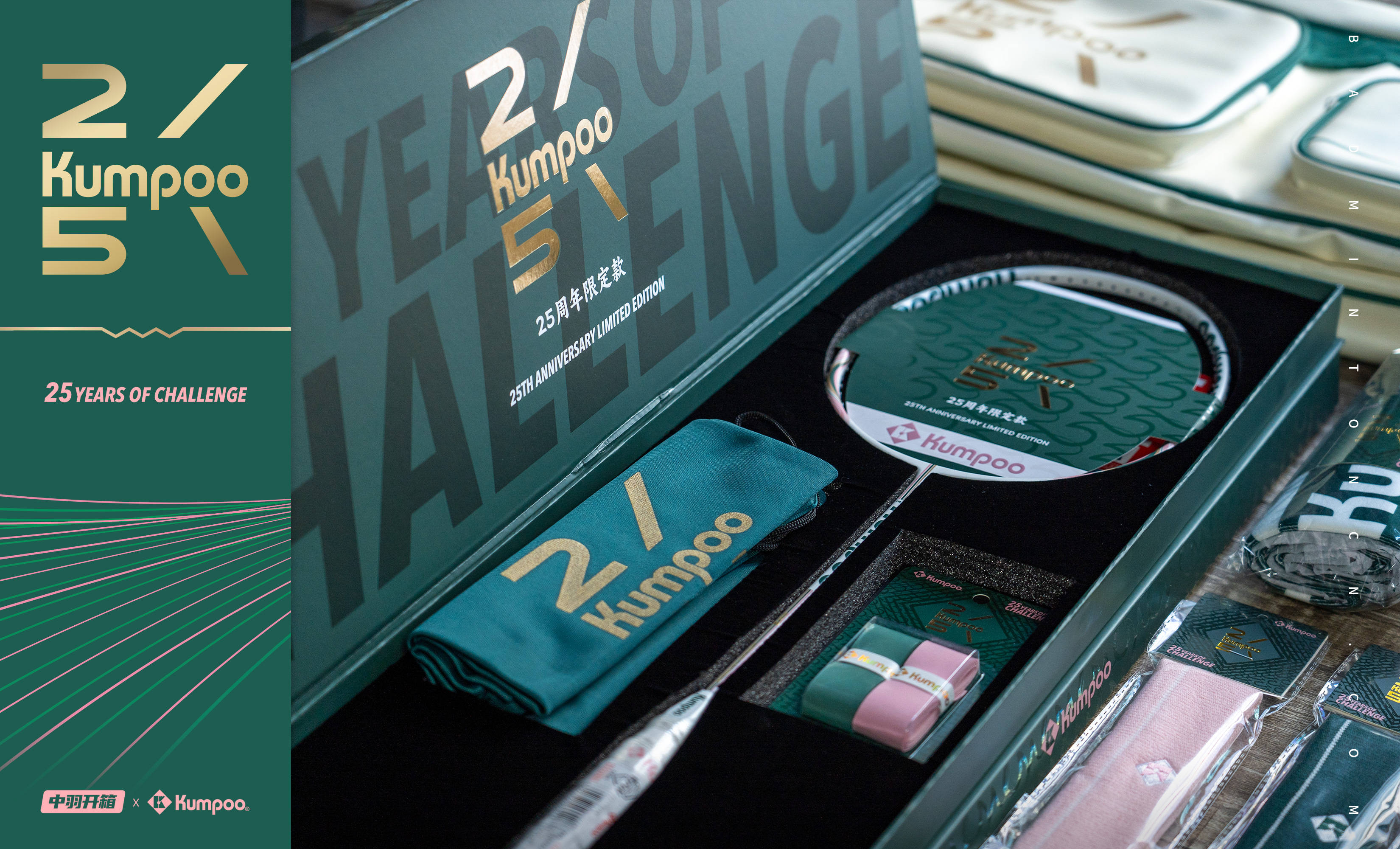 薰风25周年系列产品一共包含球拍系列“乘风S.25th”、“2300国伦.25th礼盒套装”,球鞋系列“修罗.25th”“琉璃.25th”以及纪念方包KB-566.25th和双肩包KB-5212.25th,纪念服饰,周边系列等。