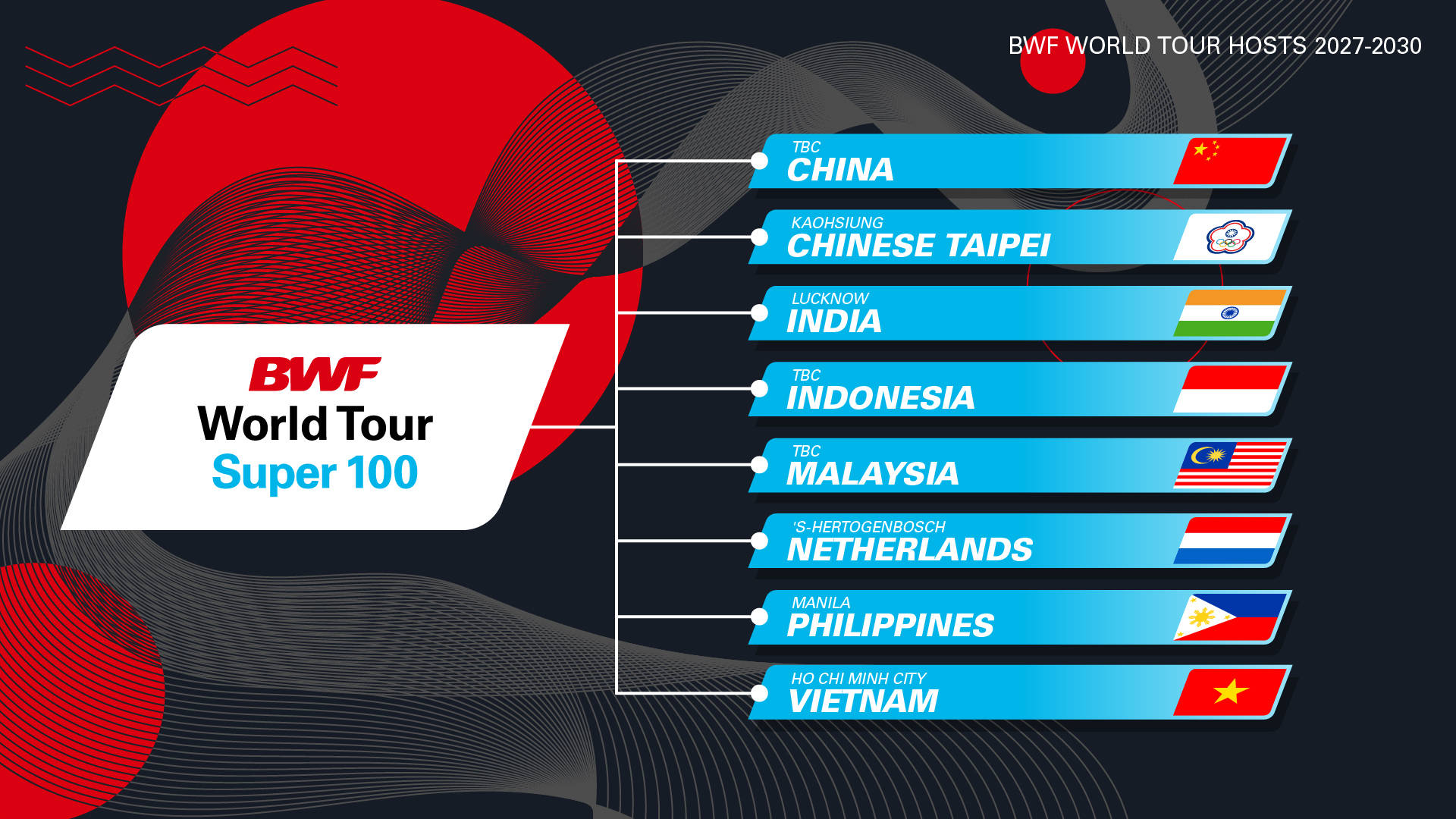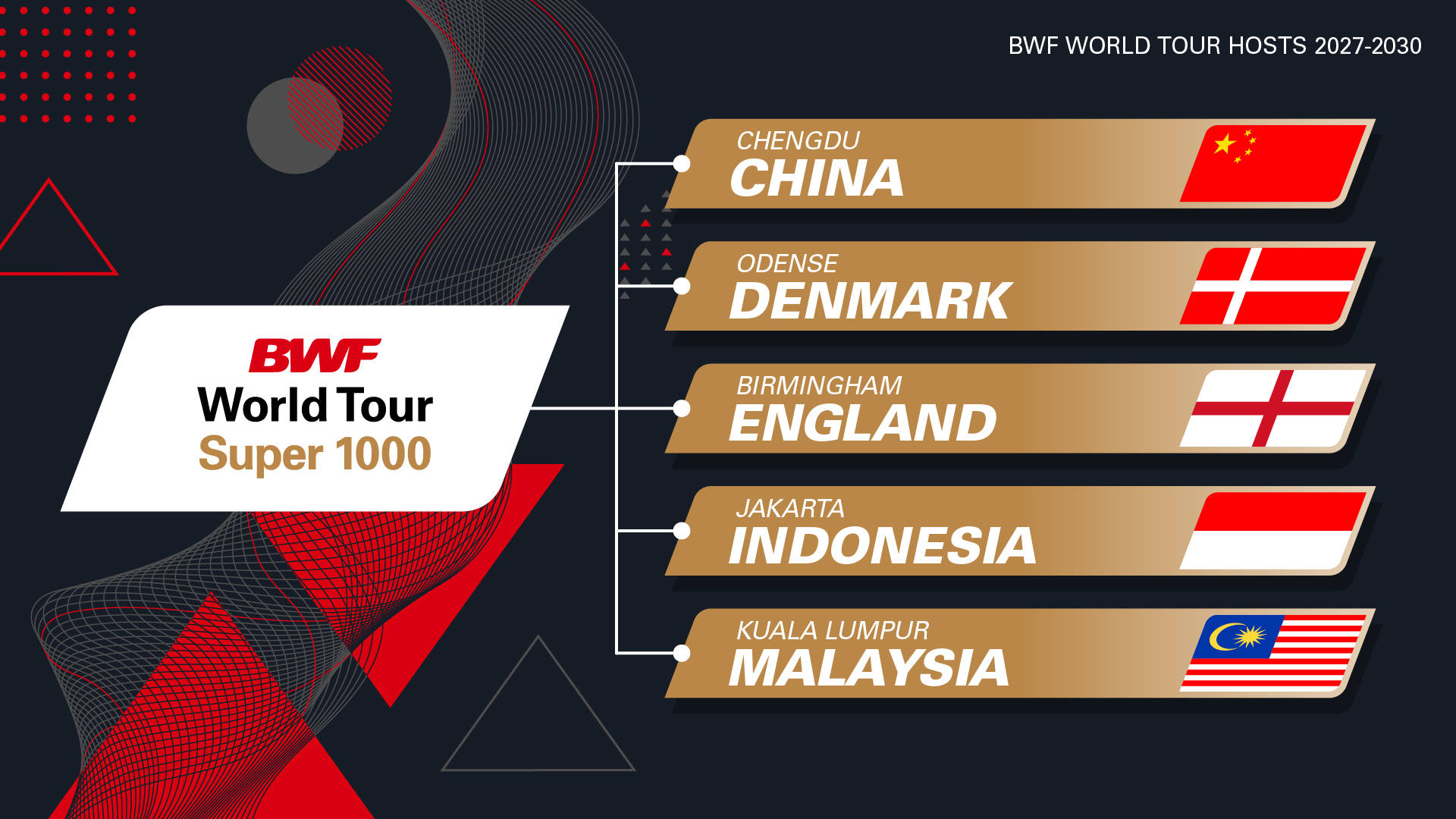世界羽联公布2027-2030周期世界巡回赛举办城市分布 |