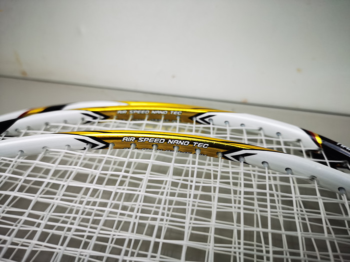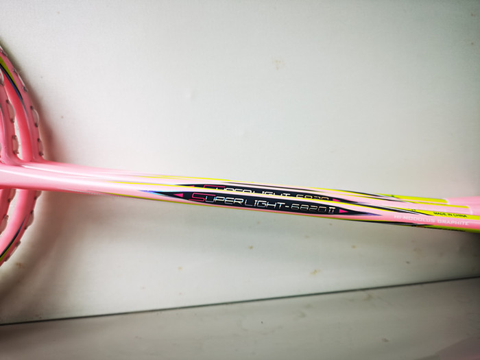 K9:拍长675mm,平衡点295mm,72孔,4UG5,抗拉力30磅,球拍送线送手胶.拍框材质:高刚性碳纤维+钨。中杆材质:高刚性碳纤维+纳米树脂  破风框,纳米中杆