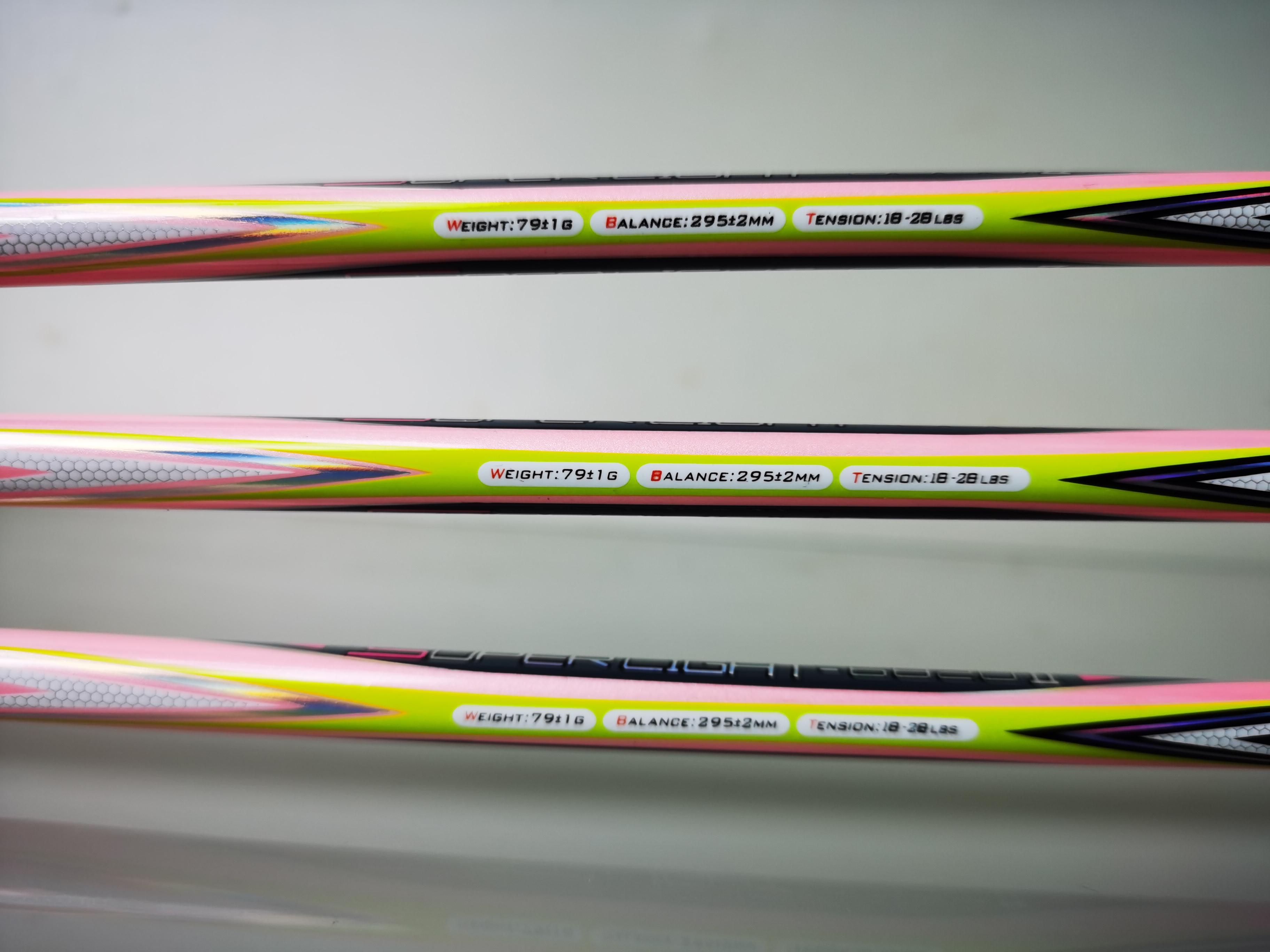 SS99:拍长675mm,平衡点297mm,72孔,5UG5,抗拉力30磅,球拍送线送手胶.拍框材质:高刚性碳纤维+纳米。中杆材质:高刚性碳纤维